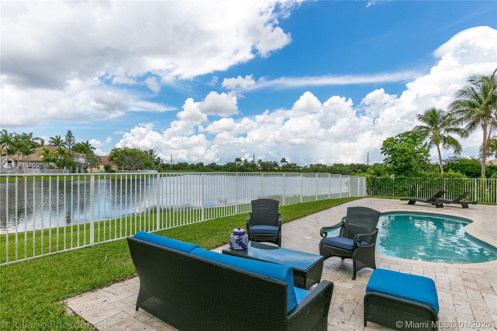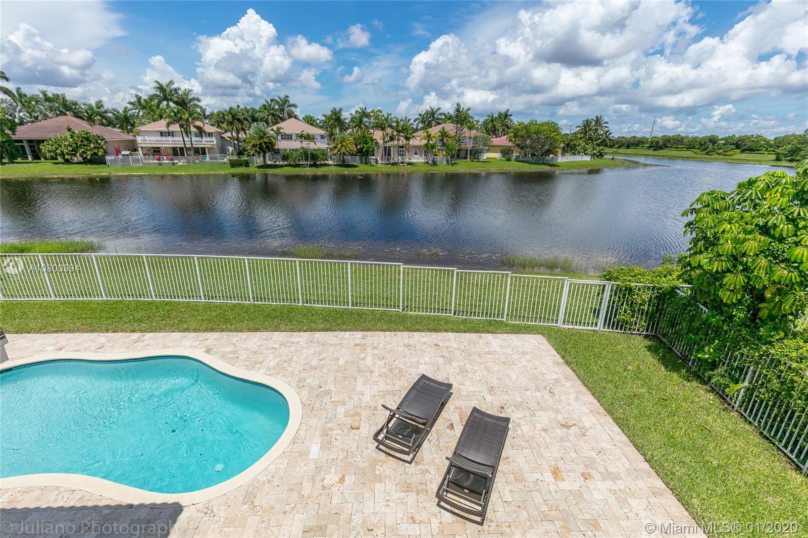 Come home to Weston Hills Country Club; great house with a breathtaking lake view and a relaxing pool (fully fenced); 7 bedrooms, 4 full baths, and a spacious den/play area/office/second family room! One bedroom and full bath located in the first floor, Master and 5 more rooms in second floor. All flooring is tile and bamboo, no carpets! Master bedroom has two walk-in closets, and all other second floor bedrooms have walk-in closets! First floor includes the formal living/dining areas, family room overlooking pool and lake, and a beautiful white kitchen with breakfast area, granite counter-tops and SS appliances. Over-sized lot and 3 car garage, plus a large driveway with space for six additional cars! BCPA indicates 6 BR but there are 7 with windows and closets, all original construction.