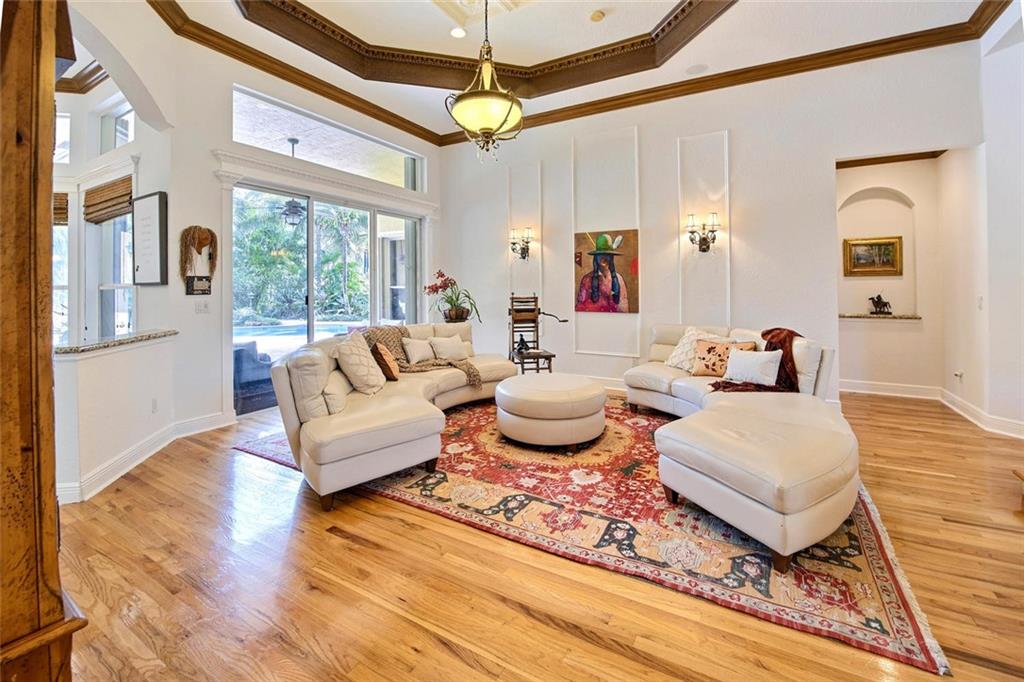 Spectacular corner property featuring a resort style tropical yard surrounded by flowering trees and swaying palms. Covered patio & sparkling pool for the perfect Florida lifestyle! Stunning interior details include tile and real wood floors flowing throughout, tray ceilings,crown moldings, hi hat lighting, 3 way split floor plan with a private master bedroom retreat complete with two custom shelved walk in closets... plus a bonus room off the family room! Huge fenced yard on a builders acre and complete Hurricane protection. Long Lake Ranches is one Davie's premier & exclusive guard gated communities with playgrounds, tennis courts, basketball courts & clubhouse plus two guard gated entrances. Close to shopping, major highways, airport and parks!!!A rated schools.