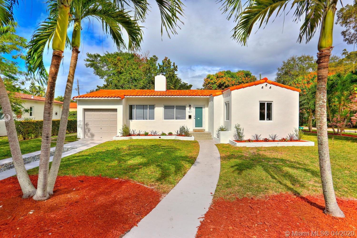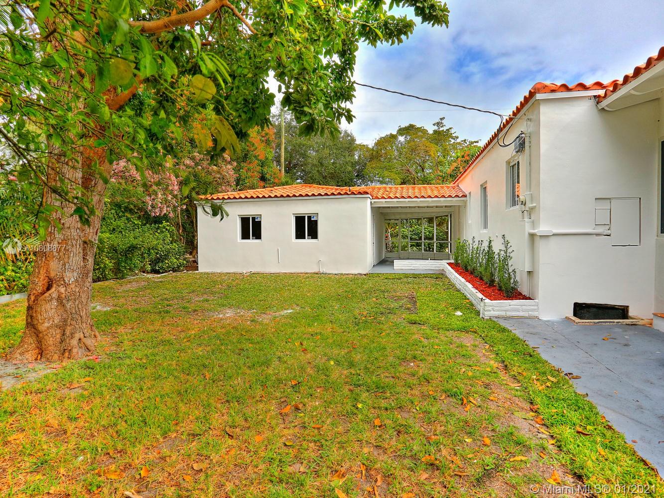 Lovely home in a coveted Miami Shores neighborhood. Recent total renovation. Light-filled living spaces (formal living/dining + family room) feature original newly finished hardwood floors & fireplace. New kitchen with classic white wood cabinetry, quartz countertops & stainless steel appliances. The house features 3 Bedrooms, 2 Bathrooms, Living/Dining Area, Breakfast Area, Family Room, Multiple French Doors, Impact doors & windows throughout, and Garage spaces for 3 Cars. Enjoy year-round outdoor living in the large garden with ample room to add a pool. Minutes to downtown, MIA, the Beaches and to major highways for easy access throughout South Florida.