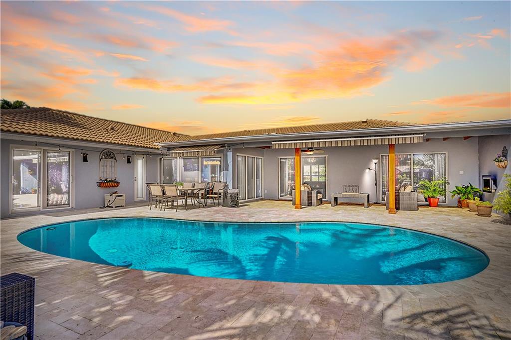 Watch the Video on YouTube. Not often do I walk into a home that I call my wife & try to convince her to buy it. This is one of those times. The focal point is the kitchen where walls were removed to create an open transition from one side of the home to the other. This split plan w/the master on the east & the 3 secondary beds on the west is ideal for privacy. As of the bedrooms, you'll be impressed w/their spaciousness with one having its own bathroom, another almost as big as the master & the 3rd w/direct access to the pool area, which happens to be my favorite part of this home. The 17,000+ SQF lot has been meticulously designed w/extended travertine pavers, beautiful landscaping, wood-lined/hard-covered patio. Impact Windows & Hurricane Protection throughout.