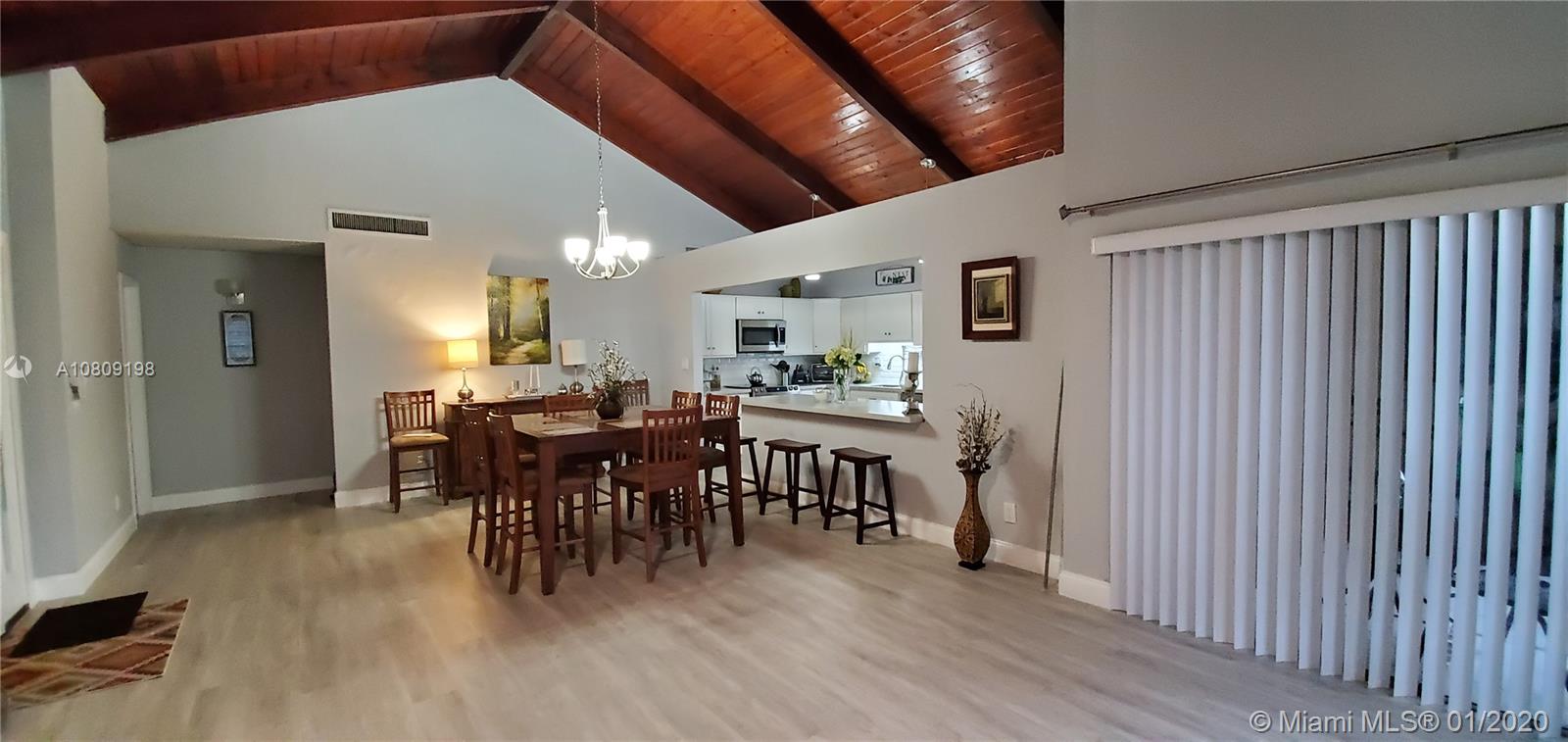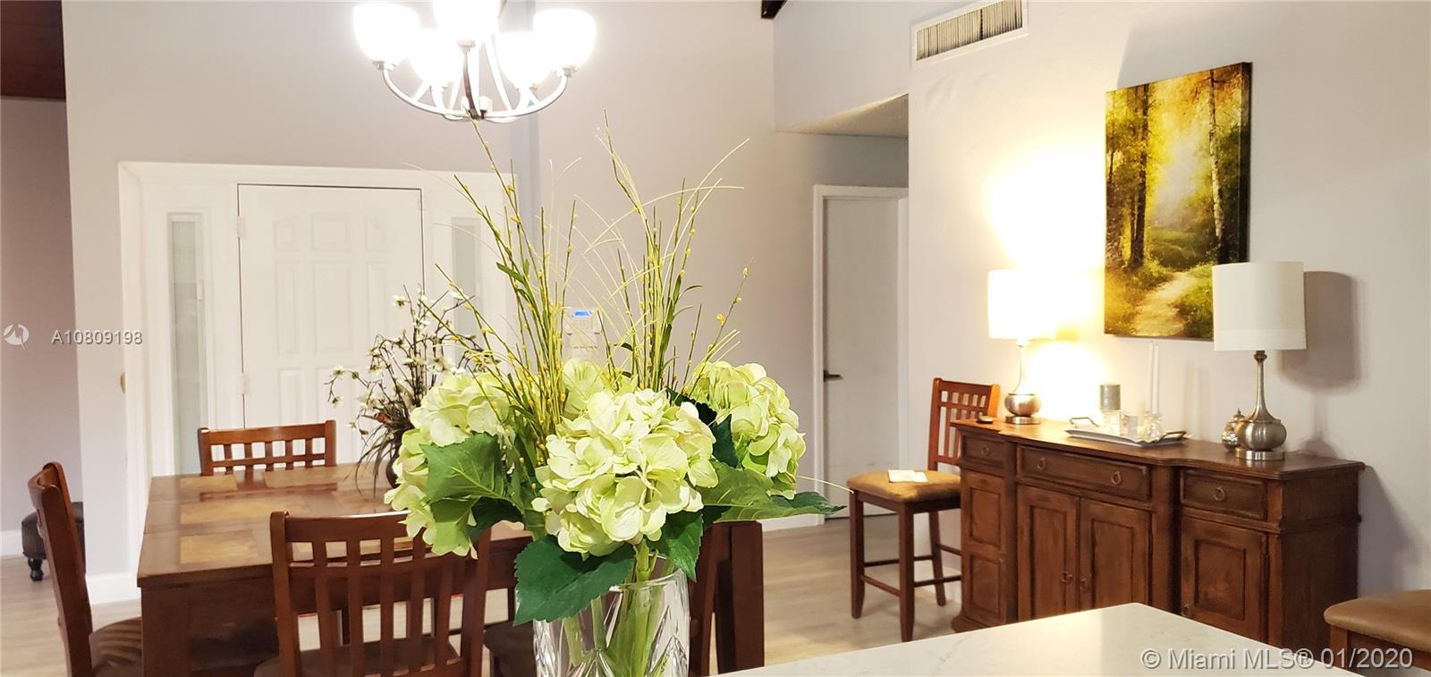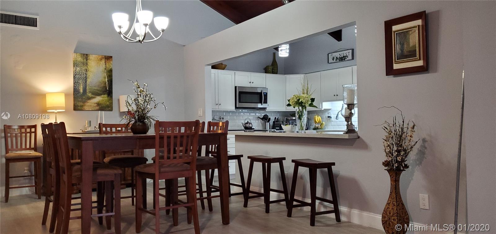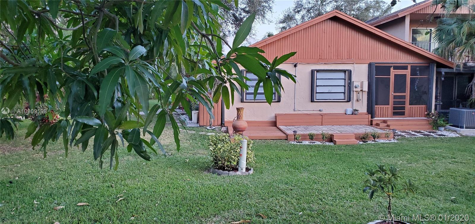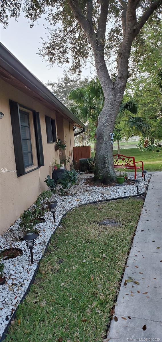 Come home and feel in the country when you walk out from your patio into yards of yard, mango and avocado trees and a pretty water view! 3 bedroom, 2 bath very nicely UPDATED Villa, 2 year very pretty white and open new kitchen with quartz counter tops, modern backsplash, stainless steel appliances. 2019 new tile flooring. UPDATED bathrooms. Big master bedroom leading into it's own private enclosed patio. Air conditioning is 7 years old and brand new roof installed 8 years ago. Electric tankless water heater. Front Load large washer and dryer. ACCORDION hurricane shutters, screened in patio looking at peaceful lake view. Very low $95 x month, association fee includes lawn maintenance.