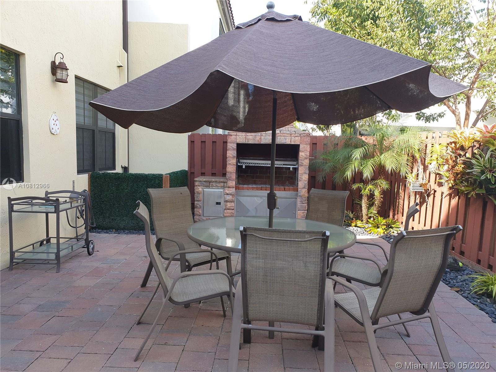 Beautiful and ready to move in 3 bedroom, 2 ½ bathrooms + den house, to include a wide variety of upgrades for your enjoyment. Upgrades include redesigned visitor bathroom, marble floors, recessed lights, stainless steel appliances, quartz top counters, wine cooler, modern blinds, wood stairs and handrails, wood floors on second floor, upgraded closets with closet system, impact windows, built-in barbecue, and an electric awning and paved floor in the terrace. Garage with cabinets and upgraded epoxy floor. Common areas include a spectacular clubhouse with pool, gym, sauna, and game room. Vintage Place is a small gated community that also provides safety with security patrols located in and excellent neighborhood that is close to shops, highways and A + schools. MOTIVATED SELLER!!!