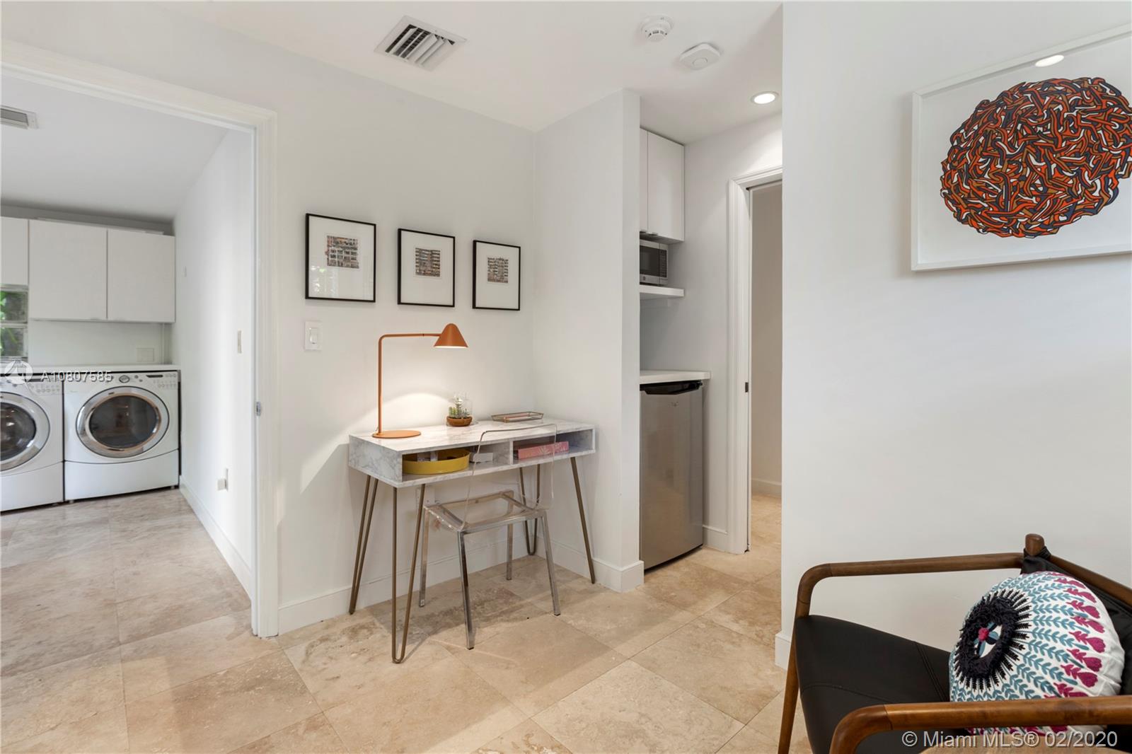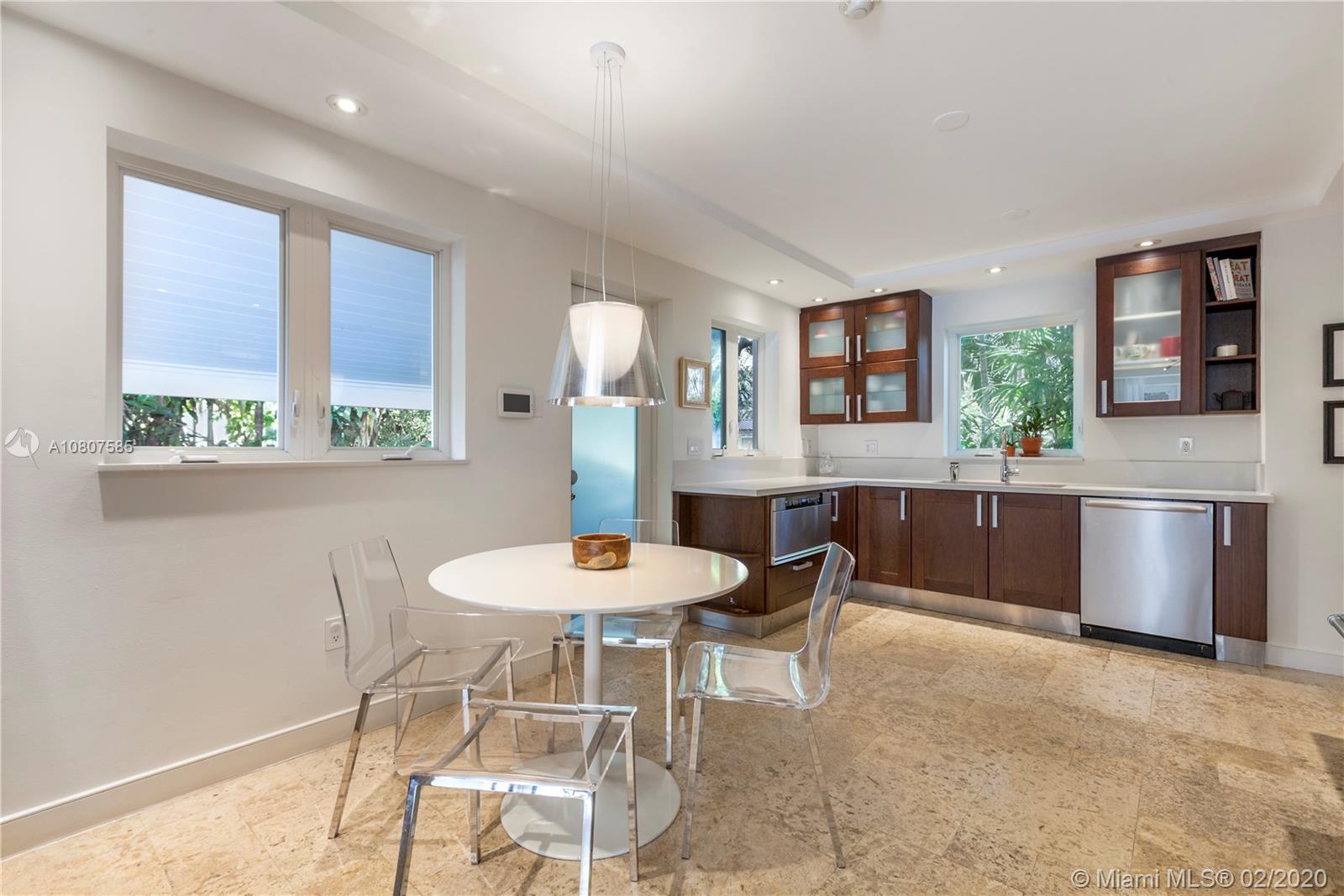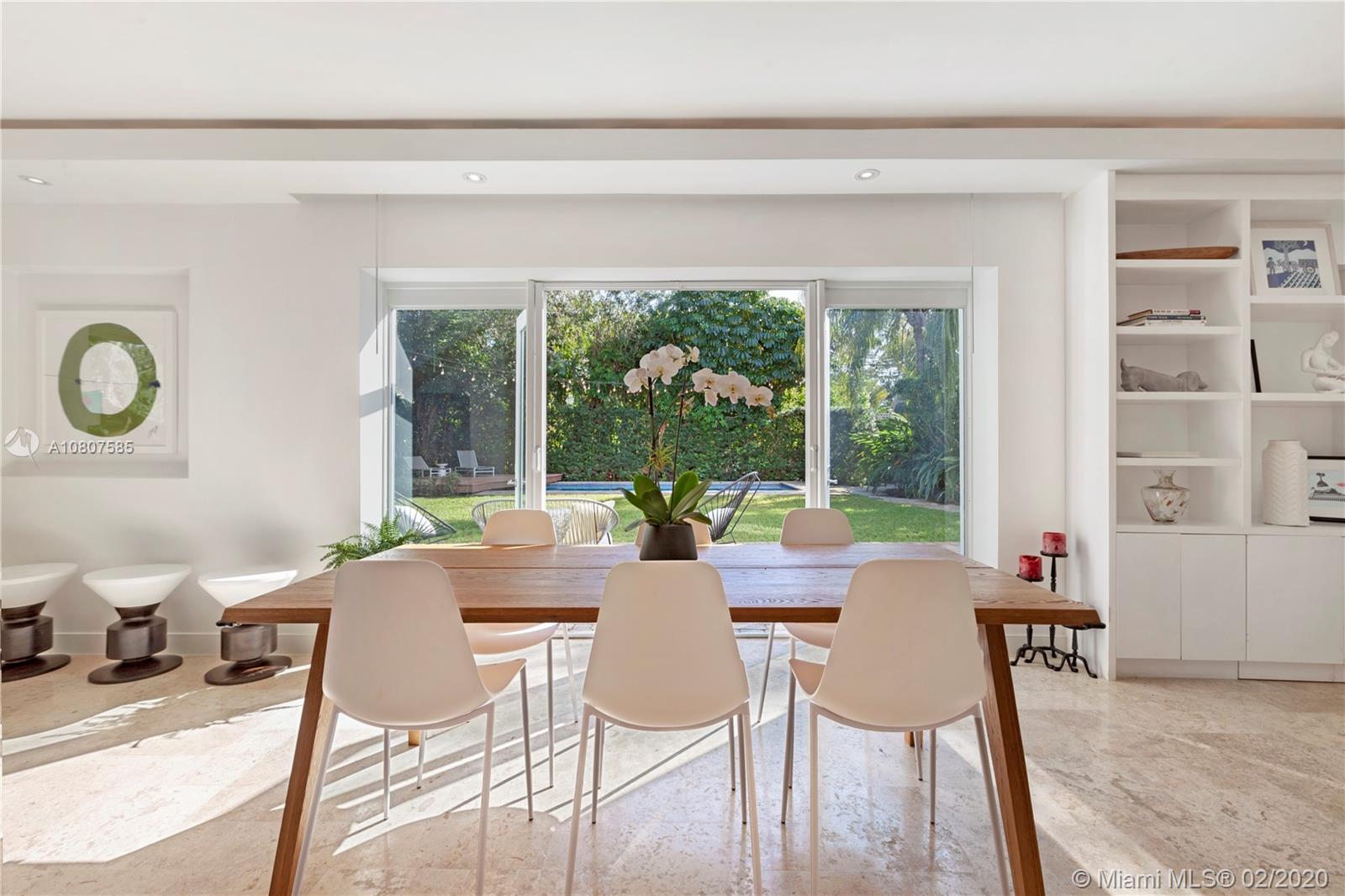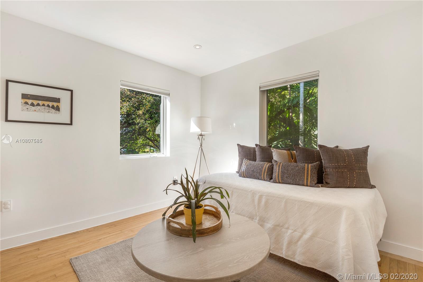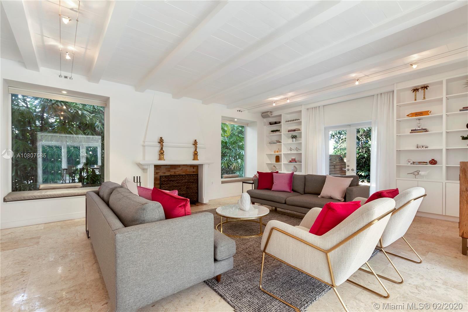 Beautifully renovated 1932 Mediterranean 2 story home in Miami Shores. Over-sized lot with mature landscaping, large salt water heated pool, patio, deck & carport. Complete smart home automation including thermostats, locks, irrigation, alarm, cameras, smoke detectors, and lighting. The main house has 3 bedrooms and 3 full baths including the master en-suite with 2 walk-in closets and a terrace. Large open living room with original working fireplace and wood beamed ceiling. Updated eat-in kitchen with great sight lines to the attached family room. Formal entryway with original staircase. The guest cottage has 1 bedroom, living space, kitchenette, full bath, large laundry room, and a workshop. Upgrades to this home include impact windows and doors, SWAT mosquito system, & outdoor lighting.