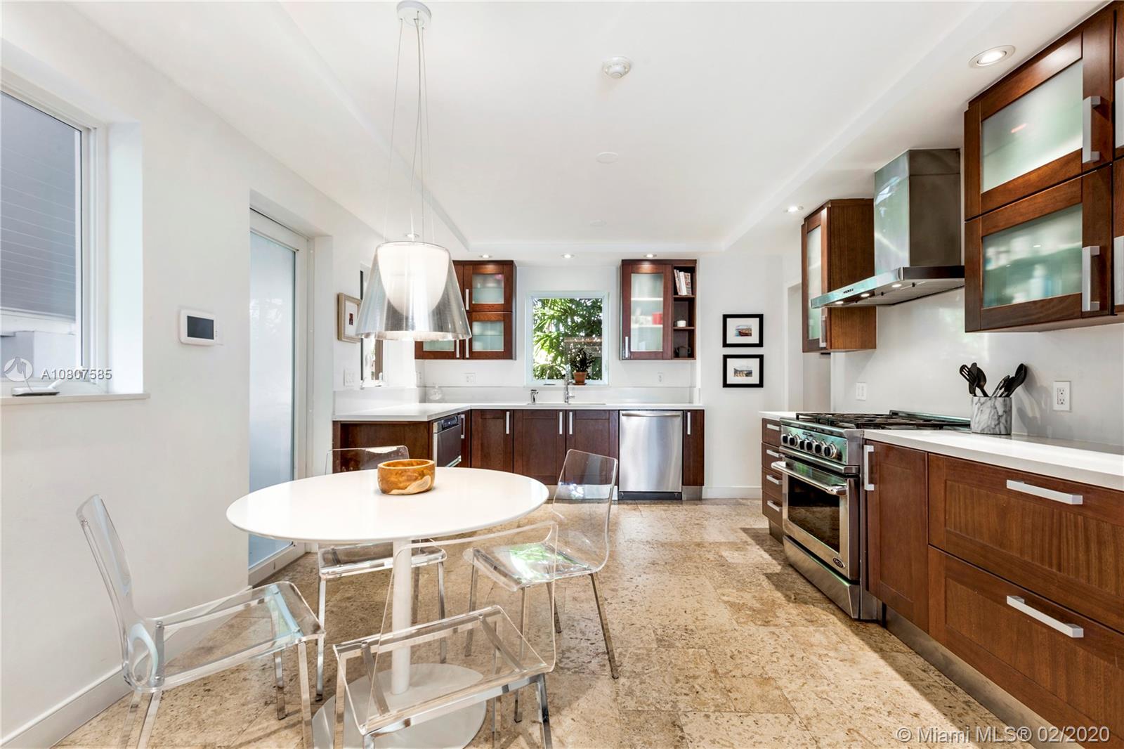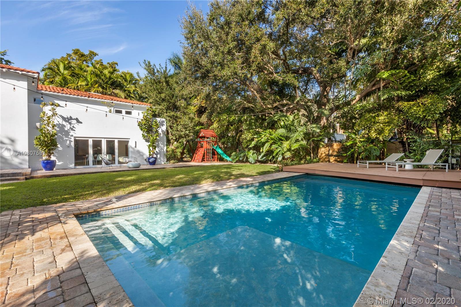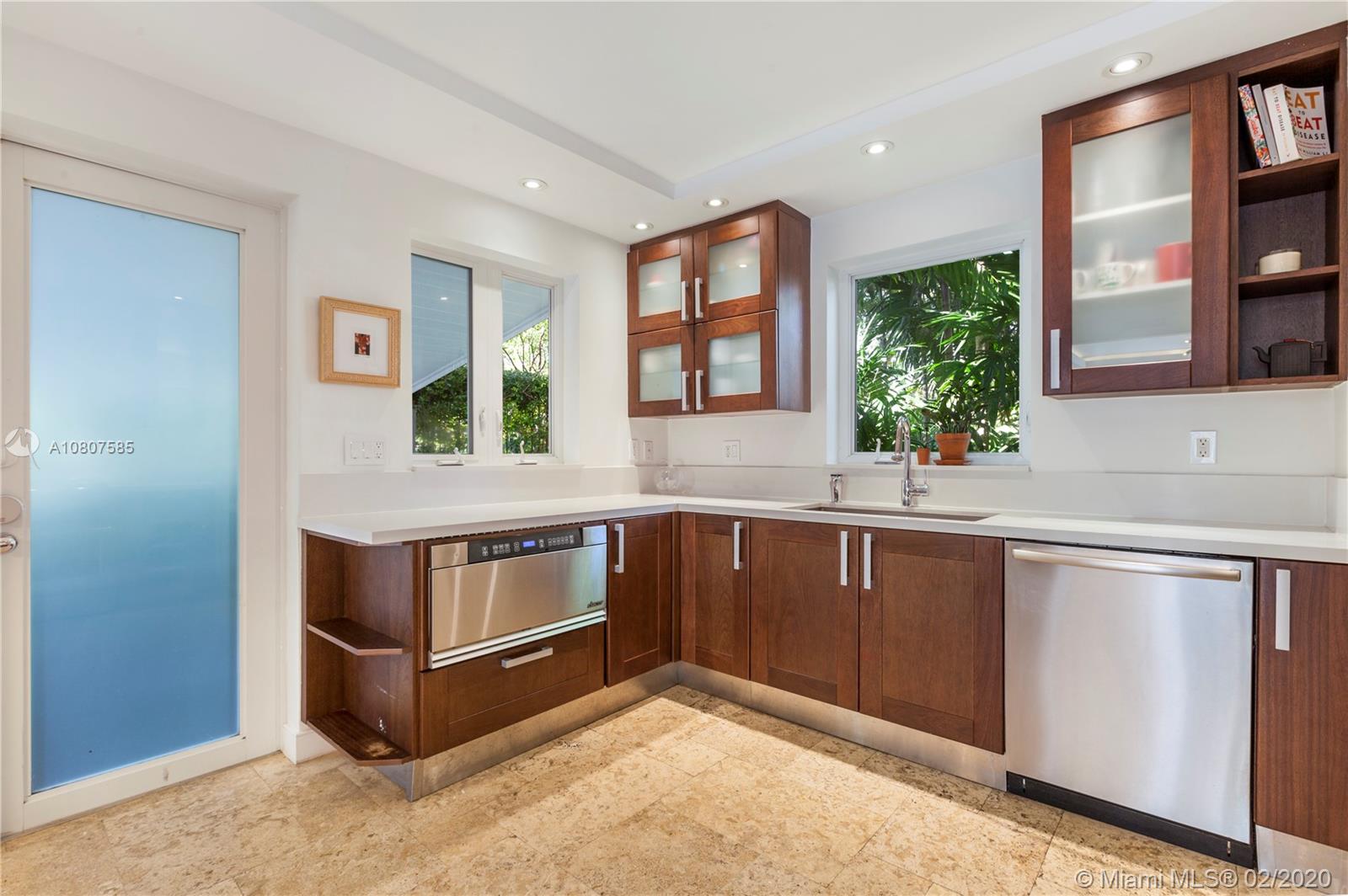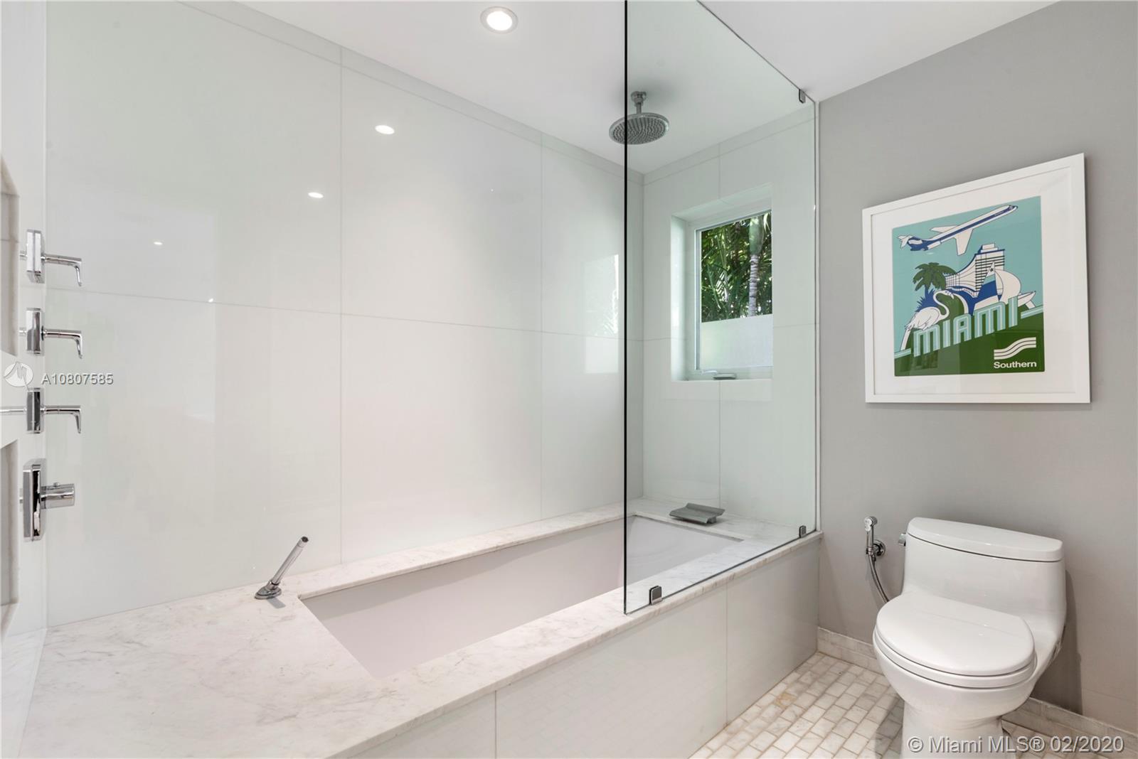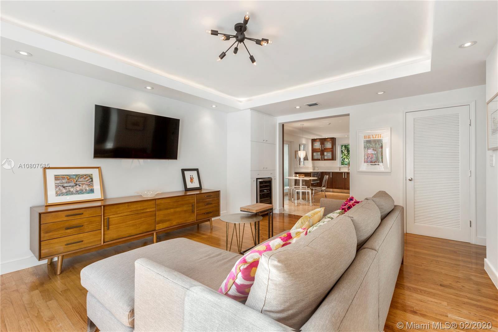 Beautifully renovated 1932 Mediterranean 2 story home in Miami Shores. Over-sized lot with mature landscaping, large salt water heated pool, patio, deck & carport. Complete smart home automation including thermostats, locks, irrigation, alarm, cameras, smoke detectors, and lighting. The main house has 3 bedrooms and 3 full baths including the master en-suite with 2 walk-in closets and a terrace. Large open living room with original working fireplace and wood beamed ceiling. Updated eat-in kitchen with great sight lines to the attached family room. Formal entryway with original staircase. The guest cottage has 1 bedroom, living space, kitchenette, full bath, large laundry room, and a workshop. Upgrades to this home include impact windows and doors, SWAT mosquito system, & outdoor lighting.