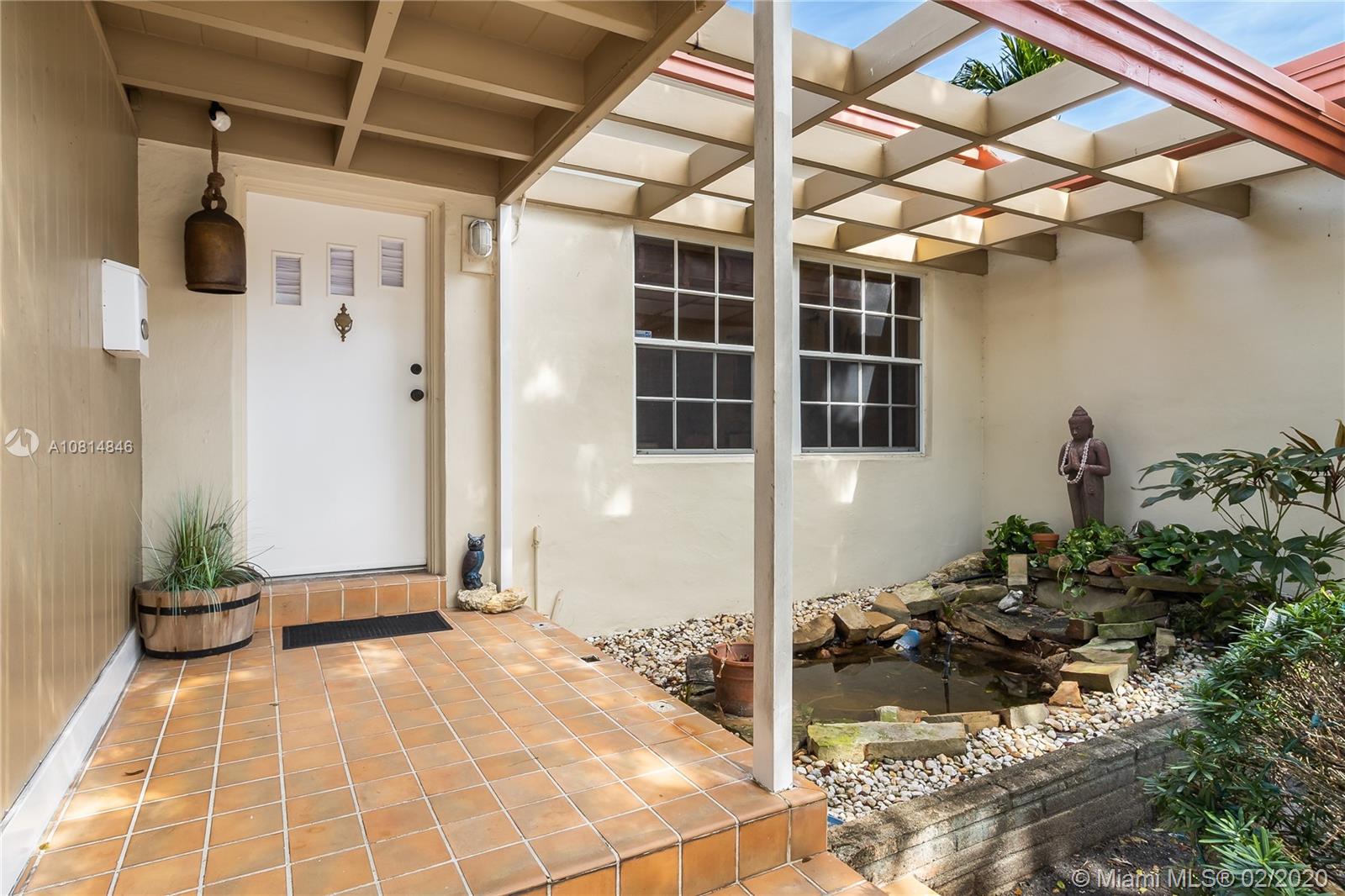 Miami Shores, mid-century 2/2 with a pool and 2 car garage. 75' on the canal with a dock and no fixed bridges and ocean access. Uniquely sited on the coral ridge, this home is at a high elevation with on a corner of the lot being in a flood zone. The house itself is in zone x500. The living room, which features a beautiful fireplace and original wood floors, leads directly to a spacious den that open out to a lovely covered patio area which adjoins the lush pool/spa area, then down a flight of stairs to your own 75' dock. This is the best of all worlds; a house with low risk of flooding located on a canal with easy ocean access-a boater dream. Come have a look!