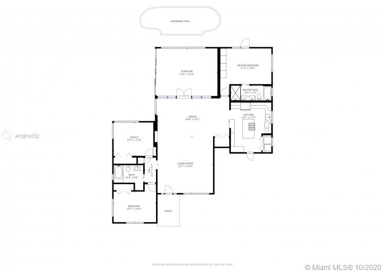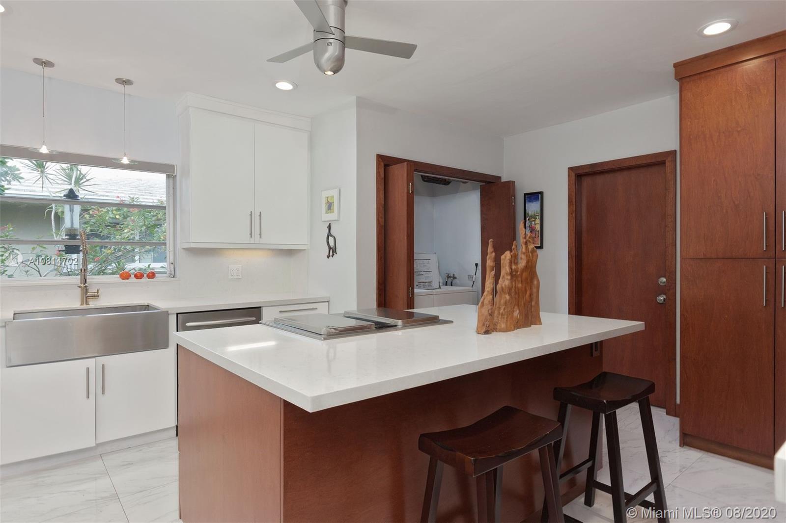 3 bedrooms and 2 full baths in Miami Shores, East of US-1. Quiet street, attached 2-car garage, pool and Koi pond. Extremely well cared for, super clean and ready to move right in. Nice bedroom split, master bedroom has access to the garden and pool. Big kitchen with cooking island and eating bar. Open floor plan allows for easy living and fun entertaining spaces. Wood floors, central a/c, mature landscaping. Garden area with pool is pleasant and private.