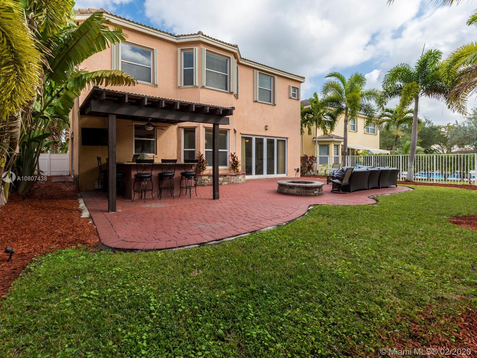 Enjoy this Aurora model with 5 bedrooms, plus a media room (convertible to a 6th bedroom), and 2 ½ bathrooms. Beautiful landscape front and back. If you like to entertain, you will be amazed by this tropical patio paradise. With a high end, fully equipped patio kitchen, surrounded by palm trees. Accordion shutters through the second floor. Walk inside this magnificent freshly painted home. Equipped media room with installed projector, video and sound system. The granite counter top kitchen comes equipped with top of the line sub-zero refrigerator, wolf double oven, cook-top and bell extractor. As well as a wine cooler. All this in the guarded community of Riviera Isles,resorts like pool, tennis, basketball courts, gym, kids park, a over 3.3 miles of area for walking, running and biking.