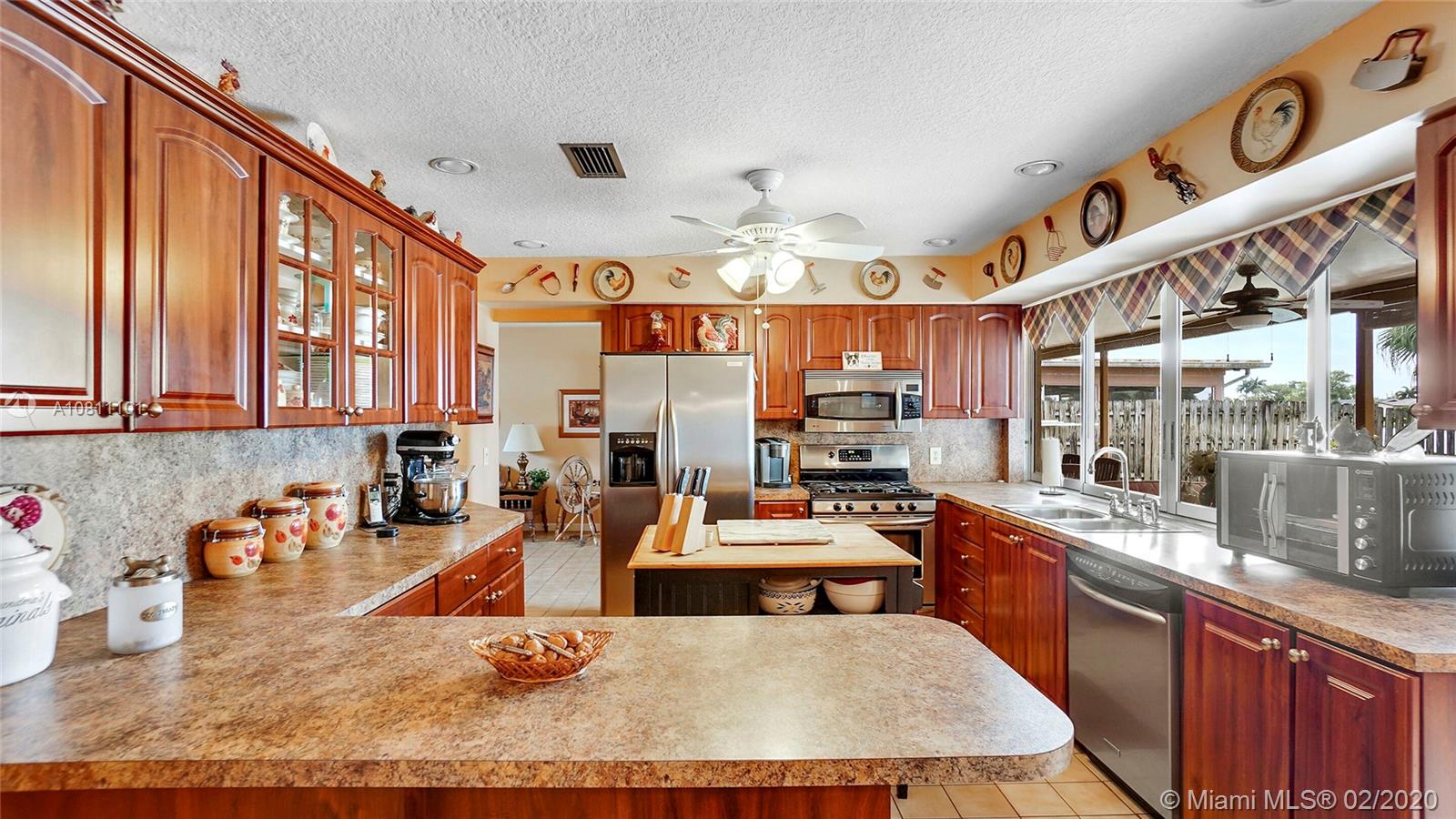 This is the perfect home in desired community in Sunrise Golf Villages. This is a 4 Bedroom (2 split master bedrooms), 3 fully upgraded bathrooms and 2 car garage with hurricane door. Large walk-in closets and private bathroom in both master bedrooms. Enjoy large pool overlooking beautiful private-oasis like views; beautiful spacious covered patio area for outdoor entertaining; one bathroom leads to pool area. This home features a beautiful upgraded kitchen open to an extra dining/family room overlooking pool area, all stainless-steel appliances included and fans in every room plus patio area (total of 9). Come see it yourself! Conveniently located near major expressways, Sawgrass Mills Mall and Great Schools, No HOA, no approval required, all aged community! Bring your family and pets!