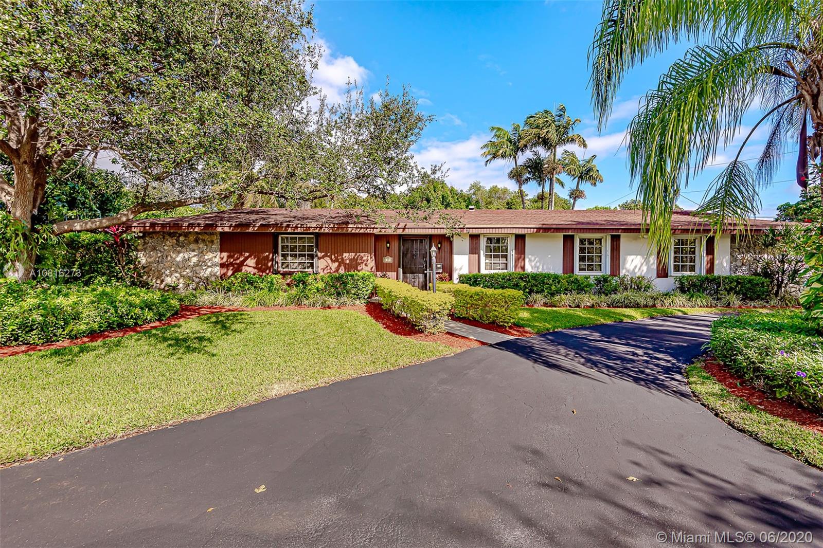 Large corner lot home on quiet street in highly desirable area of Pinecrest. Well maintained freshly painted five-bedroom, three bath split floor plan. Approximately 2,400 sq.ft. including storage and laundry room under AC. Multigenerational home with private 1/1 for in-laws, maid or adult children. Nicely adorned all white kitchen with new appliances open to family room and accessible to outdoor patio. Formal dining room and living room. 5th BR can also be a media room for casual entertainment. Expansive back yard with pool and screen enclosure; room for RV or boat trailer enclosed in well-manicured gated yard. Ideally situated to shopping, schools and accessible to Matheson and Black Point for boat lovers. Move in ready or tailor to your taste in one of Miami's finest neighborhoods.