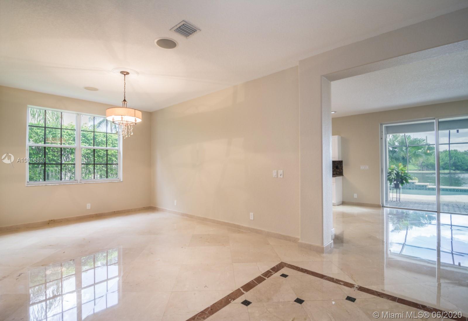 Tucked on a stunning water lot with long lake views, this expansive model features six bedrooms and six full baths. Marble flooring throughout first floor with full bed and bath down. Double sliders lead to fully screened paver patio with large overhang and remodeled heated pool with spa & marble deck. Oversized family room, perfect for a pool table. Kitchen with White wood cabinetry and granite. All laminate wood floors upstairs, with fresh paint throughout. Full accordions, walk to community park. FRESHLY PAINTED EXTERIOR & New kitchen.