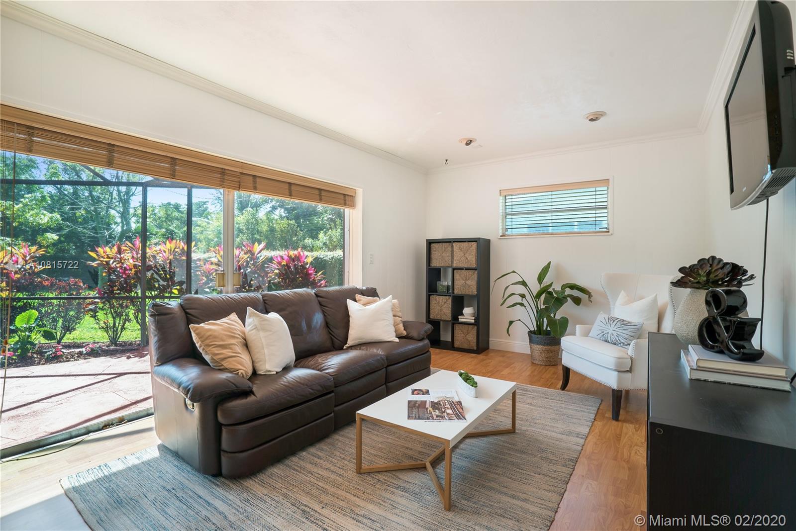 Charming 3/2 pool home with spacious 2-car garage. It is located on a quiet street yet close to a bus stop, schools, shops, restaurants and several parks. The living and the kitchen/family rooms open to a covered outside area and screened in pool deck for great entertainment flow. This house has many updates but waiting for new owner to put personal touch on master bathroom. Living areas have laminate floors, new tile in kitchen and terrazzo floors in bedroom wing (some damage from carpet removal).