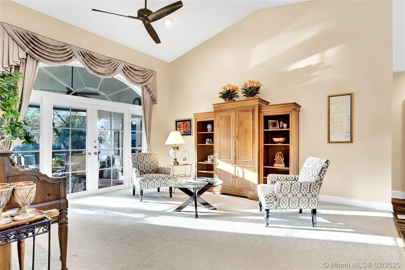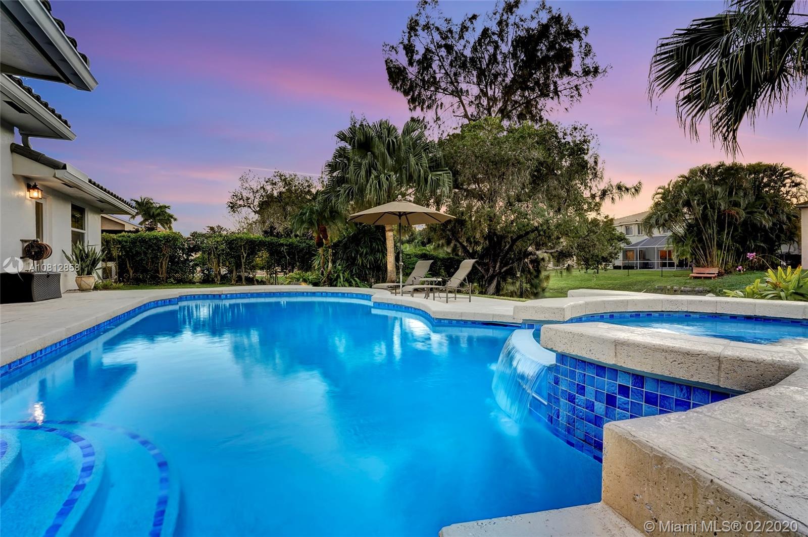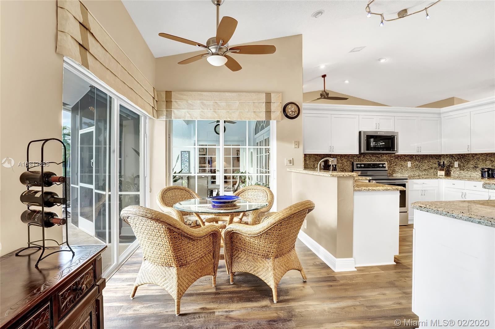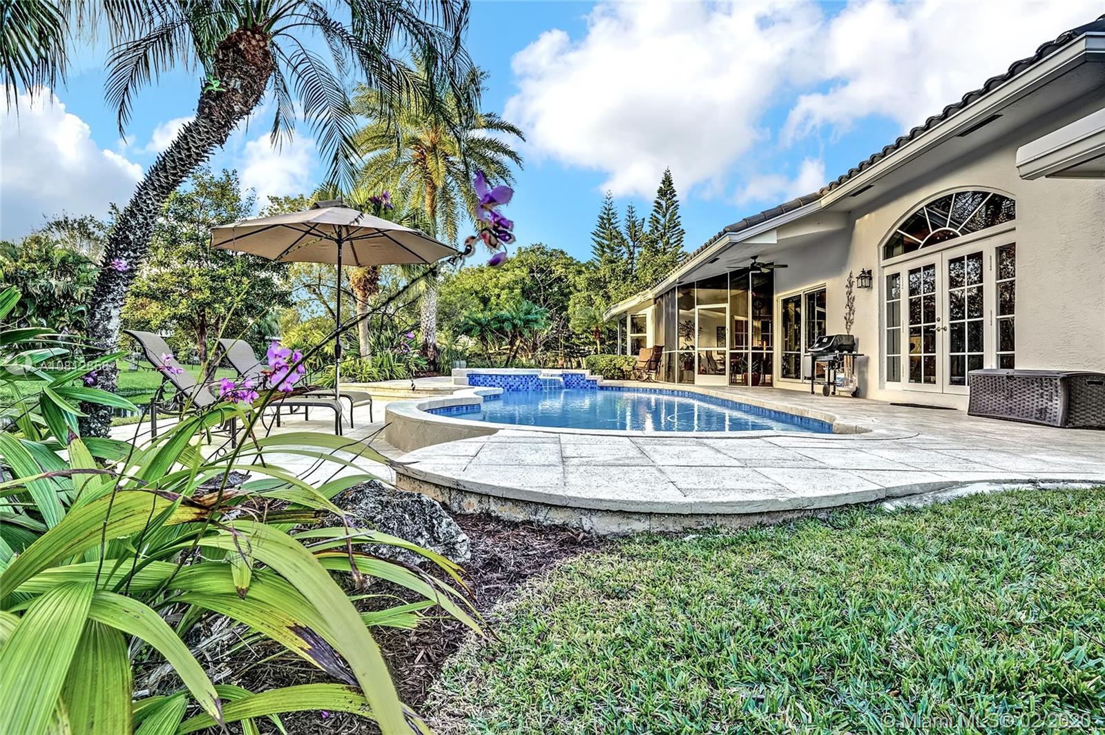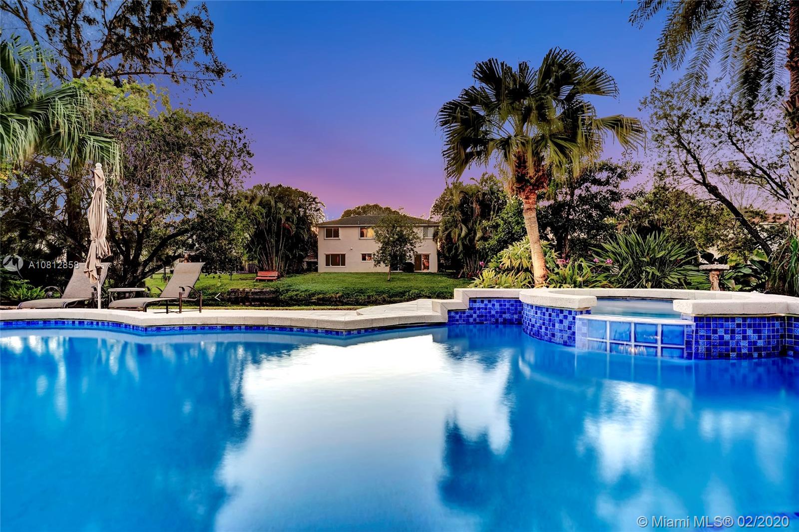 Living is easy in this beautiful, spacious residence with breathtaking pool and water views. The open floor plan encompasses four spacious bedrooms with plenty of room for study, sleep and storage, two and a half updated bathrooms, and a stylish gourmet kitchen that flows through to the casual dining and family room areas. The home wraps around the spacious rear patio and pool, offering water views from every angle. The split floor plan offers a private master bedroom, complete with finished walk-in closet and ensuite bath. Every detail was carefully selected and quality crafted. Highlights include 1 year old roof, impact windows & doors, brand new AC unit, new appliances and floors, new electrical panel & a recently renovated pool. This is truly resort style living in an ideal location.