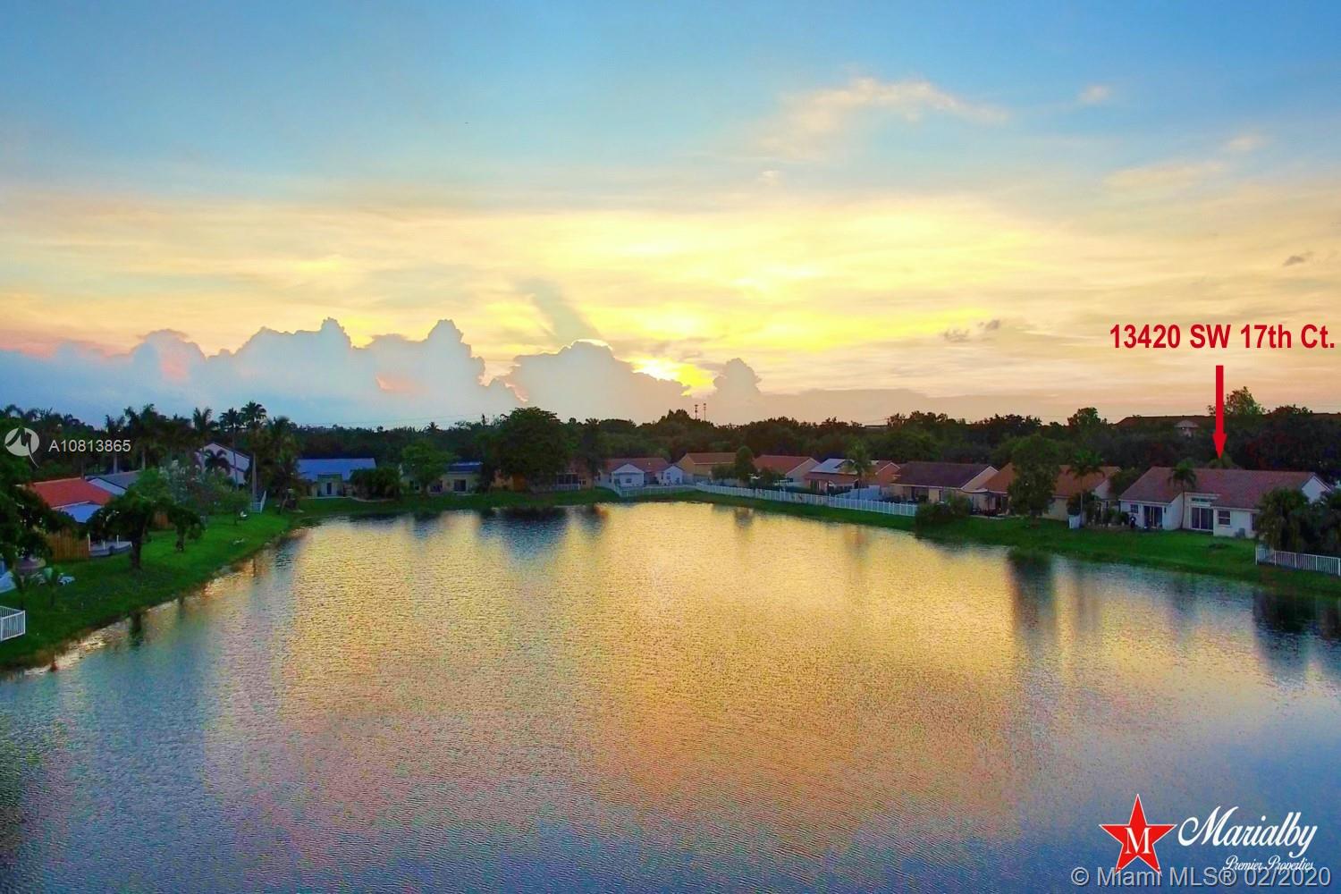 This spectacular lakefront home is located in the highly desirable neighborhood of Trilogy at Flamingo Estates. You will be amazed with the panoramic nature views you will enjoy from this home. This home has wonderful high vaulted ceilings that give it a bright and airy ambiance with lovely tile throughout the house. It has a wonderful split floor plan with a large master bedroom. The master bathroom features a large Roman tub and has a separate large shower for two. This home also features a huge family room with an eat in kitchen where you will enjoy the beautiful lake and garden views. Nearby you will find Flamingo Estates Park with a children's playground, tennis courts & biking trails that connect to Monarch Lakes Park. This beautiful waterfront home is easy to show and will not last.