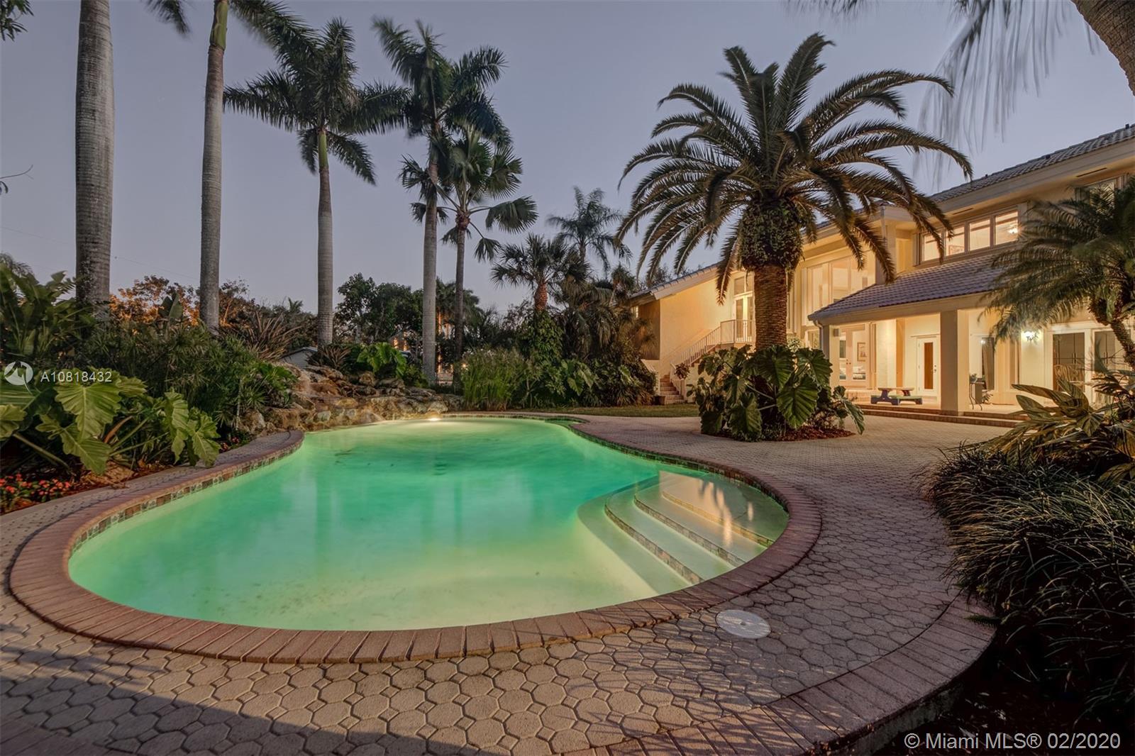 5574 ADJ SF & 7,977 TOT SF & 51,836 SF Lot! Tropical Paradise in Pinecrest! Beautiful custom-built home features a fully gated acre lot. Mid-level master suite has private master bath and office. Chef’s kitchen has top Sub-0 & Miele appliances and spacious island. Lush tropical landscaping surround a sparkling Salt-water pool with waterfall. High volume ceiling, wood finishes & floors, & fireplace are among this home’s many luxury features. Stately 2+ car garage w/ built-in closets, oversized laundry / hobby room offers plentiful storage options. Privately gated 35FT driveway, perfect for R/V or Boat, affords lighting, electric, water, and storage shed. Additional 1200 SF of space is ready to be converted!