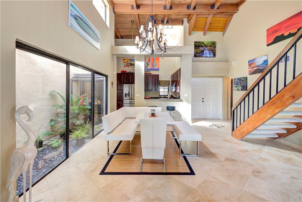 Light, bright, open and spacious....come see this one of a kind 3 bedroom, 2 bathroom, 1 car garage home. This home features a newer kitchen with stainless steel appliances. Tall ceilings with open beams. Private master bedroom/bathroom located upstairs with a lot of organized closet space. Beautifully finished master bathroom. Off the master bedroom enjoy a balcony over looking the peaceful lake. Open living space downstairs. Covered outdoor entertaining area. Washer and dryer in the unit. Accordian shutters.