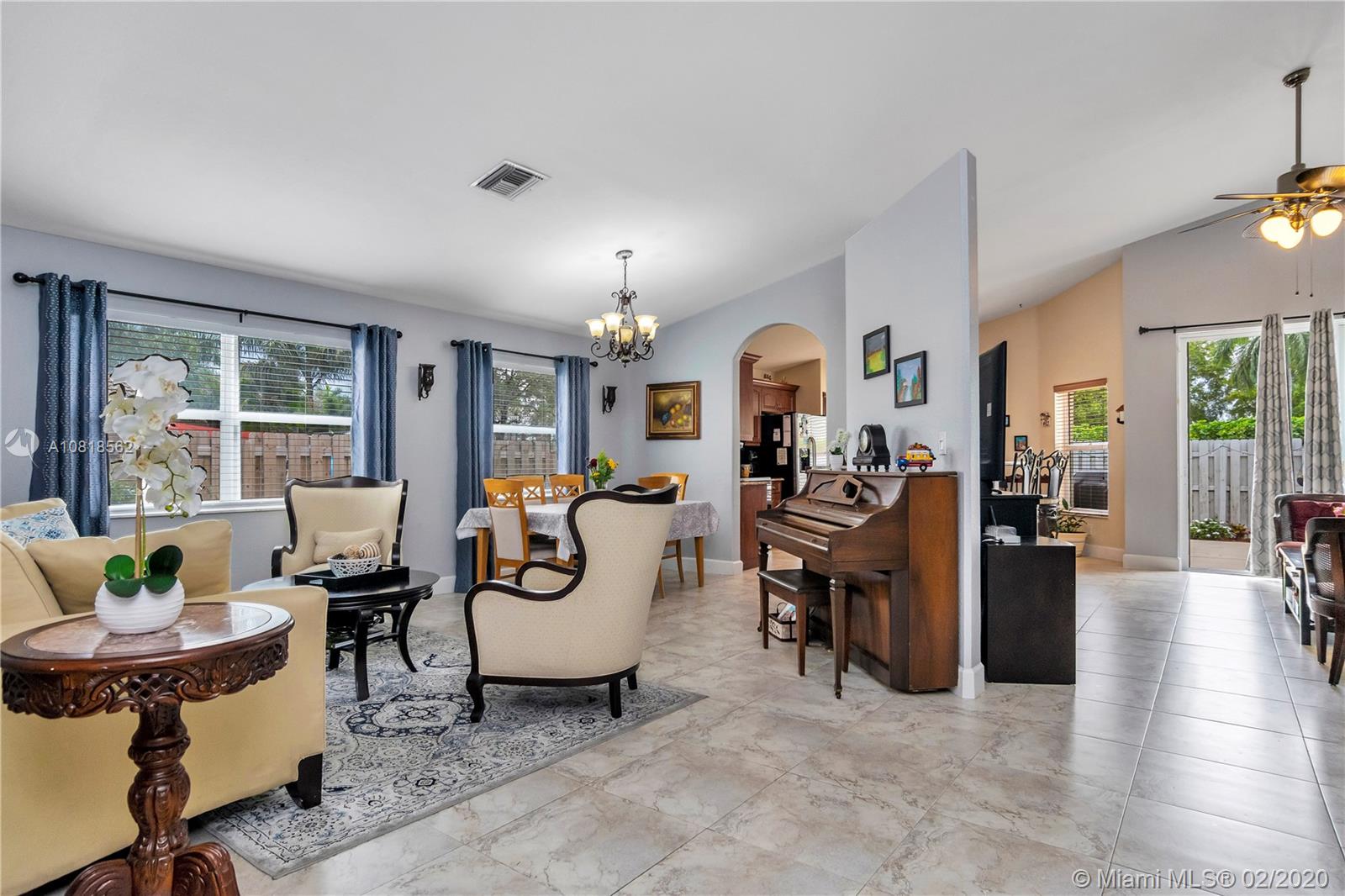 Wonderful 3/2 single floor family home, beautifully maintained & located in a gated community with exceptional amenities & A rated schools. It lures you with wood laminated bedroom floors, porcelain tiles throughout the rest & a comfortable well appointed kitchen with granite countertops, stainless steel appliances and wood cabinets. Stove and water heater have been recently replaced. This home has a large back patio where you can BBQ or just relax while the community cuts the grass, provides internet and basic cable as well as 24/7 security. For your family's enjoyment, there are 3 pools, a gym, racquet, tennis & basketball courts, fishing piers, picnic areas, a jogging/bicycle path, a club house, library & coffee bar, covered play area & more, all within a green & lush 12 acre community.