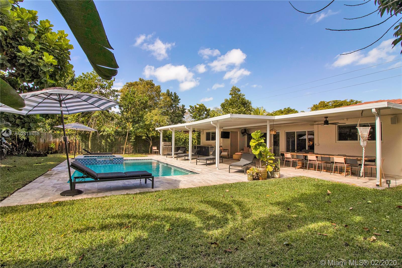 Distinctly renovated Griffing Park Estates home, suited for the most discerning home buyer. Carefully curated and brand new kitchen, top of the line Kitchen Aid appliances, bathrooms, master suite while encompassing all of the homes unique characteristics such as Terrazo floors and oversized lot with lush greenery. Brand new heated salt water pool & spa purposely built for the long Miami summers. 5 ton Trane Central AC, Barrel Tile Roof and impact windows through out the home. This home is perfect for those looking to move right into the perfect Oasis.2