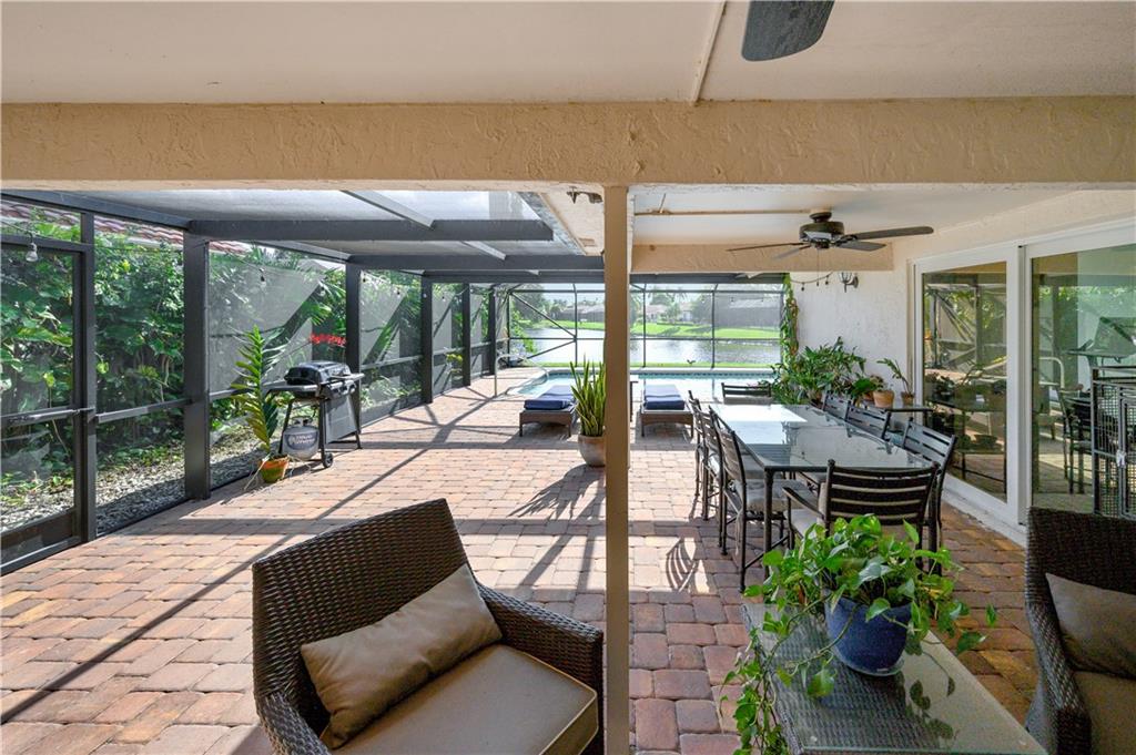 Serene and enticing water view from the newly designed pool area, including high quality screen enclosure and decorative pavers which encompass the entire outdoor area. Then step into this magnificently and elegantly designed interior, including a European kitchen, modern guest bathroom, new flooring and impact windows for both protection and energy efficiency. Home is located in a quiet cul de sac. . No golf course membership is necessary for this pay for play course.