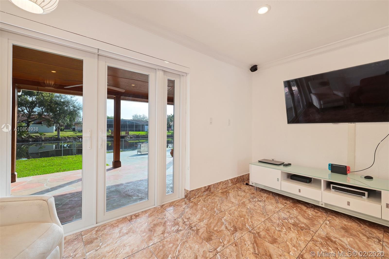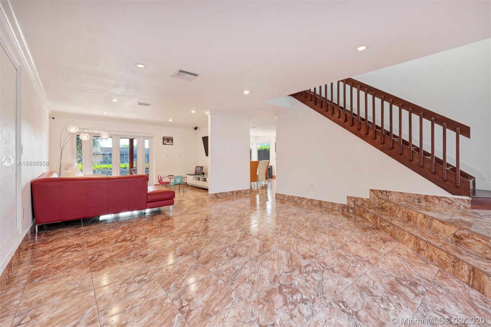 Enjoy lake views on this modern 2 story lakefront family home located on Esplanade private community. Tile throughout first floor, open kitchen-granite countertops, stainless appliances. Recessed lights, 4 bedrooms on the second floor, large master with remodeled master bathroom, Impact windows and doors. Garage was converted into a playroom-easily reversible. Lovely covered terrace- great for entertaining. This community features a community pool, tennis and racquetball courts, playground and 2 cabanas with BBQ and 24 Hr security, very low HOA $ 80 Monthly, No HOA approval required. Conveniently located to I-75, Palmetto Expressway, Turnpike, great schools, banking, shopping, dinning, Publix, Sedanos and more. Easy to show!