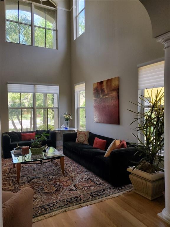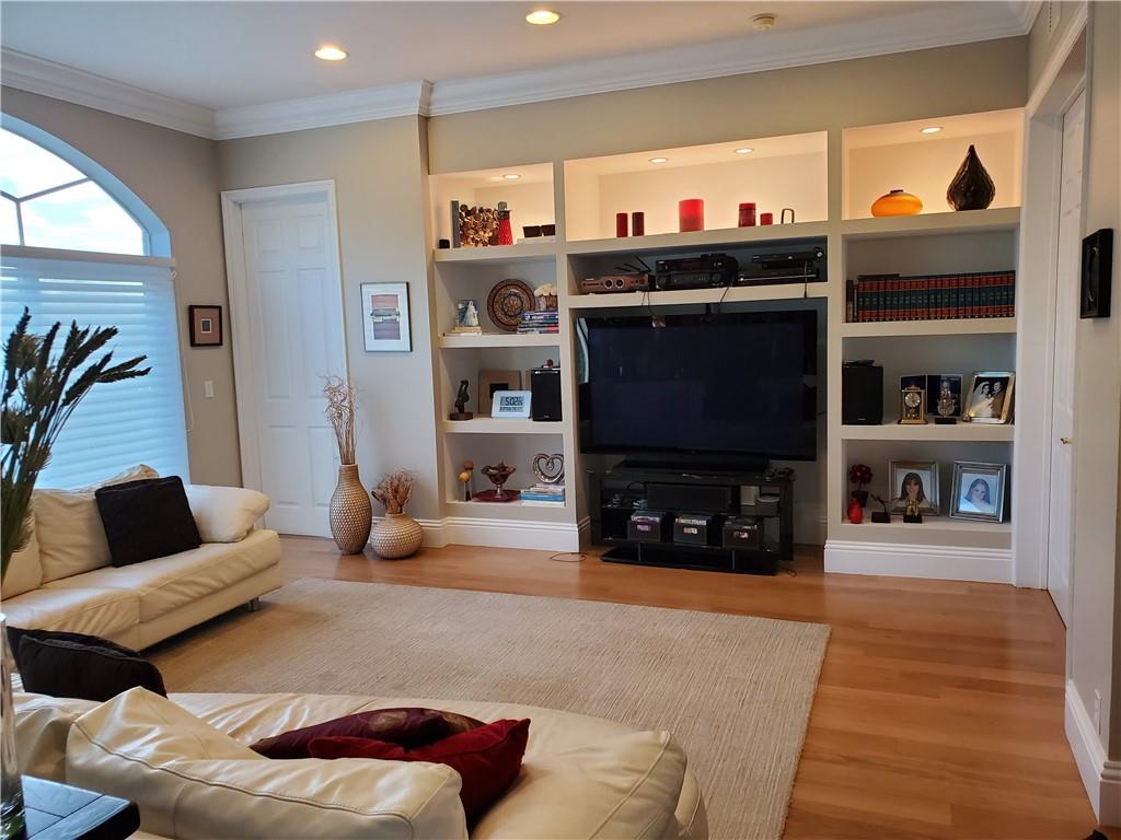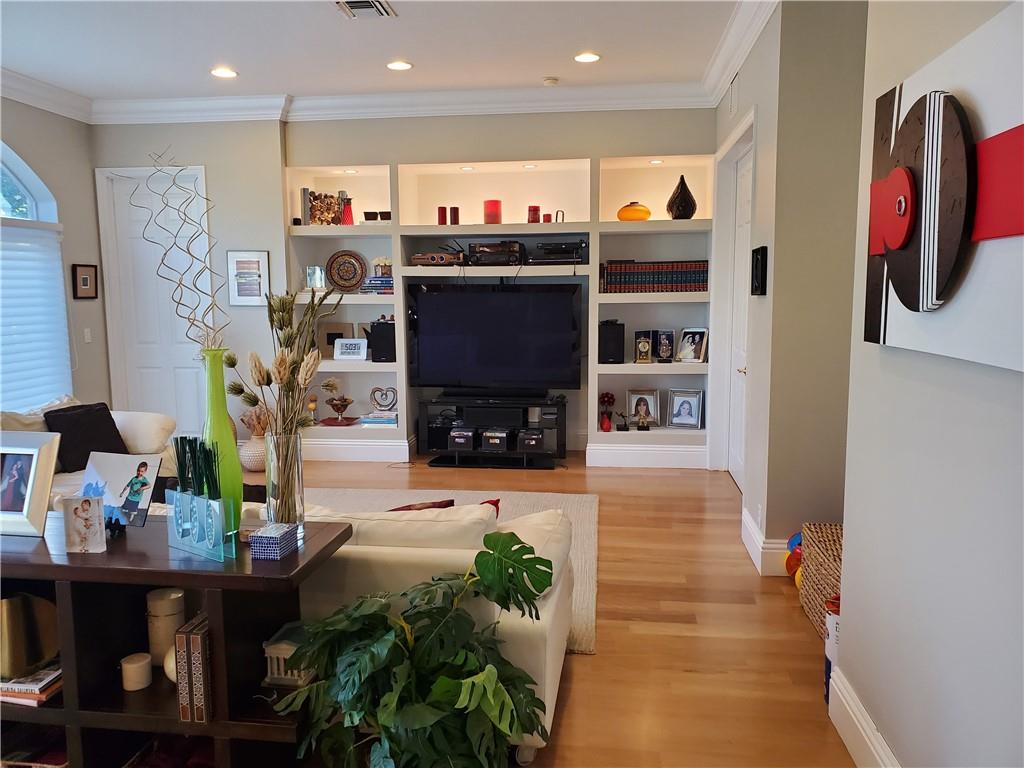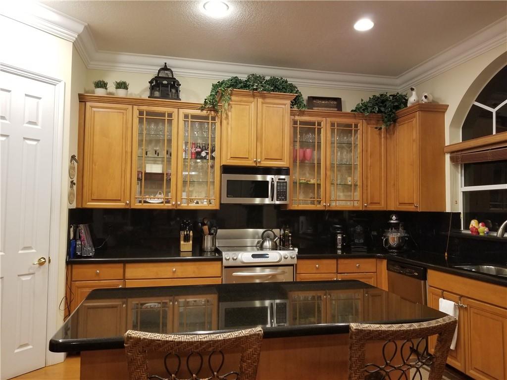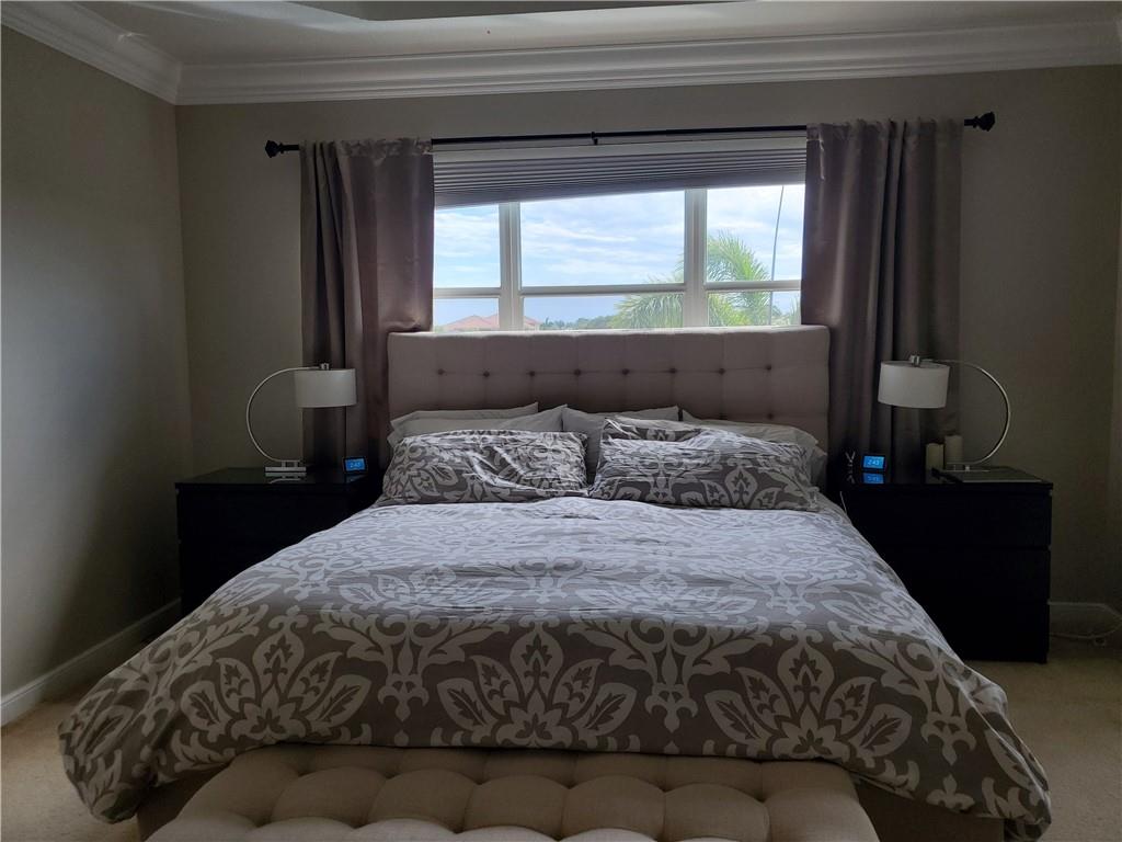 Welcome! Huge 5 bedrs, 4.5 bath, 3 car gar, waterfront with salt water and heated pool and spa. The upstairs master suite includes his and hers separate vanities with a large tub in between and huge shower box, custom built in closets in the Master bedr and large sitting area that can be used as office, gym or nursery. Originally a 6 bedr, 1 was turned into custom walk-in closets for 2 of the rooms. Spacious loft with a view to downstairs. Beautiful kitchen has huge island open to the family room with lots of space for entertaining, family time, guests and more. Second master suite downstaris and cabana bath. Formal Living and dining room makes it extra elegant with stunning real Brazillian wood floors. Gated community, Amazing schools. Fenced lot. It won't last long! Chandelier won't stay