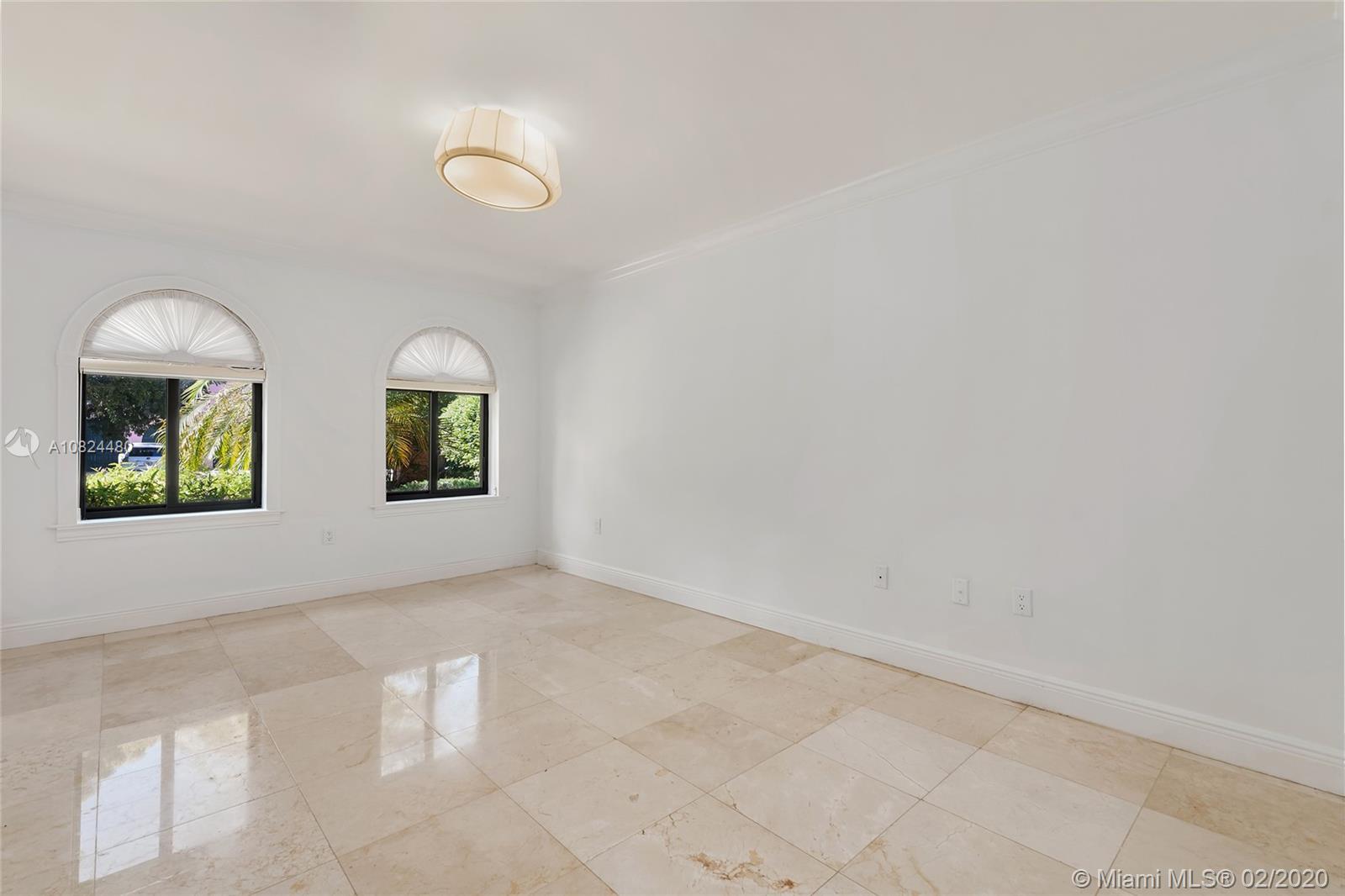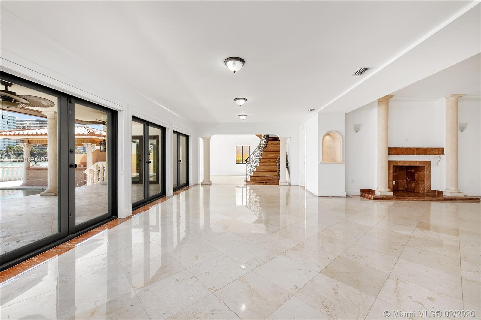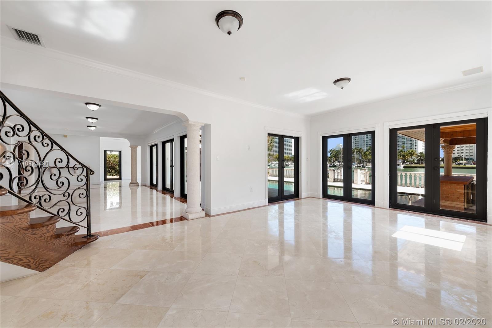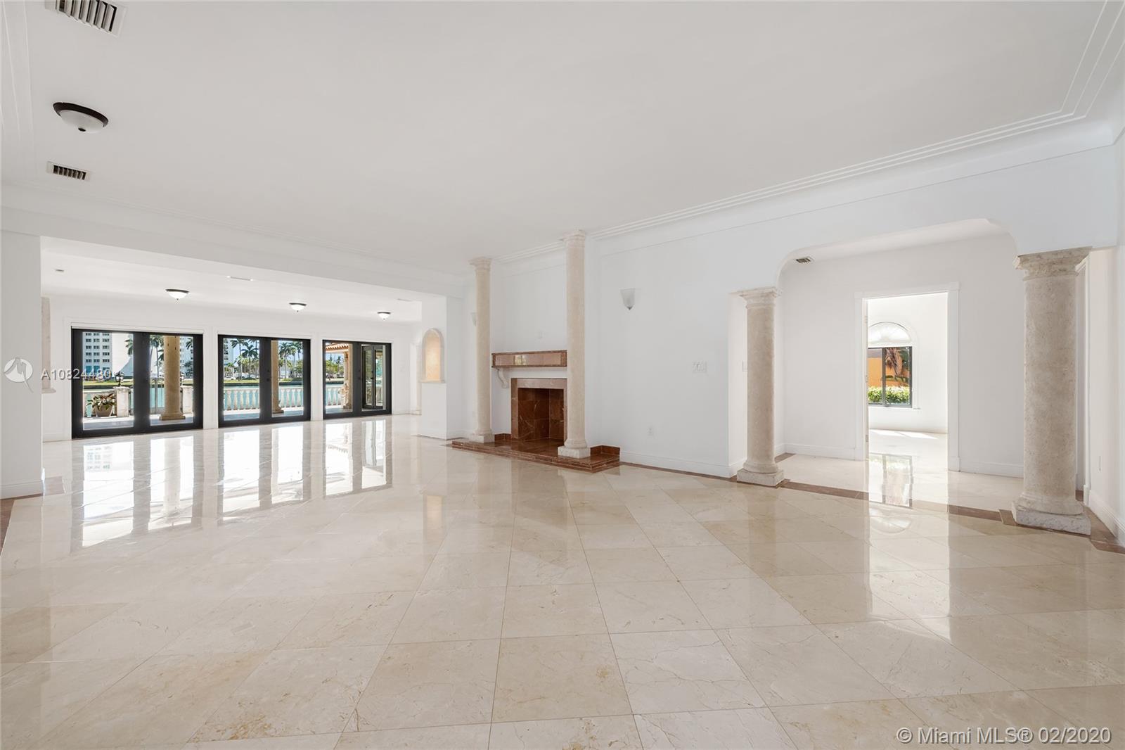 This 2-story Mediterranean waterfront home on exclusive Pinetree Drive is a must see. The 4BR/5+1BA home features fine marble floors, and sits on lush 11,954 SF lot w/4,443 ADJSF of interior space. An open foyer greets w/ circular rotunda ceiling, large living room space with a fireplace & spacious private dining & family/media rooms each w/direct access to the large pool deck. The open kitchen sports a granite center island, counter tops/backsplash, top-of-the-line appliances & private breakfast area. The 2nd floor principal suite has a balcony that overlooking the pool & Intracoastal Waterway, large bathroom w/sunken spa tub and steam shower.