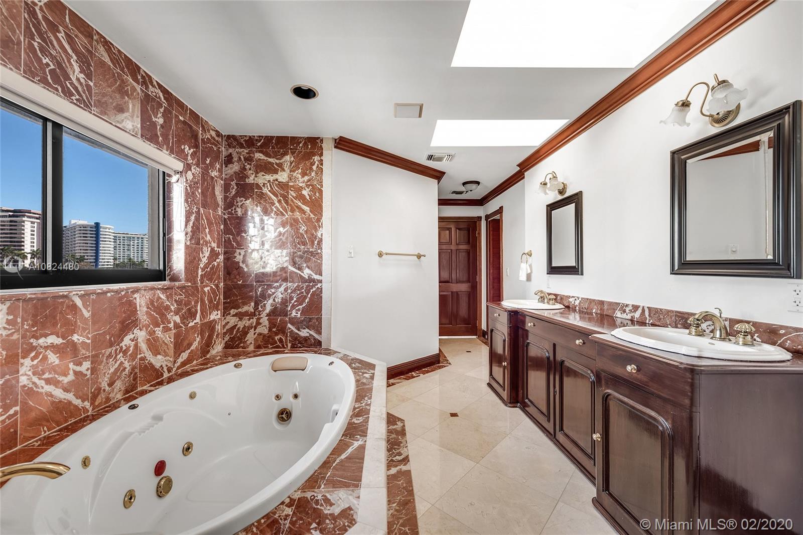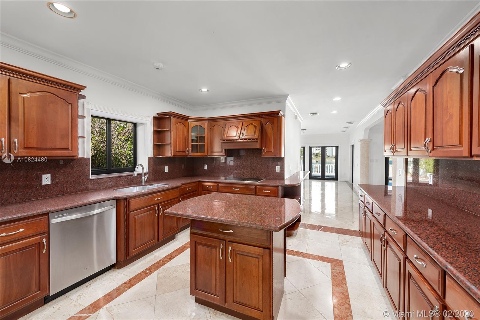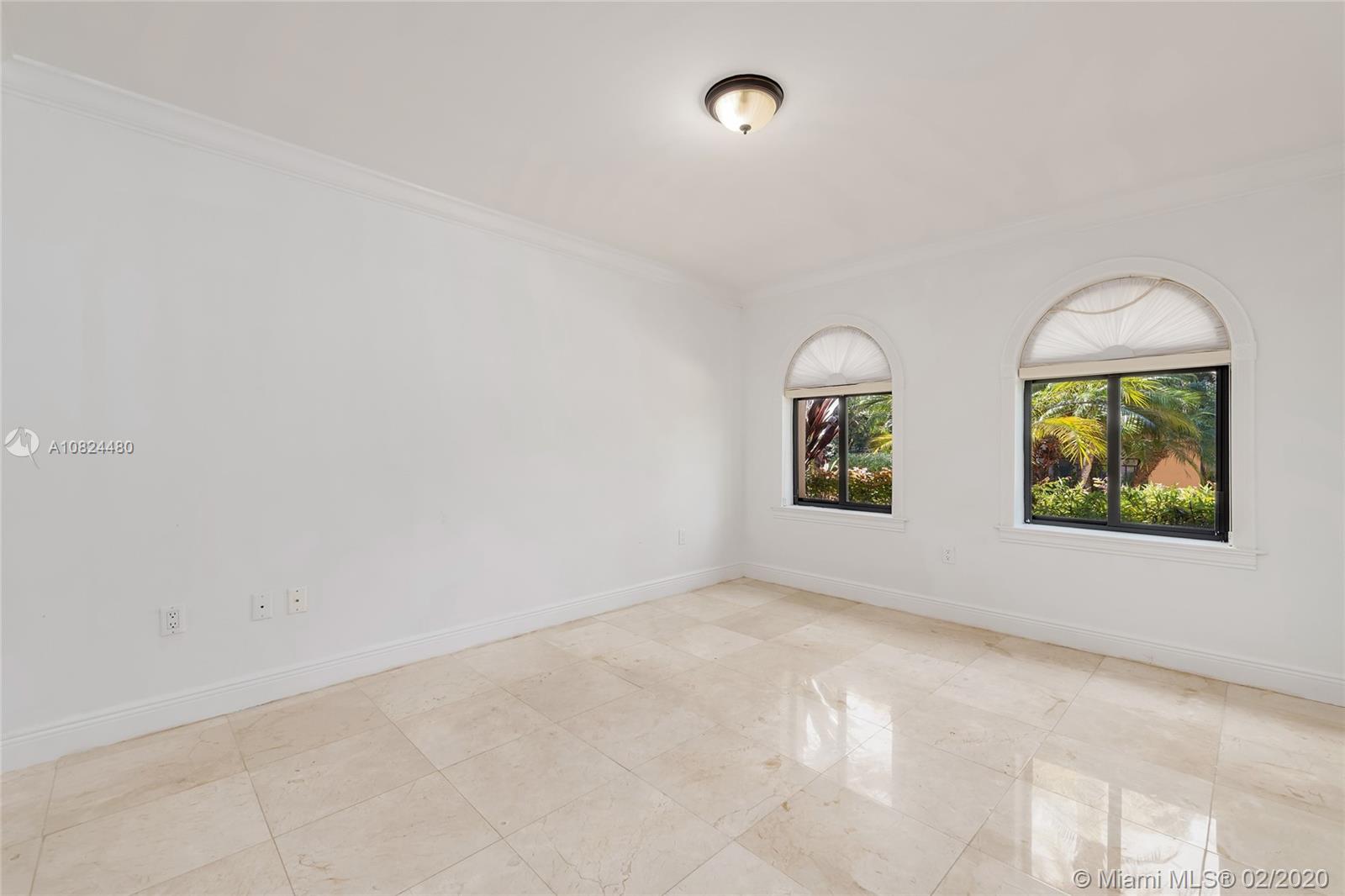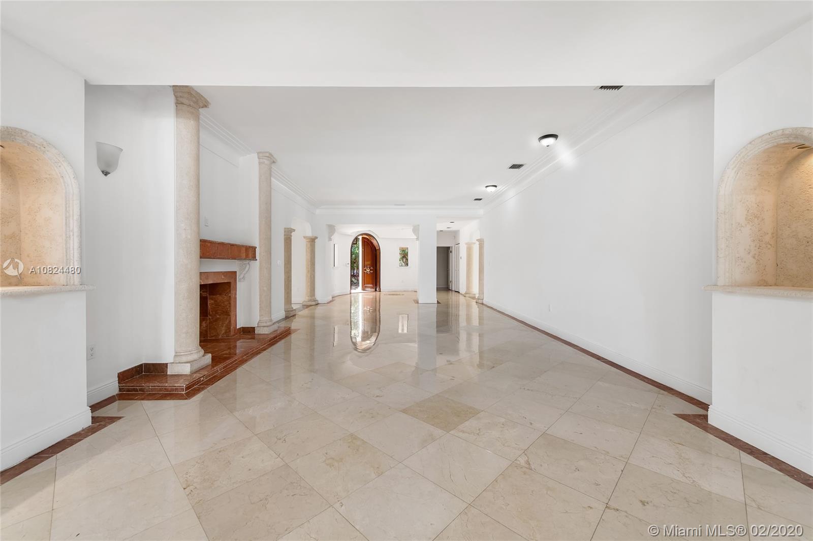 This 2-story Mediterranean waterfront home on exclusive Pinetree Drive is a must see. The 4BR/5+1BA home features fine marble floors, and sits on lush 11,954 SF lot w/4,443 ADJSF of interior space. An open foyer greets w/ circular rotunda ceiling, large living room space with a fireplace & spacious private dining & family/media rooms each w/direct access to the large pool deck. The open kitchen sports a granite center island, counter tops/backsplash, top-of-the-line appliances & private breakfast area. The 2nd floor principal suite has a balcony that overlooking the pool & Intracoastal Waterway, large bathroom w/sunken spa tub and steam shower.