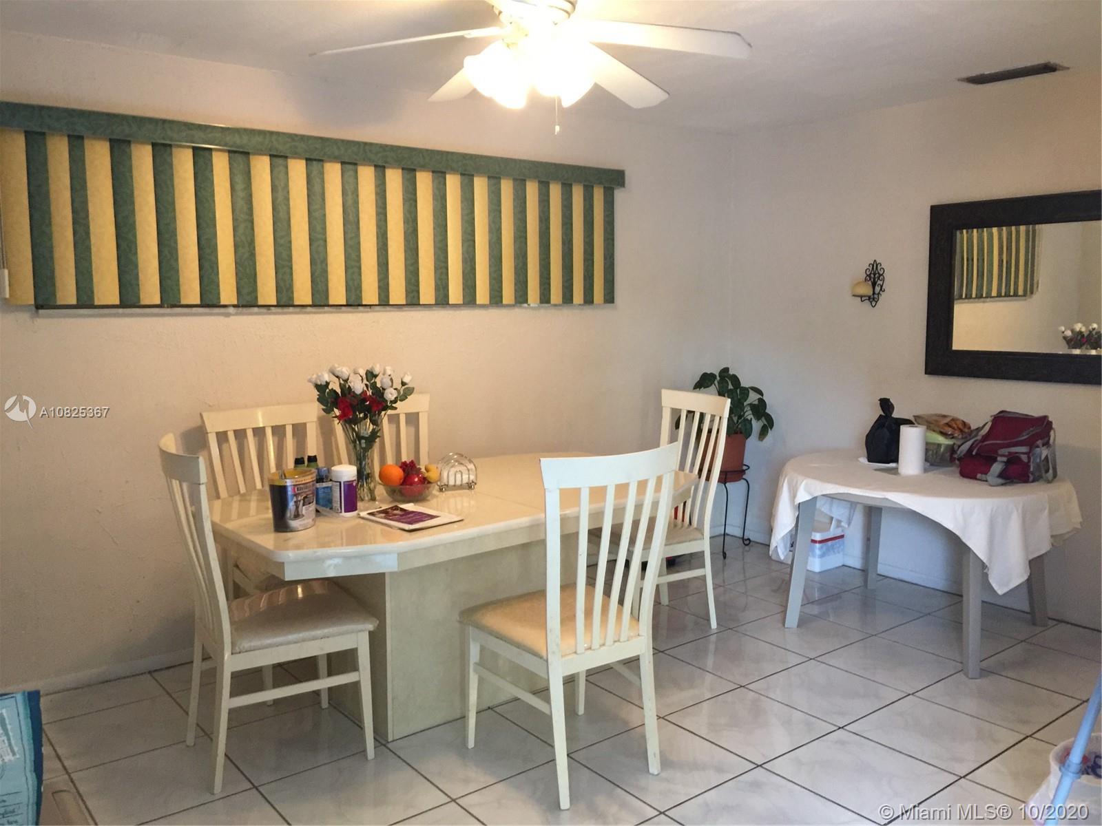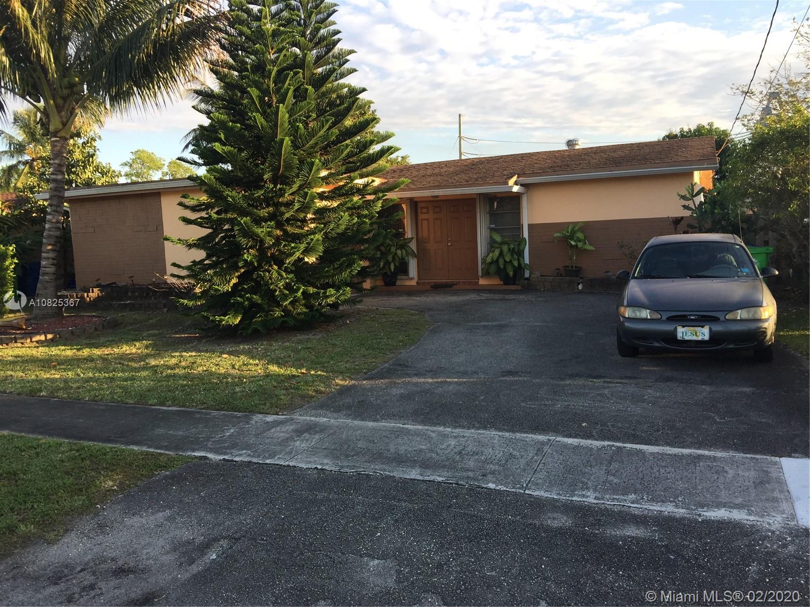 Lovely 3 BR/2BA single family home on a quiet street with a private fully fenced yard and a beautiful pool with stamped concrete. Split bedrooms with an Open layout and a sunken living room area and family room and a formal dining room. The kitchen looks out to pool area with mango tree. Freshly painted, AC 5 years old, hurricane impact front door and garage, newer fence, stamped concrete around pool area. All windows have hurricane shutters(accordian and/or panels) and rain gutters.