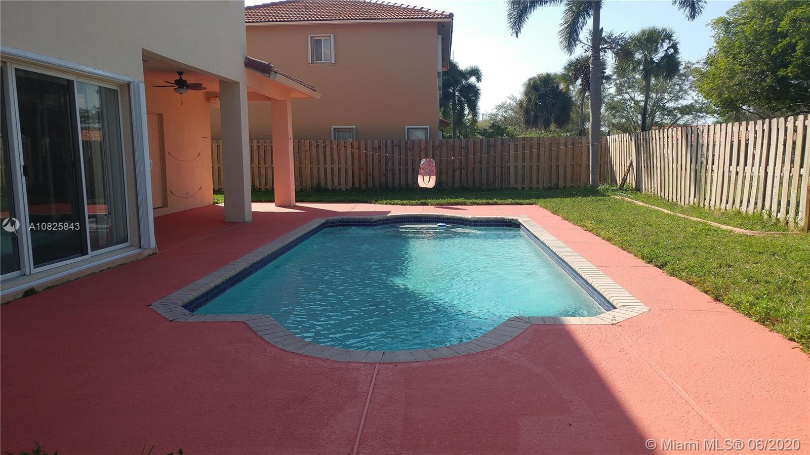 Location Location, Location, Spectacular pool, audio speakers In/out, great for entertainment, home in cul-de-sac. No neighbors in back, play yard and basketball courts. New Roof, New A/C system, New Pool equipment and surface, Huge Master Bedroom upstairs, one bedroom & bathroom downstairs for in laws or guest, great room, large family room, one side gate area is larger for small boat or any toys. Accordion Hurricane shutters, fans through out.