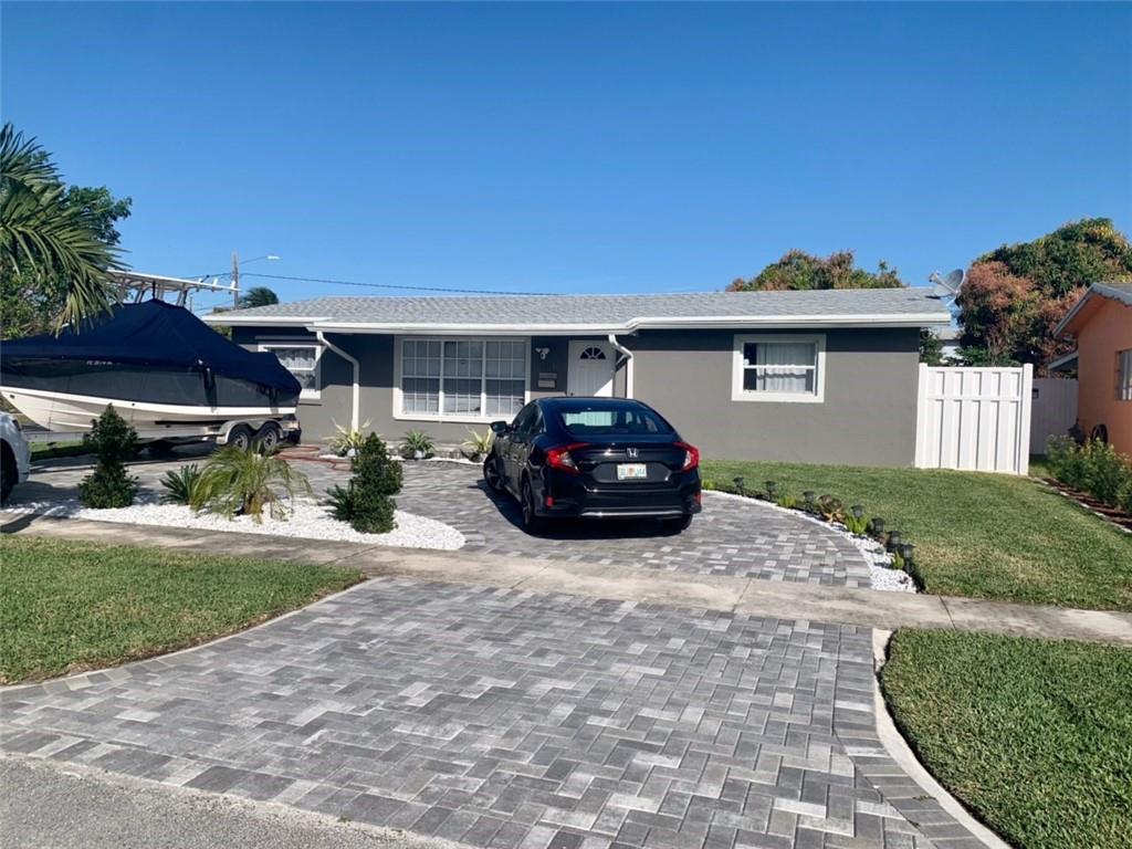 WELCOME TO A LITTLE BIT OF PARADISE! THIS HOME IS TOTALLY UPDATED! NEW ROOF, NEW CONTEMPORARY KITCHEN AND BATHROOMS. ALL NEW APPLIANCES INCLUDING TOP OF THE LINE WASHER AND DRYER, GORGEOUS FLOORS. RECESSED LIGHTING, BEAUTIFUL GREY BRICK PAVER CIRCULAR DRIVEWAY AND BACK PATIO. TANK LESS WATER HEATER, HURRICANE SHUTTERS, OVER SIZED CORNER LOT, NO HOA FEES OR RESTRICTIONS, PARK YOUR BOAT OUT FRONT OR ON SPACIOUS SIDE YARD WITH DOUBLE GATES, NEW PVC FENCE. NOTE: THE WALL UNIT ATTACHED IN LIVING ROOM STAYS.