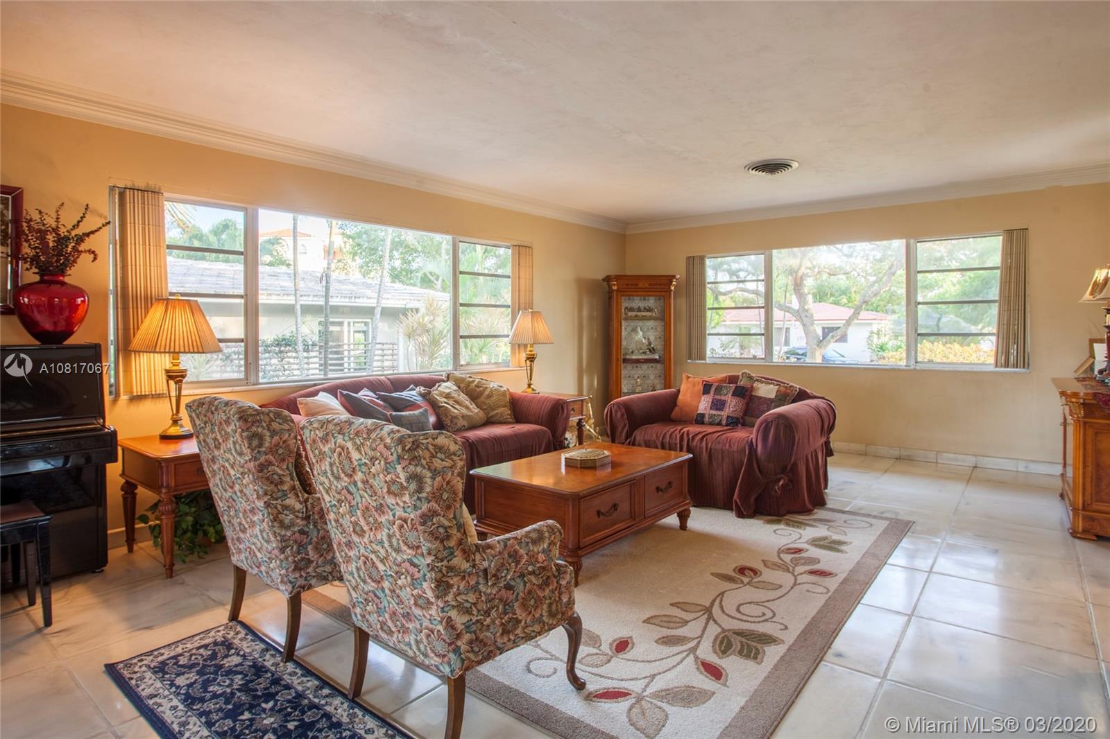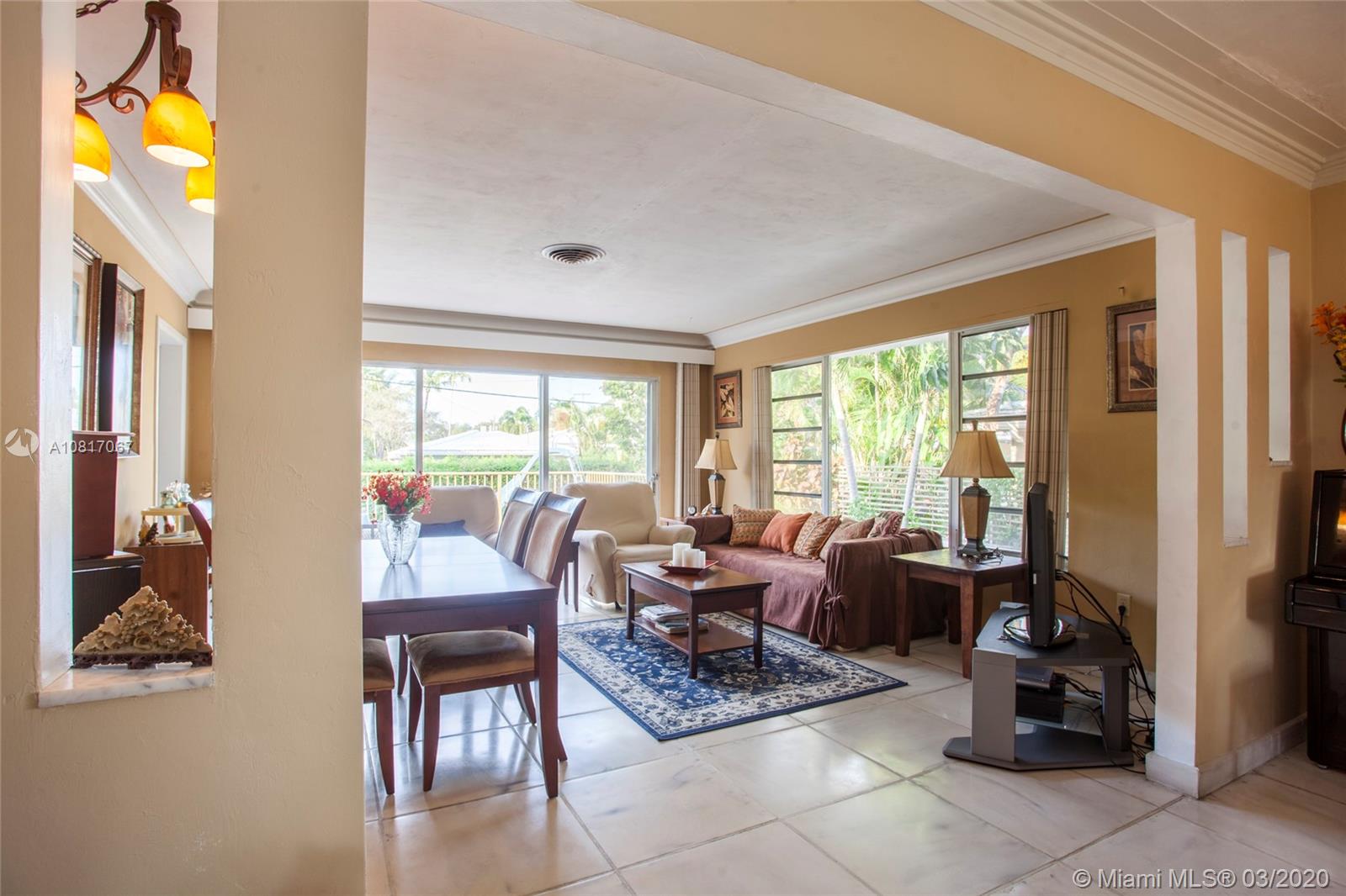This home displays a timeless appeal with authentic mid-century modern styling. Built in 1957, the property is located in an ideal central Miami Shores Village location on a lovely oak tree-lined street. This will allow for a short walk to Downtown Miami Shores to enjoy local artisan shops, restaurants, & cafes. The backyard has large wood deck and pool with green space, & a vintage serving window from the kitchen to the outdoor deck perfect for indoor/outdoor entertaining. The spacious kitchen has an eat-in counter perfect for snacks or a prepping island for cooking. Split level design w hardwood floors upstairs with large format stone tile on the 1st floor. A must see for those seeking the true & authentic mid-century aesthetic! A lovely community to call home.