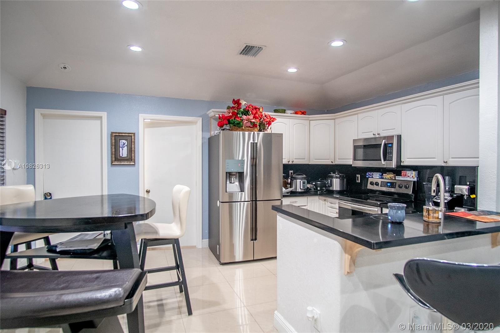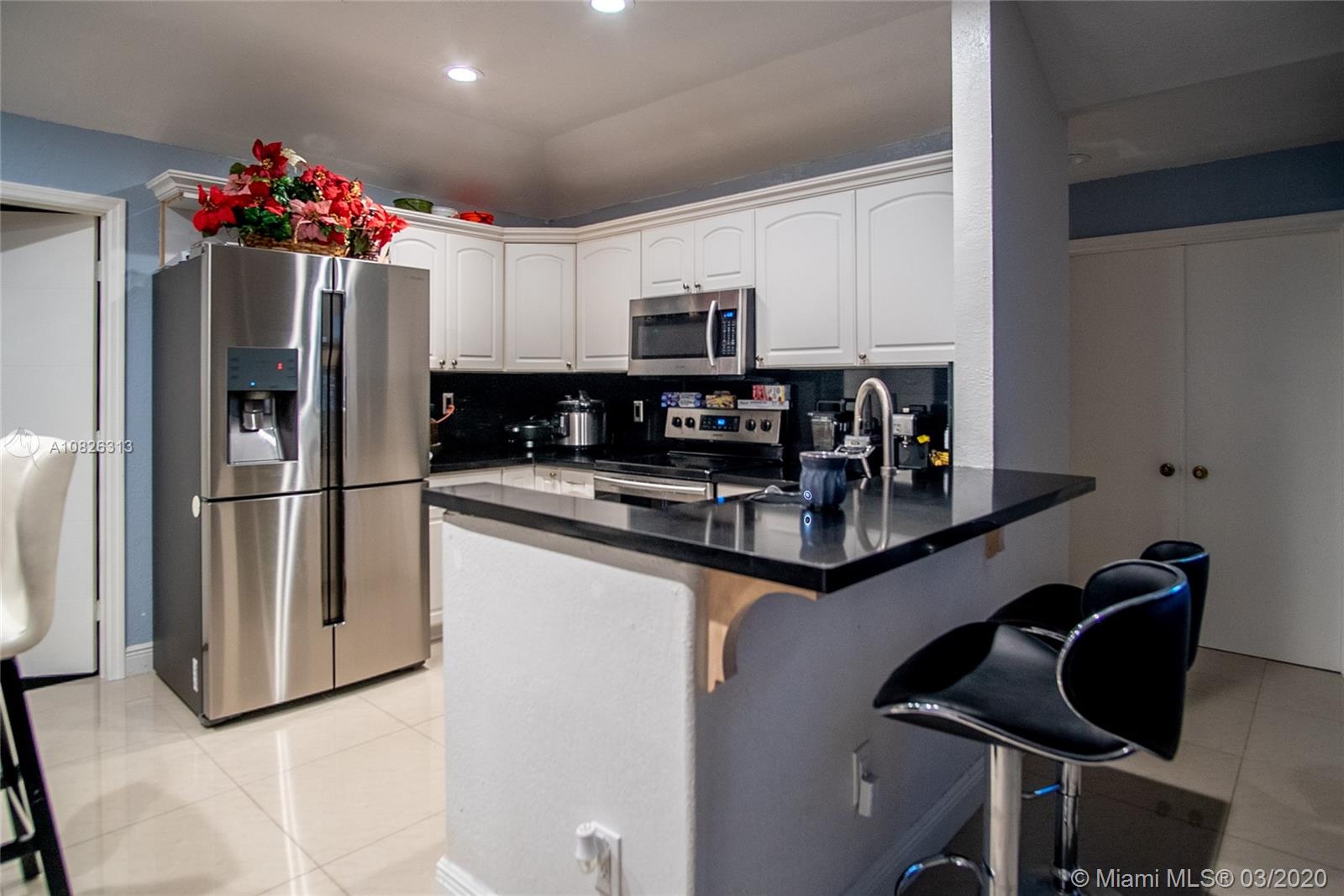 Very well maintained home, with several upgrades through current ownership. Less than one-year-old AC. Open concept kitchen. Originally 2 Beds/2Bath, currently the garage has been converted into a 3rd room that is being used as a bedroom for the kids and a laundry room. Covered terrace. Wide side entrance for vehicle access to the back yard, water well for sprinkles, hurricane shutter throughout the house. Low HOA $100/month includes security 24h, two swimming pools, tennis courts, and a park. Owner Motivated