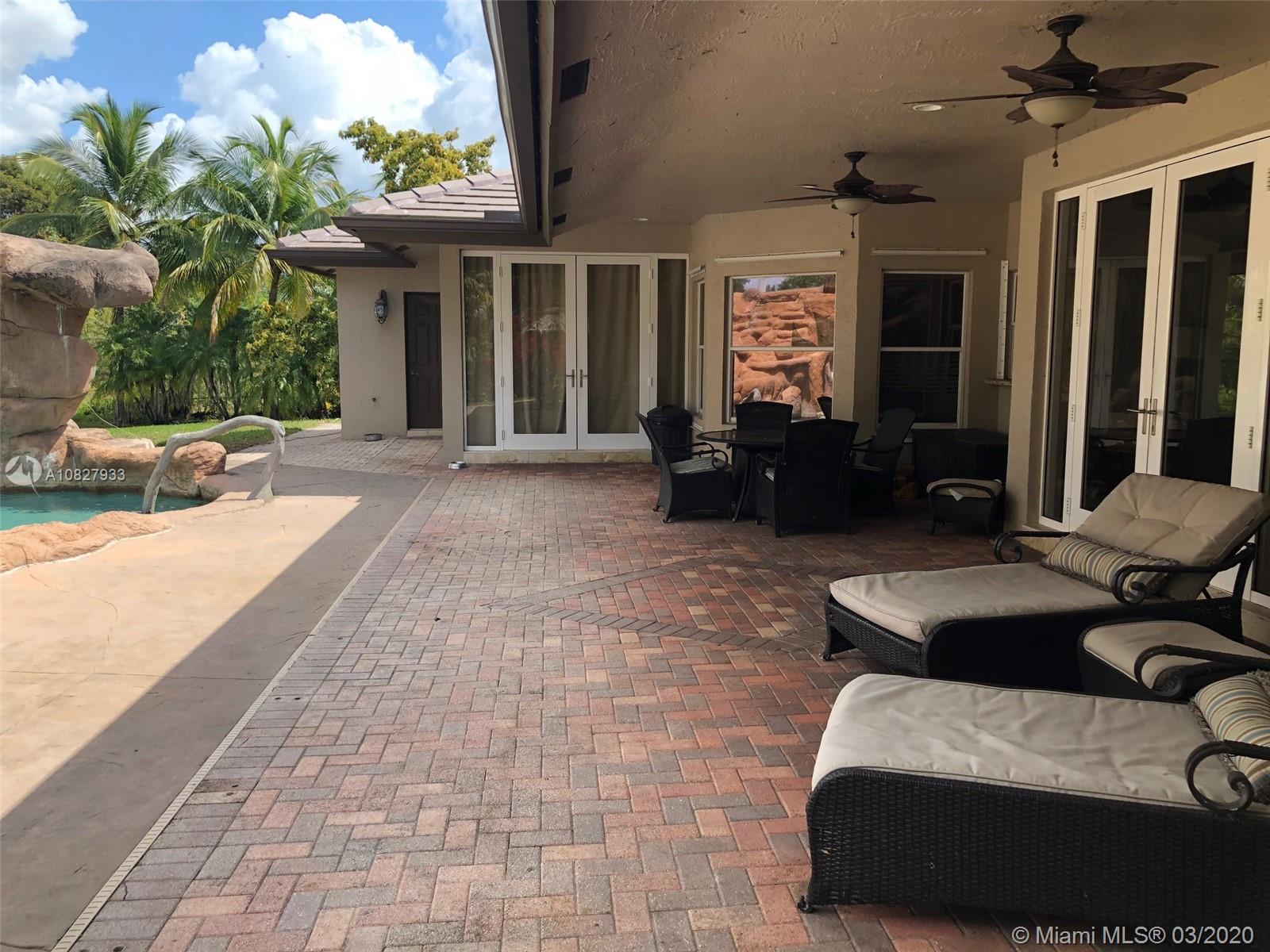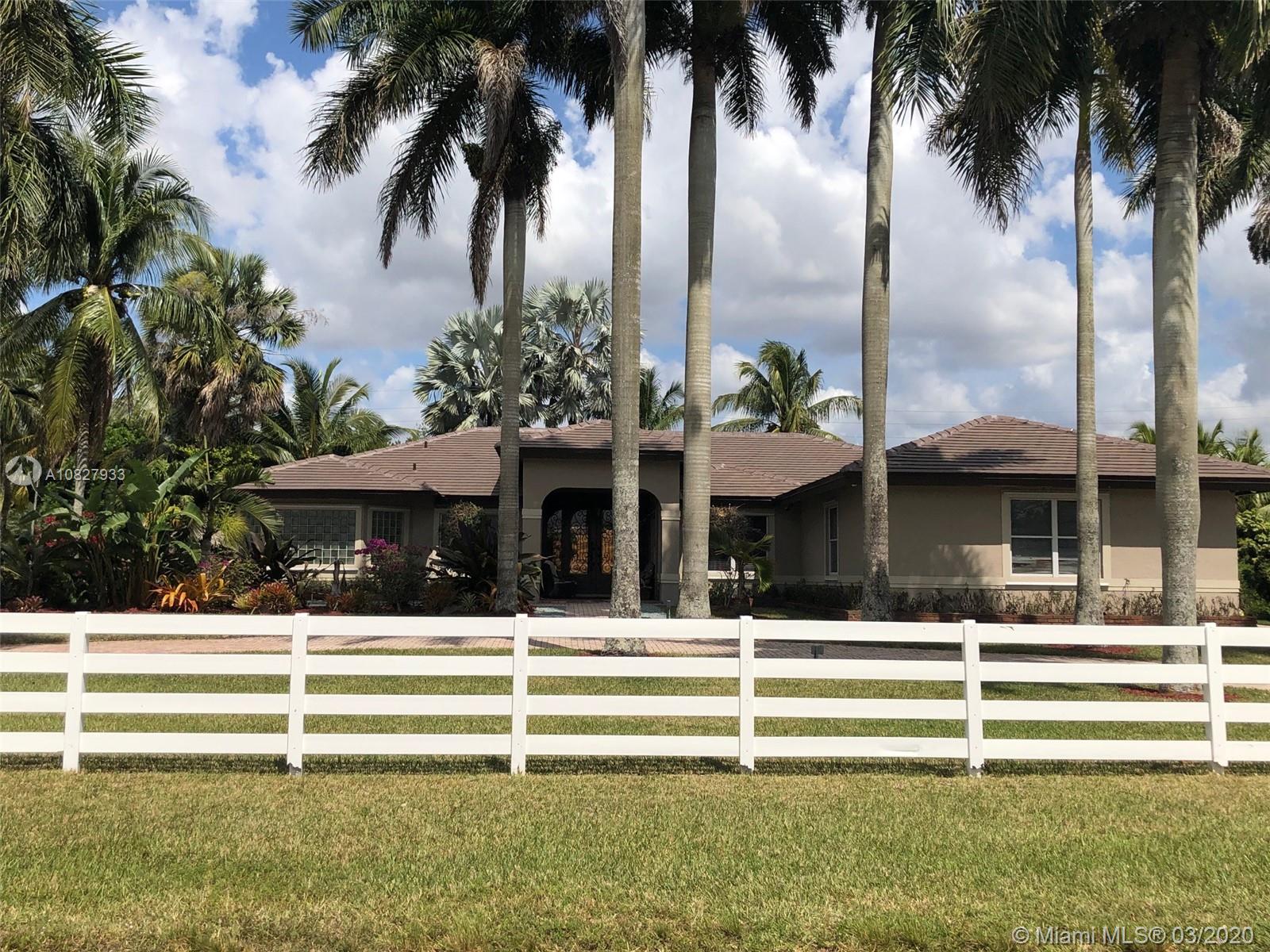 SouthWest Ranches Rolling Oaks Estate Home on over 2.3 acres with over 2800 SQFT this mediterranean style home features 3 bedroom 3 bathroom + Den. Lovely open concept home with split bedroom floor plan, sky high vaulted ceilings.Marble floors through out. Extra Large Spa style master bathroom with Jacuzzi tub and steam shower. All wood custom kitchen cabinets with granite counter tops and stainless steel appliances.Custom designed Iron front doors, electronic gated private entrance. New flat tile roof installed in 2019, AC unit only 1 year old.Tropical paradise yard with designer rock pool, waterfall, & slide. Jack and Jill bathroom as well as Cabana full bath for guest. Over sized two car garage. XL acreage lot with plenty of room for all your needs. A must see home in great location.