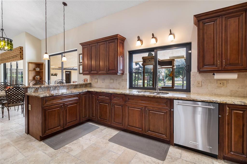 Beautiful four bedroom and 2.5 bath water-view home located in Jacaranda Cay. Gourmet kitchen with gas stove, stainless steel appliances, double oven, water filtration system and granite countertops. Open floor plan with vaulted ceilings along with travertine and hardwood floors throughout the home. Impact windows and doors. Extra loft area can be used as a 5th bedroom or multi-purpose room. Separate temperature controlled 500 bottle wine cellar located in the loft area. Enjoy the water-view on the back patio or on the dock surrounded by lush landscaping.