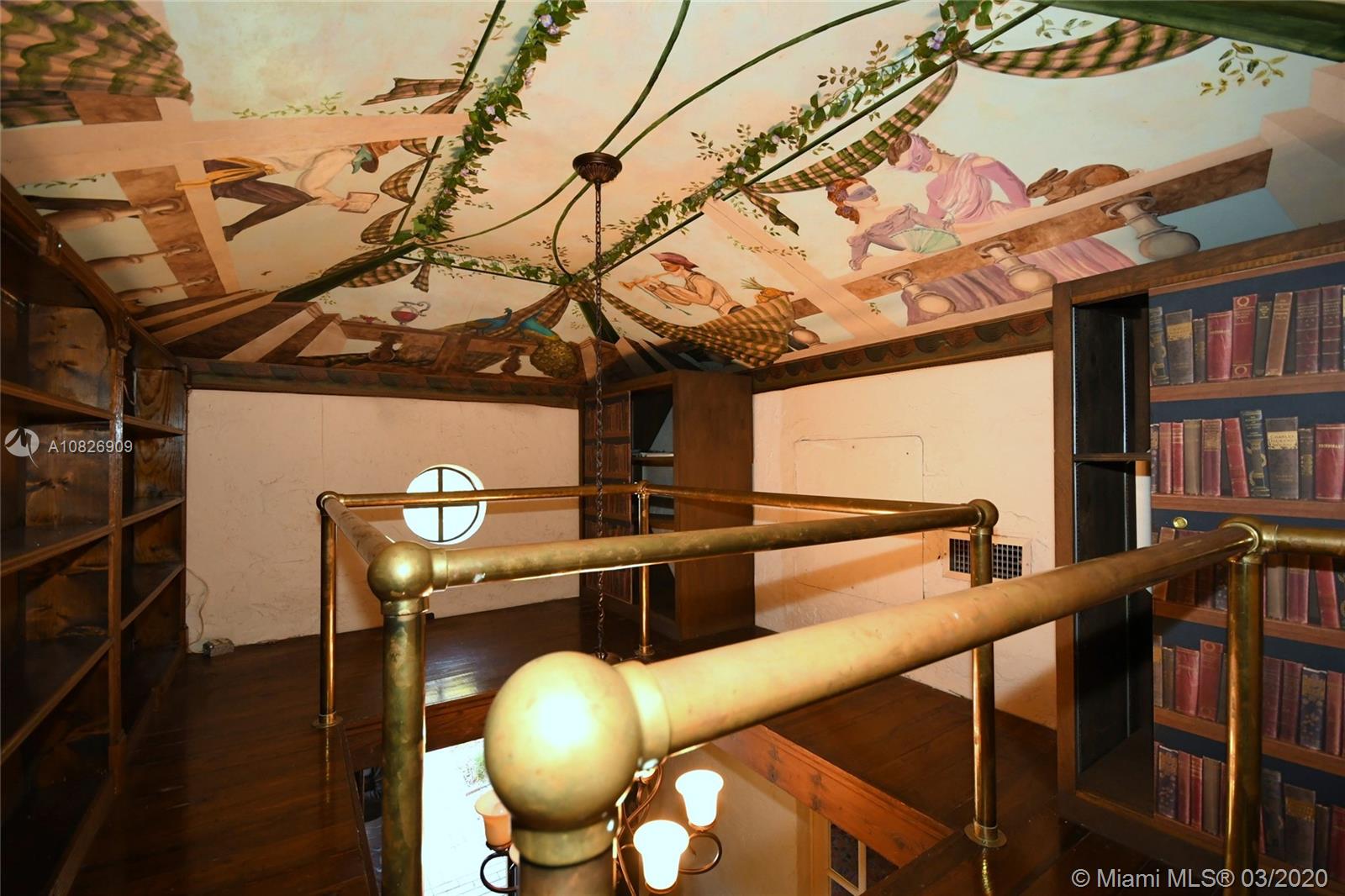 1930 Old Spanish style house full of old-world charm, elegance and ambiance. Located on a tranquil Coral Gables tree-lined street within walking distance to UM. This 2/2 (tax records indicate 3/2) has original tumble stoned floors in the foyer. Loft library with hand-painted mural, formal living room w/ hard wood floors, wood burning fireplace framed by custom made wood book shelves, formal dining room, updated kitchen with stainless steel appliances, large bright family room that leads to a deck and lush tropical garden perfect for entertaining. Covered carport and detached garage which can be turned into an office, art studio or play room. Just perfect if you are just starting off or looking to down-size. 1 Yr. Home warranty. Roof repaired Oct. 2019 w/ 5 yr. warranty.