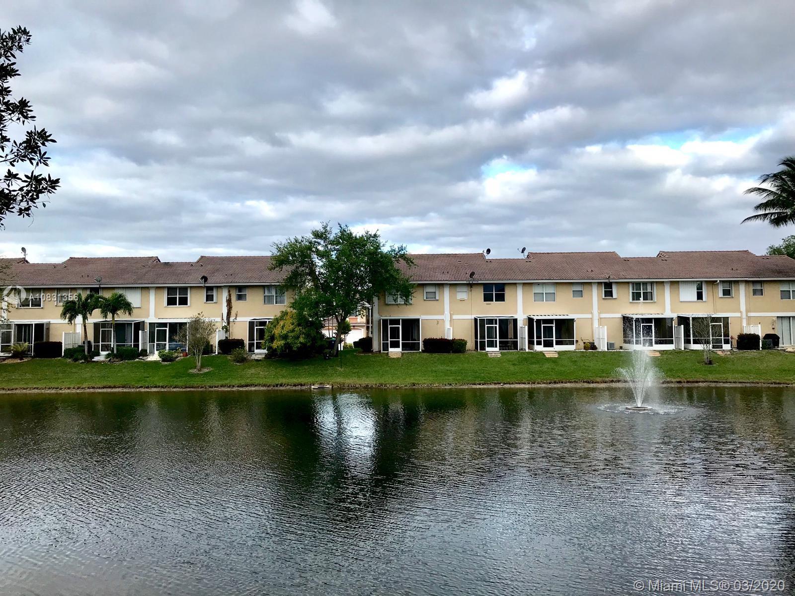 Location!Location!Location! beautiful 3/2 and half bath with garage in a Gated community of Pine Bay. Centrally Located in sunrise close to main highways. This well maintained unit offers a very relaxing lake view. A/C unit change 2 years ago. some of the great features include tile flooring downstairs, laminate wood upstairs, accordion hurricane shutters and Low HOA only $180. Very stable neighborhood.