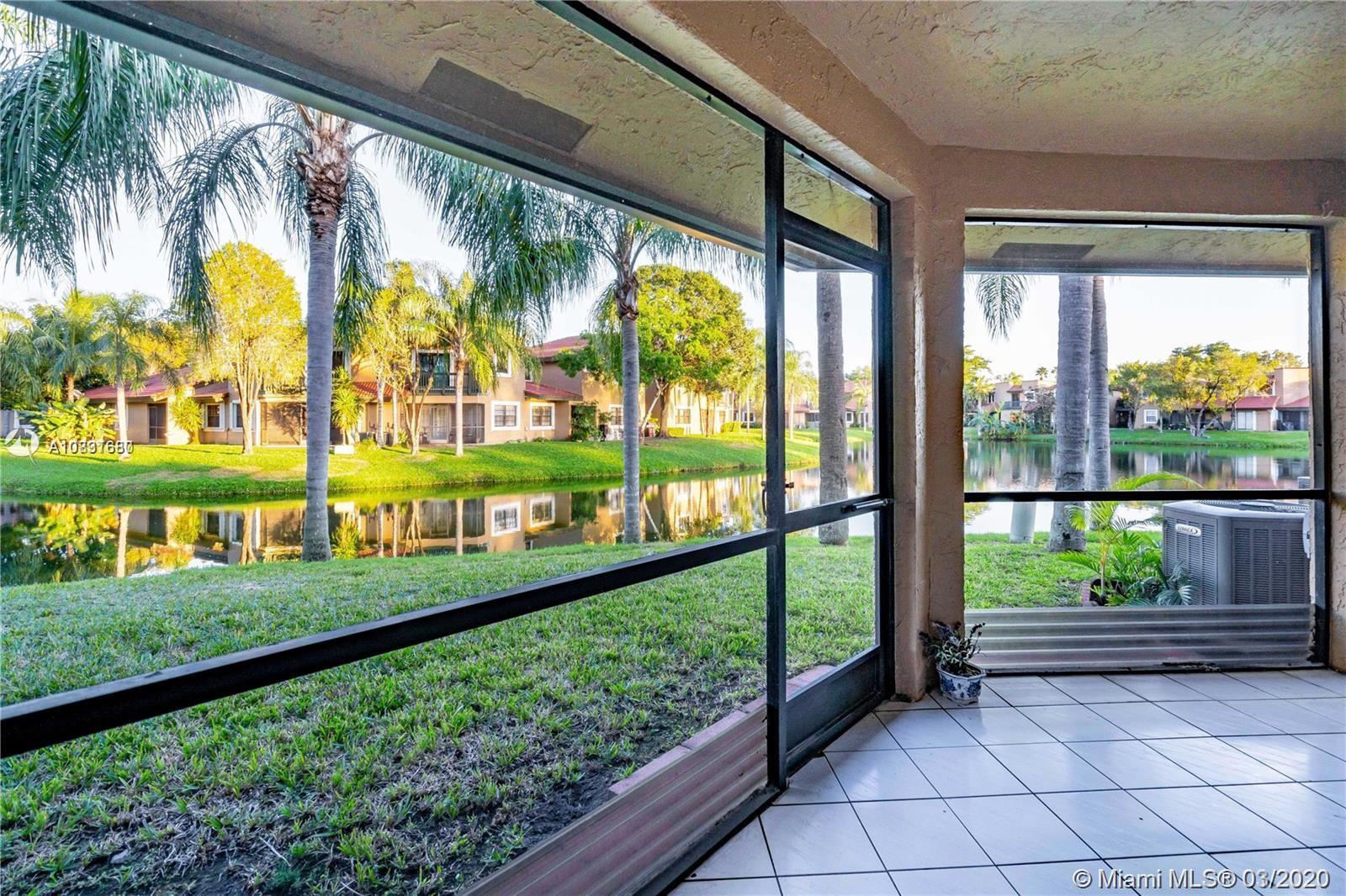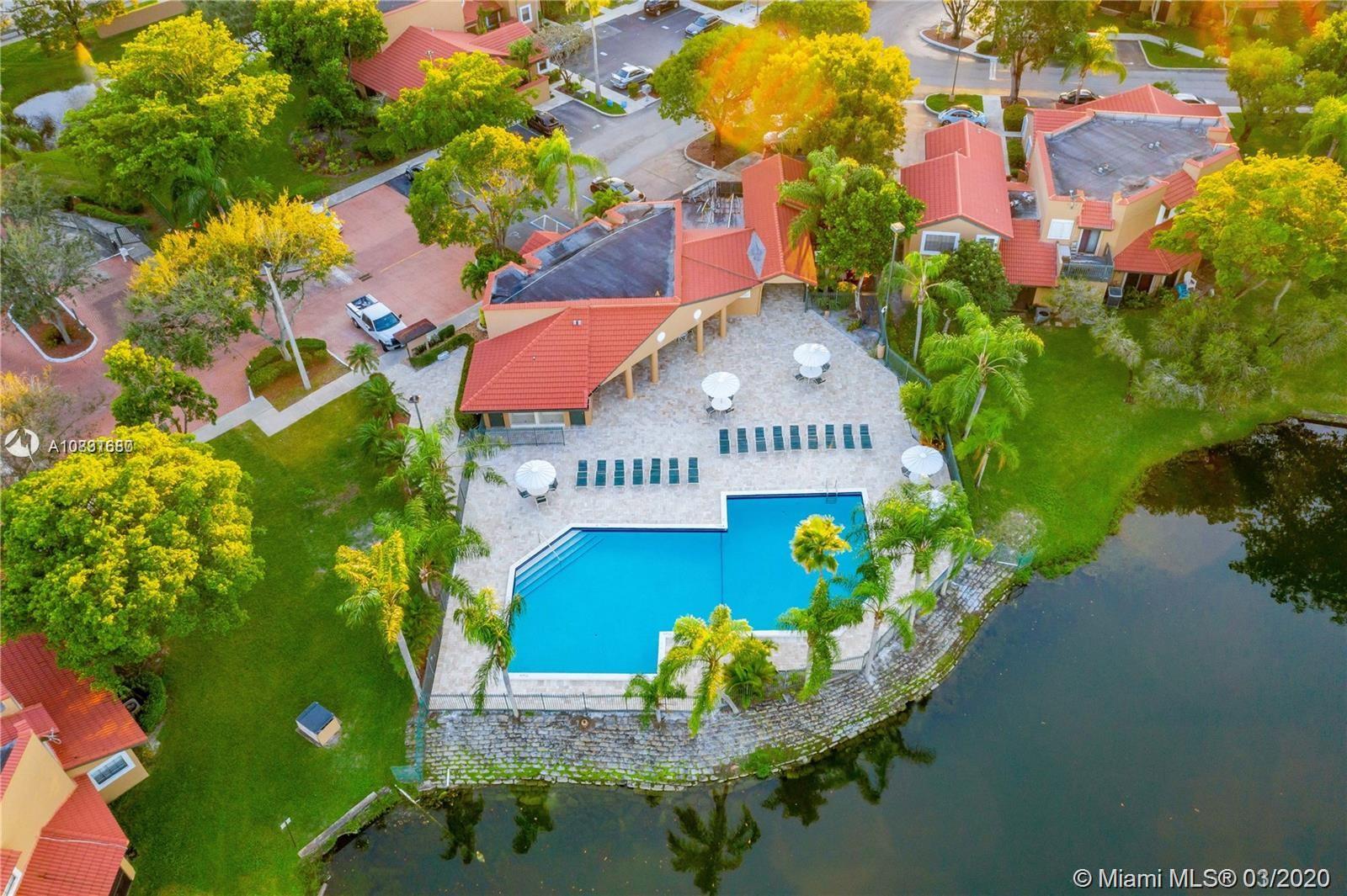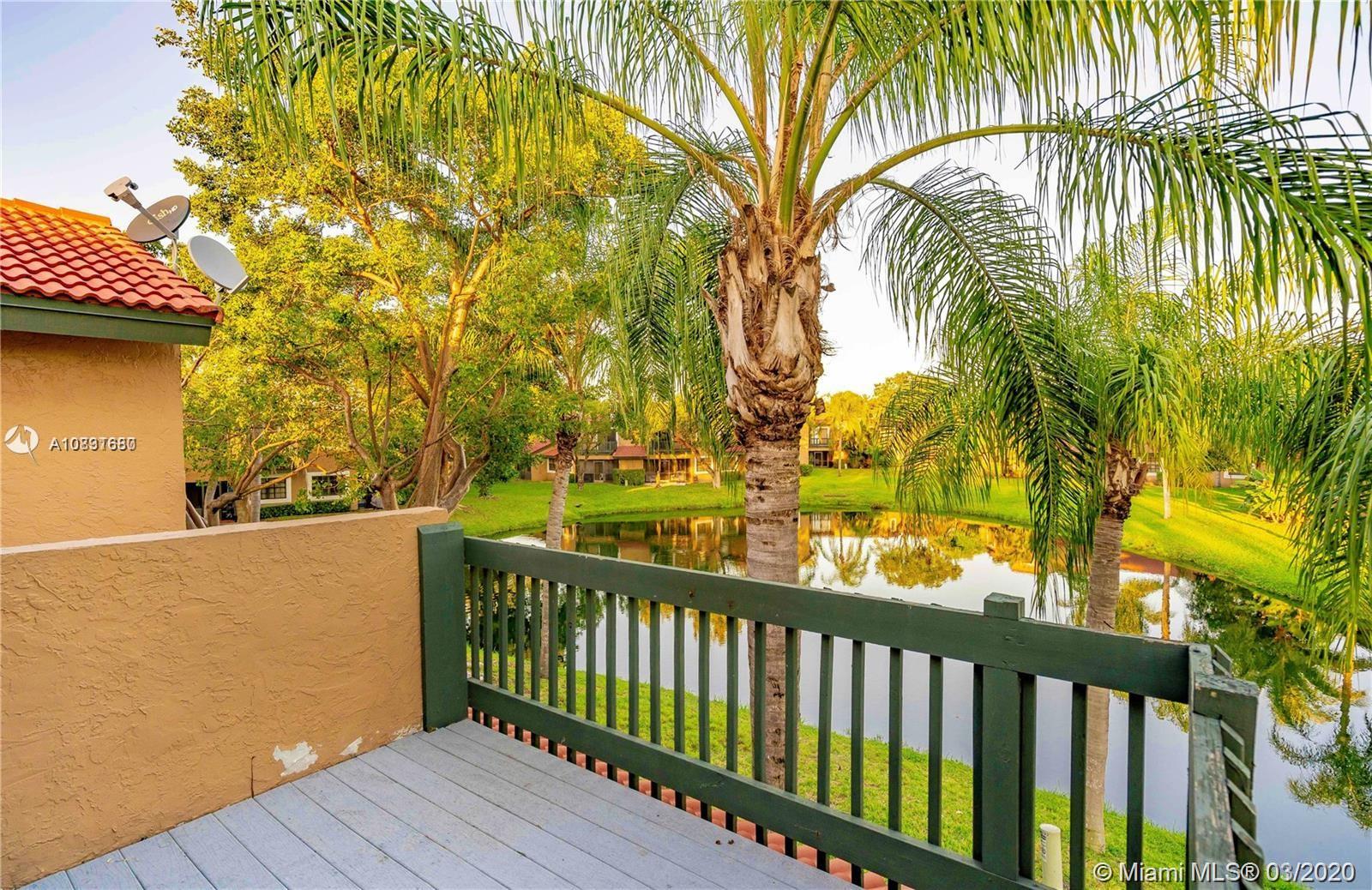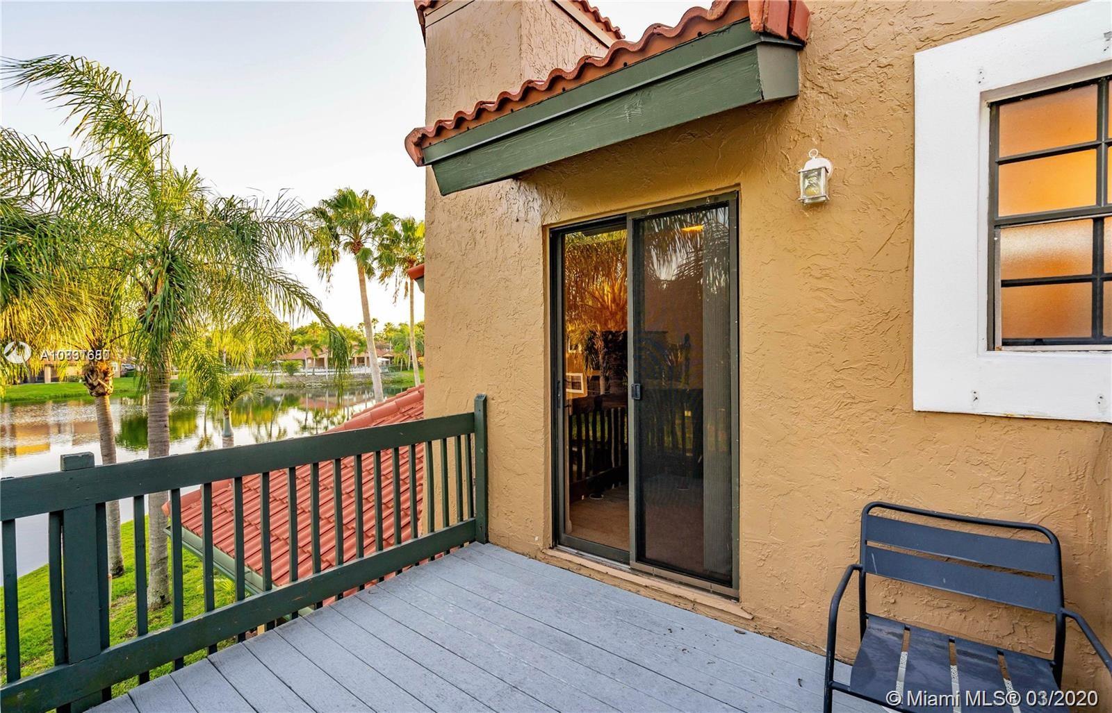 Looking for privacy? Come and see this townhouse with an expansive view of the lake that can be seen from your upstairs balcony and all downstairs. The open design kitchen comes with SS appliances and wood cabinets that provide pulls outs with a large pantry next to a breakfast nook. Pass-thru window from the kitchen to the living area. Open feeling dining/living area with lots of natural light coming in. 3 upgraded bathrooms with wood cabinets, glass showers, and upgraded toilets.Master bedroom with its own balcony and walk-in closet. Covered patio with a storage unit.New efficient top of the line A/C unit (2018)/Water Heater, Roof 2007. Gated community with oversized pool and clubhouse that can be used for parties. 2 parking spaces plus guest. 2 parking spaces assigned.