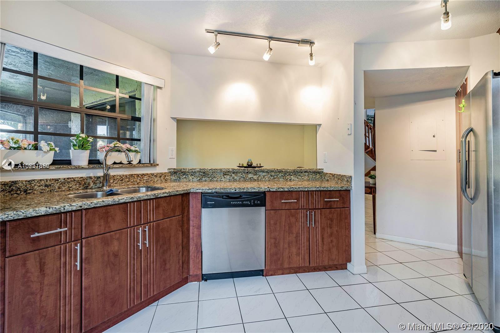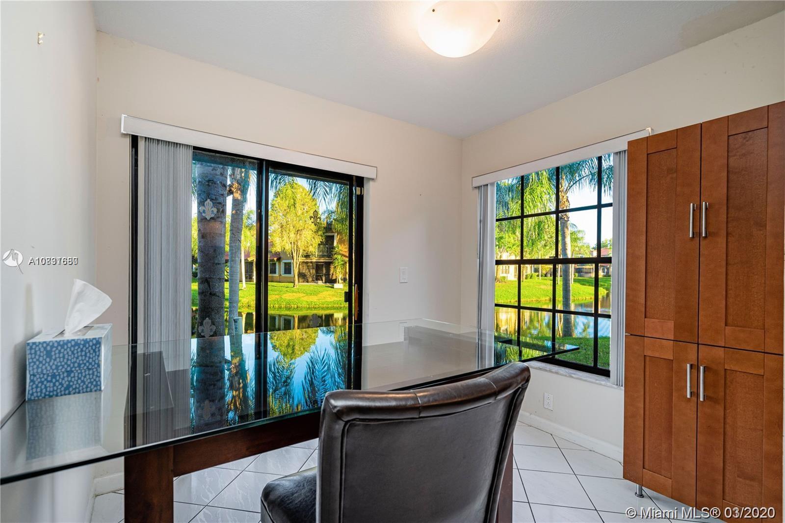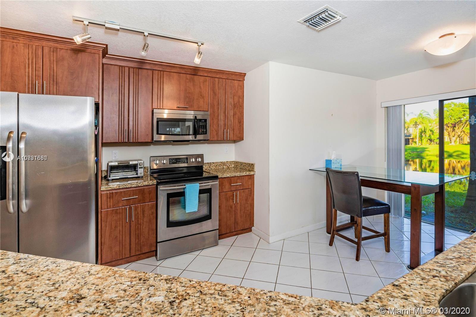 Looking for privacy? Come and see this townhouse with an expansive view of the lake that can be seen from your upstairs balcony and all downstairs. The open design kitchen comes with SS appliances and wood cabinets that provide pulls outs with a large pantry next to a breakfast nook. Pass-thru window from the kitchen to the living area. Open feeling dining/living area with lots of natural light coming in. 3 upgraded bathrooms with wood cabinets, glass showers, and upgraded toilets.Master bedroom with its own balcony and walk-in closet. Covered patio with a storage unit.New efficient top of the line A/C unit (2018)/Water Heater, Roof 2007. Gated community with oversized pool and clubhouse that can be used for parties. 2 parking spaces plus guest. 2 parking spaces assigned.