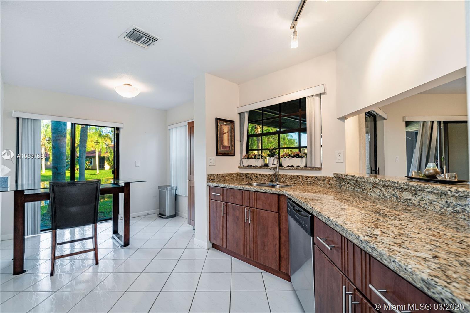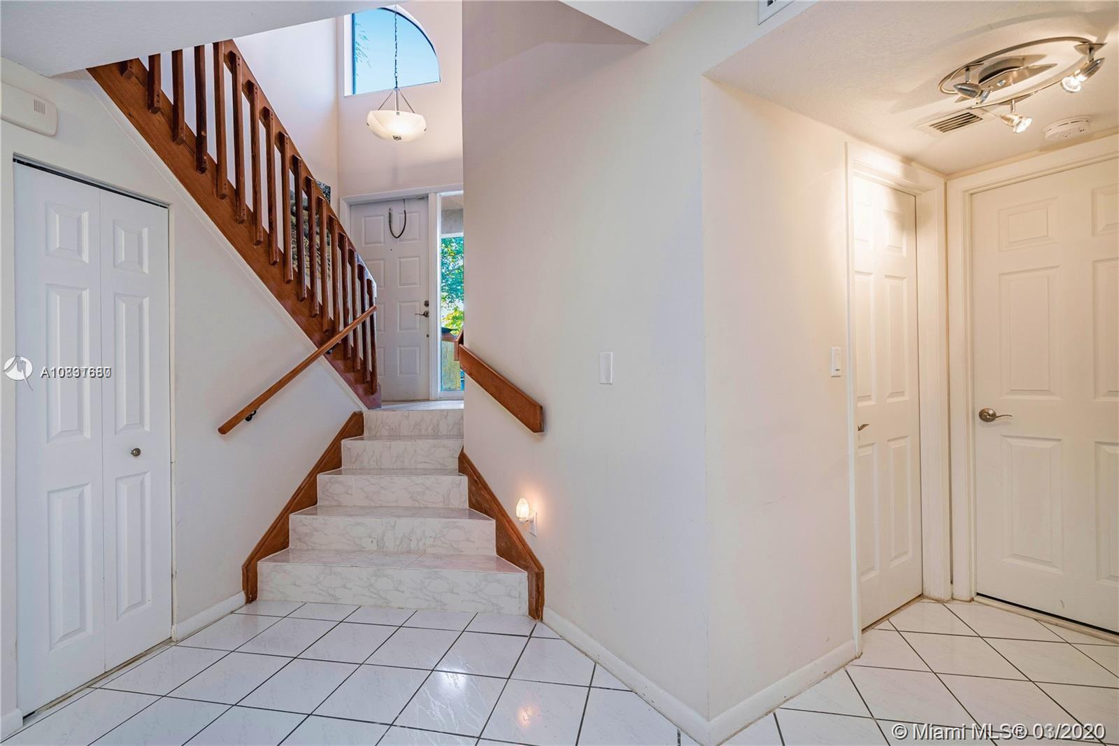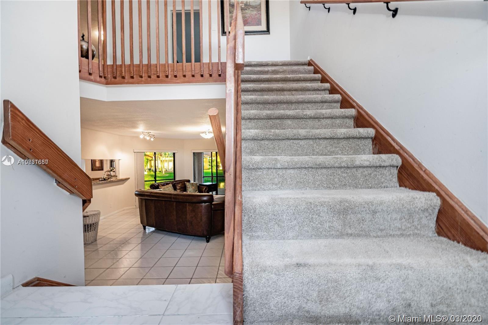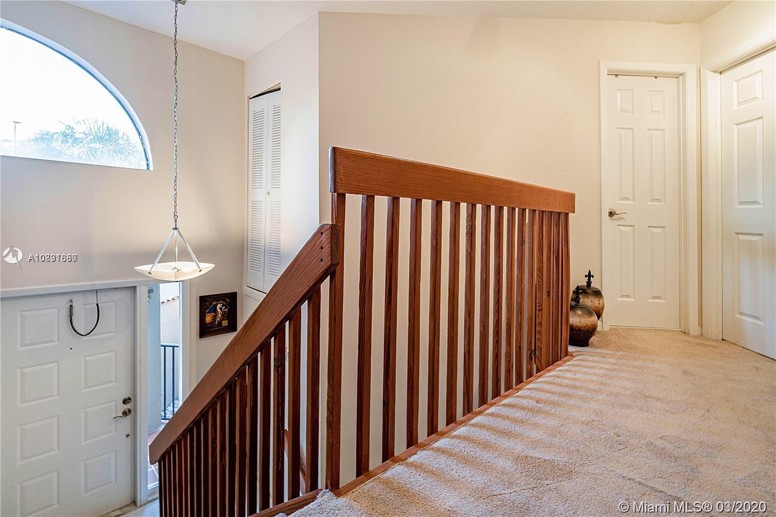 Looking for privacy? Come and see this townhouse with an expansive view of the lake that can be seen from your upstairs balcony and all downstairs. The open design kitchen comes with SS appliances and wood cabinets that provide pulls outs with a large pantry next to a breakfast nook. Pass-thru window from the kitchen to the living area. Open feeling dining/living area with lots of natural light coming in. 3 upgraded bathrooms with wood cabinets, glass showers, and upgraded toilets.Master bedroom with its own balcony and walk-in closet. Covered patio with a storage unit.New efficient top of the line A/C unit (2018)/Water Heater, Roof 2007. Gated community with oversized pool and clubhouse that can be used for parties. 2 parking spaces plus guest. 2 parking spaces assigned.