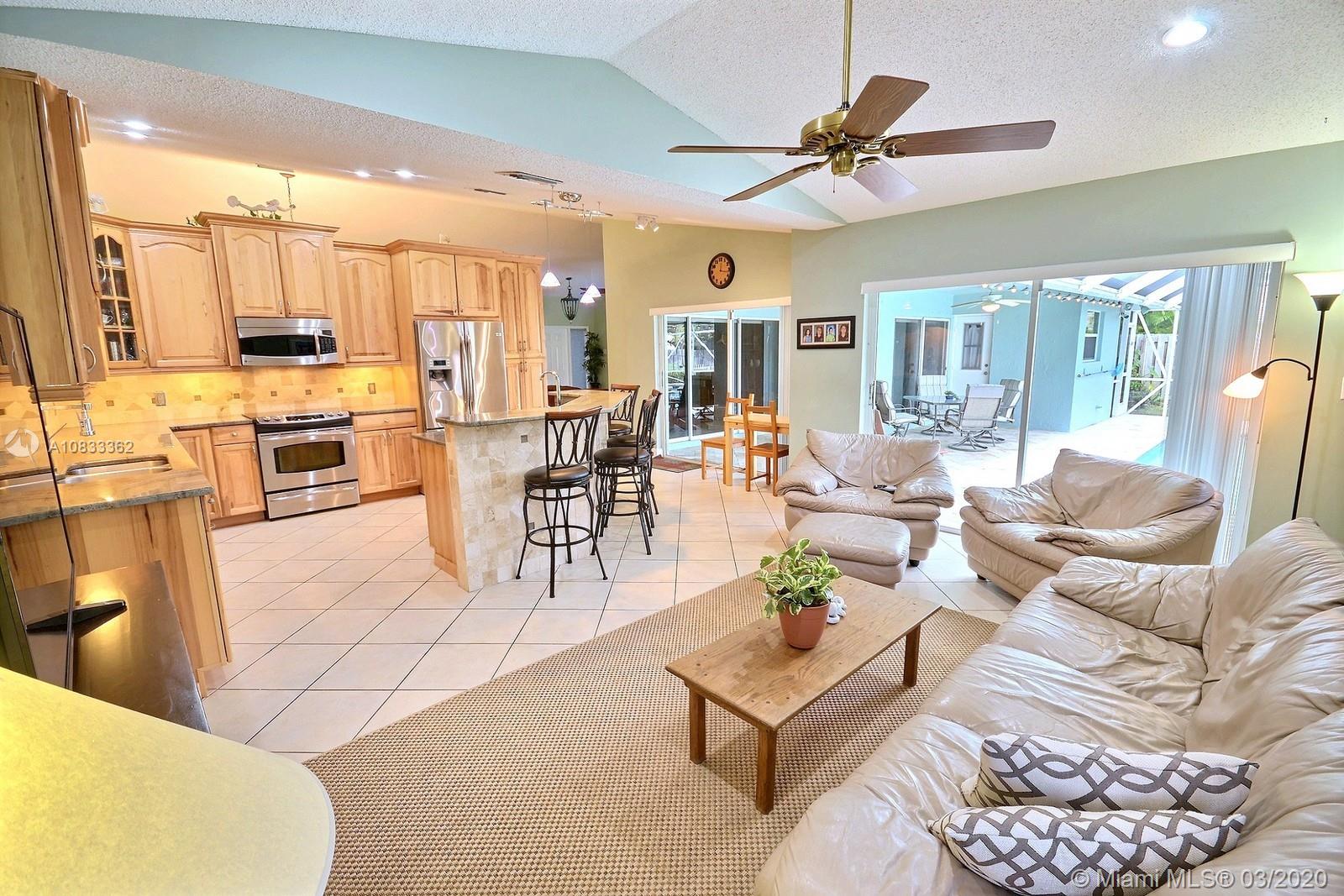 GORGEOUS POOL AND WATERFRONT HOME IN COOPER'S POINT FEATURES: UPDATED KITCHEN WITH TALL WOOD CABINETRY WITH GLASS ACCENTS, GRANITE COUNTERS, ISLAND WITH SECOND SINK, STAINLESS STEEL APPLIANCES, AND A VIEW OF THE SPECTACULAR WATERFRONT POOL AREA. SPACIOUS LIVING AREAS WITH VAULTED CEILINGS, TILE AND PERGO-LIKE FLOORING, RECESSED LIGHTING, CEILING FANS, & TASTEFUL DECOR. LARGE MASTER SUITE WITH HIGH CEILINGS, MASTER BATH WITH DOUBLE SINKS, SEPARATE TUB & SHOWER. CHARMING CURB APPEAL WITH LUSH LANDSCAPING AND TRELLIS ENTRY AND SCREENED-IN PORCH. SERENE BACKYARD WITH BRILLIANT POOL, RELAXING SPA IN SCREENED IN PATIO WITH BEAUTIFUL WATER VIEWS. LAUNDRY ROOM, 2 CAR GARAGE, NEW ROOF 2014, WATER HEATER 2019. ROMANTIC TREE-LINED STREET IN COOPER CITY'S DESIRABLE SCHOOL DISTRICT.