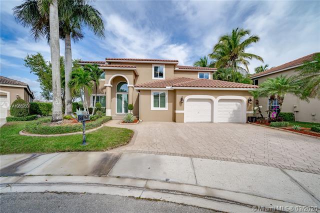 Exquisite home in Weston Hills. Tastefully remodeled. Featuring New Roof New Impact doors and windows, modern stair case, stone wall accents, all new interior doors, walking closets, oversized two car garage with driveway that fits 4 cars, pool with salt chlorination system, cabana bath and a Generator for your peace of mind. Beautiful large backyard, with stunning serene lake view and a balcony perfect to enjoy every sunset. Located on a cul-de-sac. making this the perfect home for a family. Only a two minute walk to the park and great neighbors. Gated community with security patrols. The Country Club offers two of the best golf courses in Broward County and other amenities including, tennis, dining, pool, recreation.