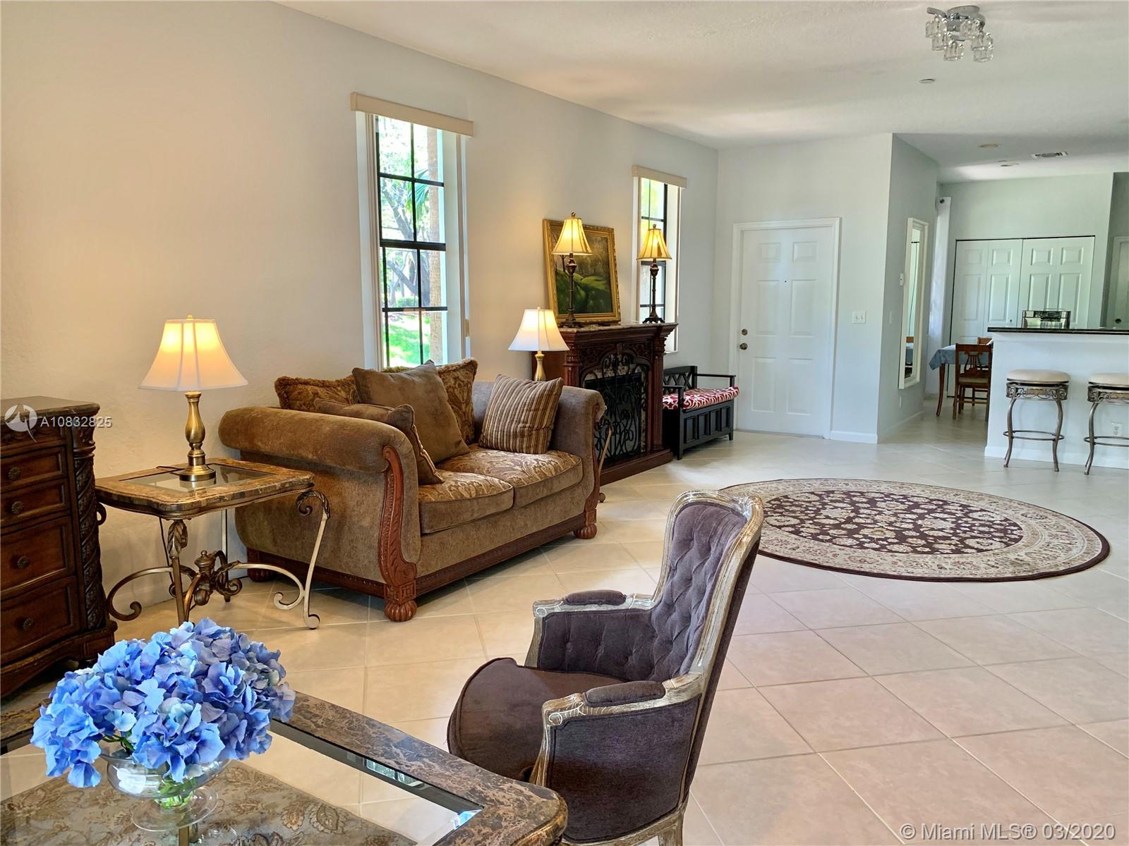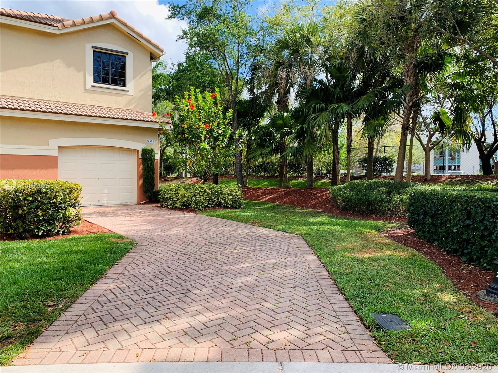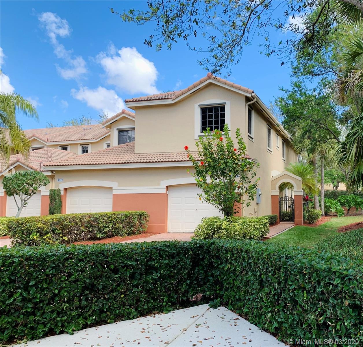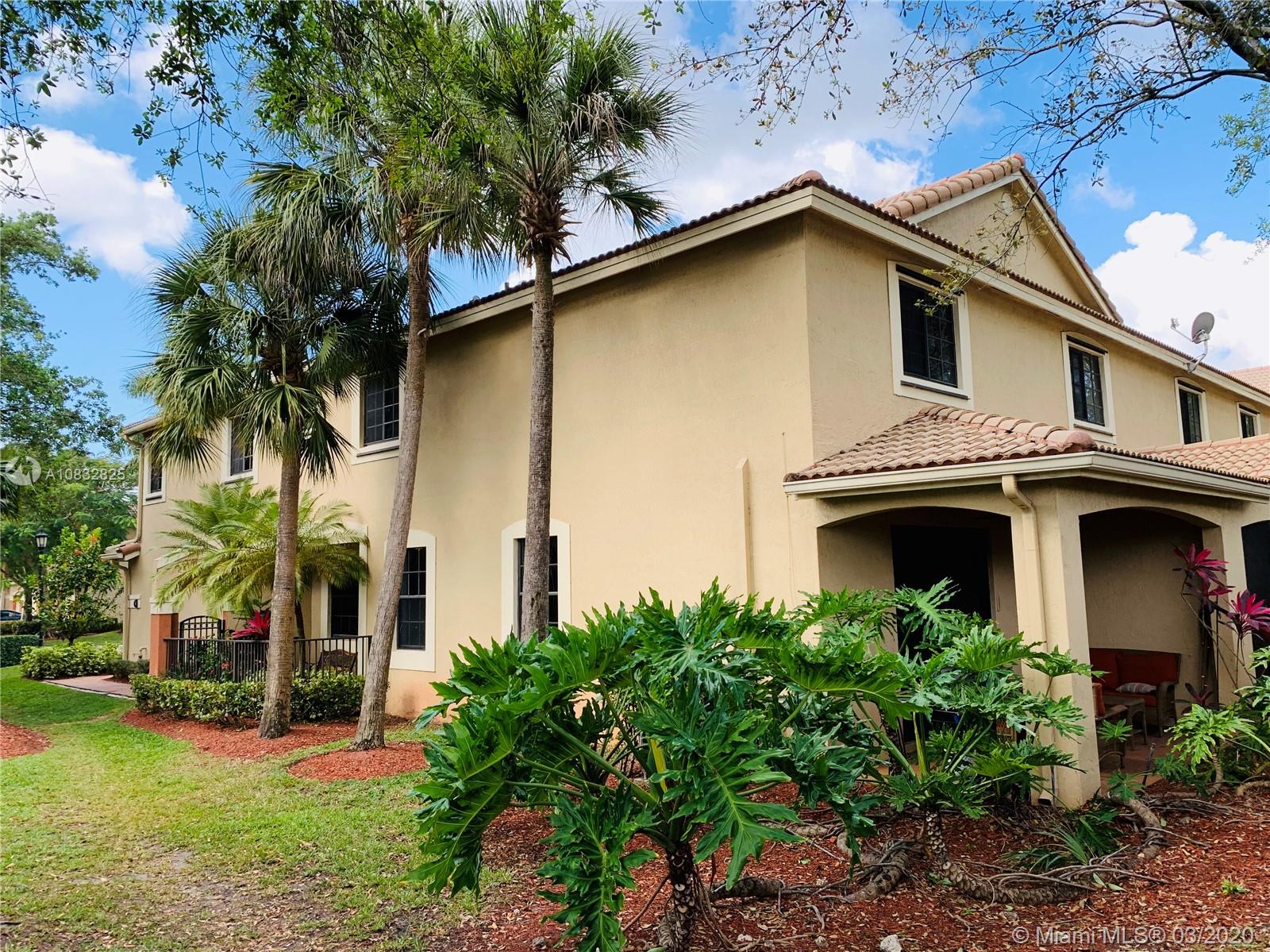 Check out this gem! This spacious corner unit with no neighbors behind and a private courtyard entry. Feels like a single family home! The entire home has been updated and repainted. Almost new kitchen appliances, water heater 2017, AC 2016, washer & dryer are about 5 years old. There is a two-car driveway and guest parking next to it. Spacious 1.5 car garage has an overhead shelving and plenty of additional room for storage. Low maintenance includes landscaping, community pool, 24-hour guard on patrol, children playground, common areas. Walking distance to A-rated schools (Cypress Bay HS, Falcon Cove MS, Manatee Bay ES) and Weston Library with a beautiful park.
