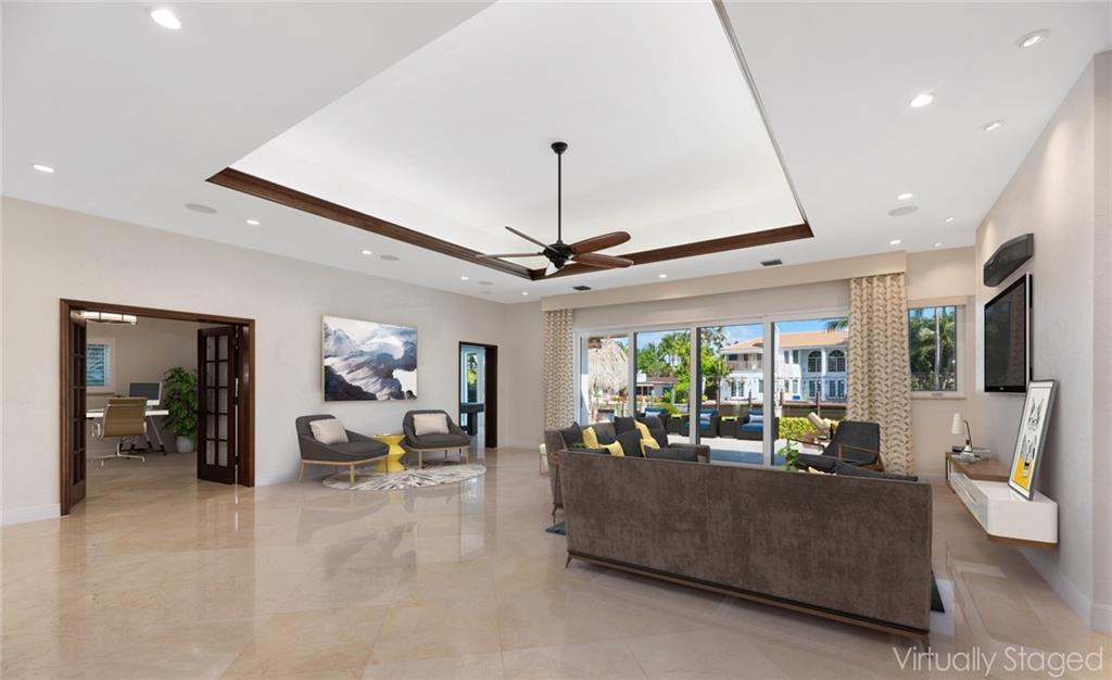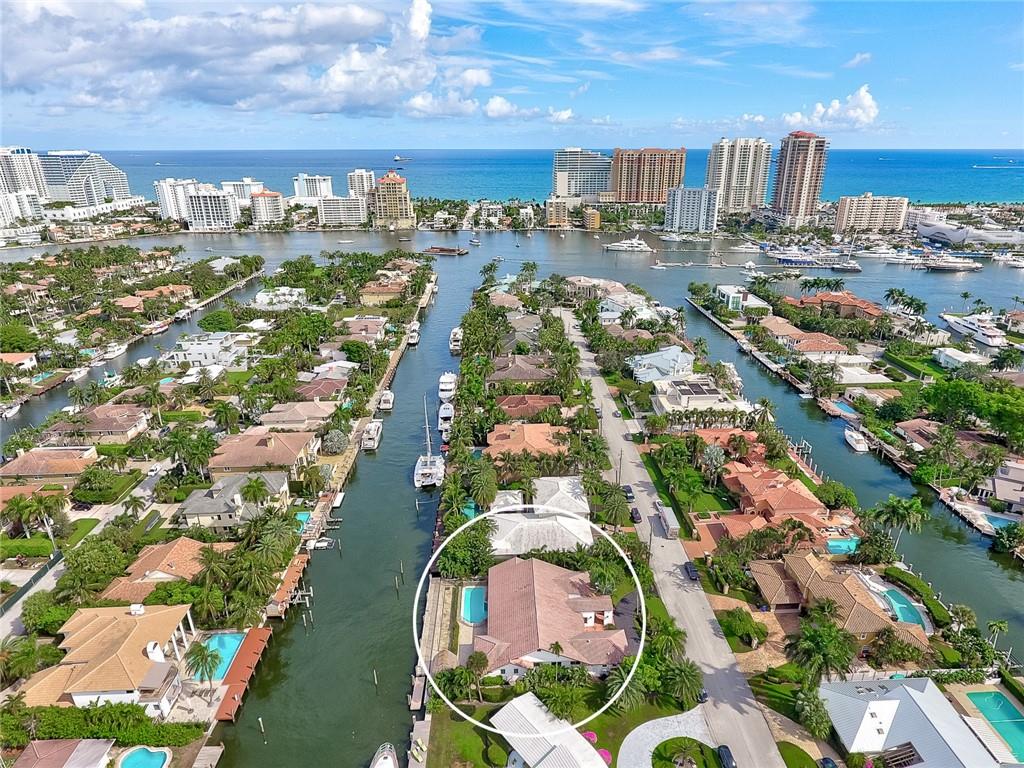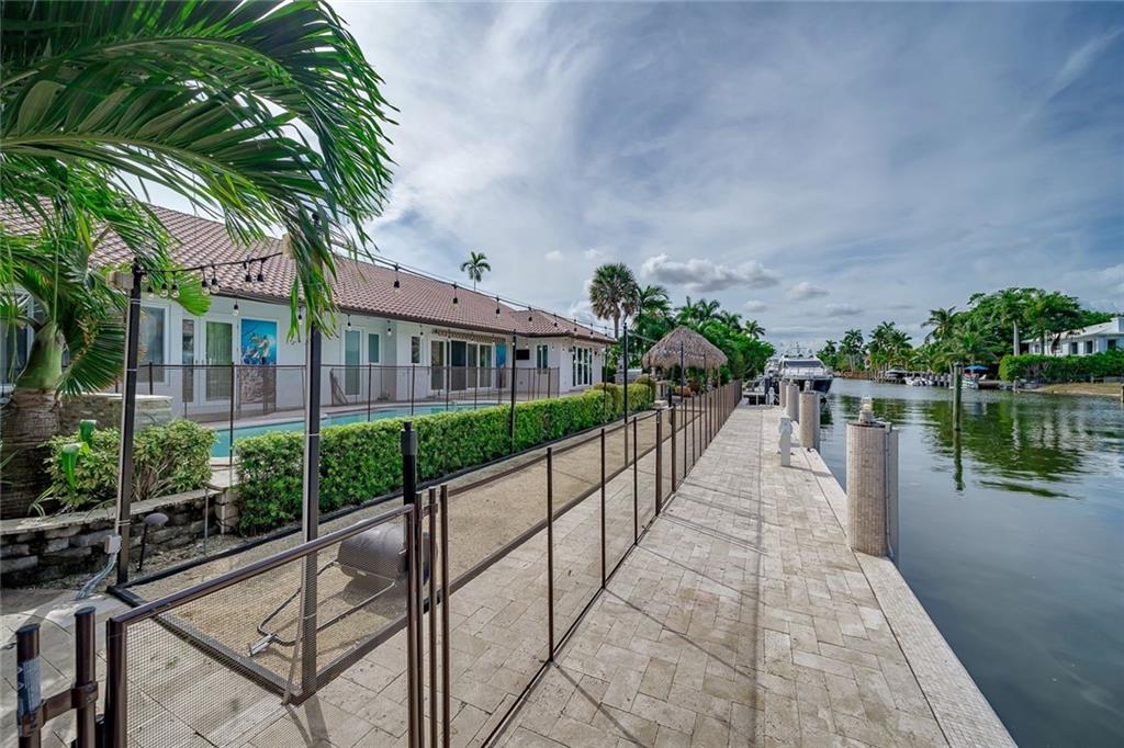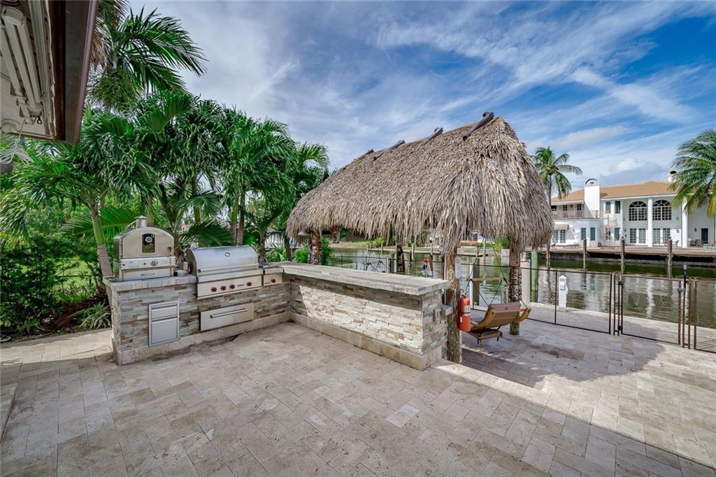 LAND VALUE OPPORTUNITY! Situated on 100'± of ocean access, water frontage in the desirable, security patrolled and gated Seven Isles community of Las Olas Isles. Owner purchased in 2016 for $2.145M and added nearly $500,000 in renovations including impact doors/windows, with 4-panel sliding door to the outdoor space, Wolf and Subzero appliances, electrical, new baths, flooring, and motorized electric shades/plantation shutters throughout. Enjoy the South Florida lifestyle, around the heated pool, Wolf summer kitchen with pizza oven and your own private Tiki hut equipped with ice maker and beverage cooler, play Bocci Ball on the court waterside. Floating dock & 2ft dredge. Great proximity to the beaches, shopping and dining Las Olas Boulevard. Chandelier in foyer not included.