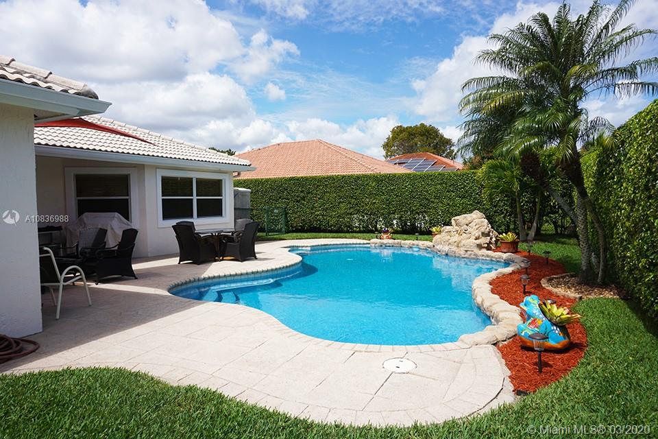 Beautiful 4 bedroom, 2 bath pool home on an oversized corner lot. Enjoy the stunning open design floor plan with many upgrades. Open kitchen and family room, tile floors throughout living, family and kitchen areas, bathrooms renovated with quartz countertops and tile, large master suite with 2 walk in closets and separate custom shower and tub, double vanity sinks, closet built-ins, newly painted, nest AC control, epoxy garage floor, tankless water heater and so much more. Laminate wood in 2 bedrooms and carpet in master and 4th bedroom. Enjoy entertaining in your pool with a relaxing waterfall, grill from your covered patio, and have fun with lots of play space around your home. Conveniently located in Parkwood Kensington near transportation, beaches, shopping and schools. Must see.