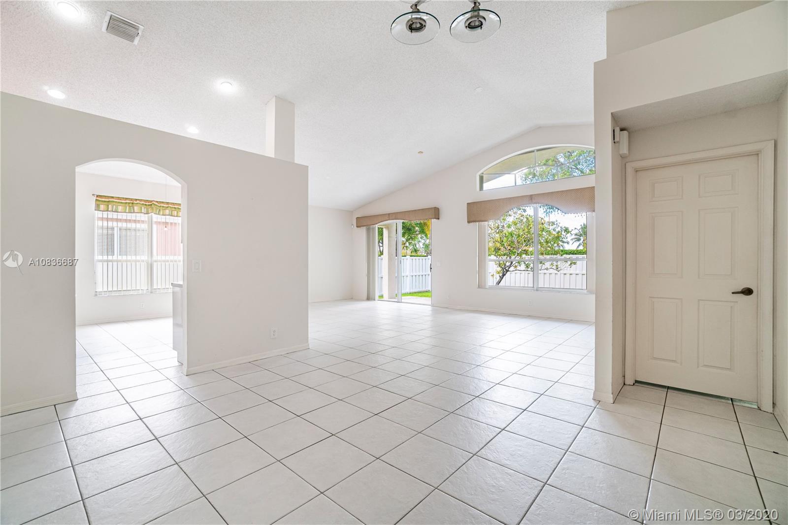 Beautiful 3 bedroom 2 and a half bathroom home located in the highly desirable community of Pembroke Falls. Tile throughout the entire home. No back neighbor makes the home tranquil and private. Very close to the community clubhouse, restaurants, dining, and entertainment. Accordion shutters, fenced backyard, and stainless steel appliances. Your new home awaits!