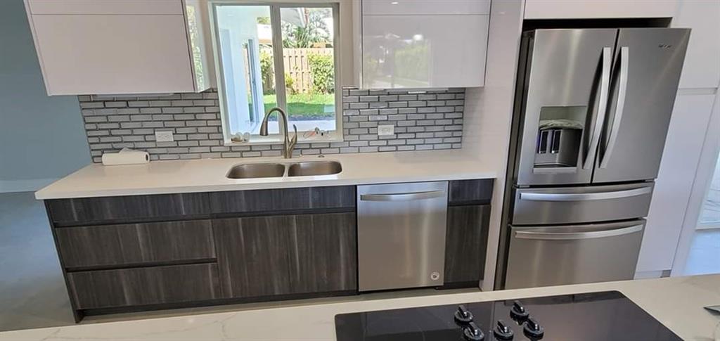 COMPLETELY REMODELED FROM TOP TO BELOW BOTTOM. 4 bedrooms, 3 bathrooms, pool home, with 2 car garage plus laundry room, formal dinning room and open kitchen with huge 14ft cooking island. 24 x 48 European porcelain tile throughout. Stunning master walk in shower with 2 rain heads 2 shower heads and 2 handheld showers. New tile Roof, new impact windows, new sewer pipes, new electrical panel and wiring, new plumbing, new insulation, new drywall, new kitchen, new bathrooms, new driveway, new landscaping. 3rd bath is a cabana bath. Completely fenced. Circular driveway. 4 sliding impact glass doors leading out to private pool area. This house has it all for any buyer. Walk in master closet. Quartz counters. Kohler toilets. Kohler and Moen Bathroom fixtures. This house is hard to beat