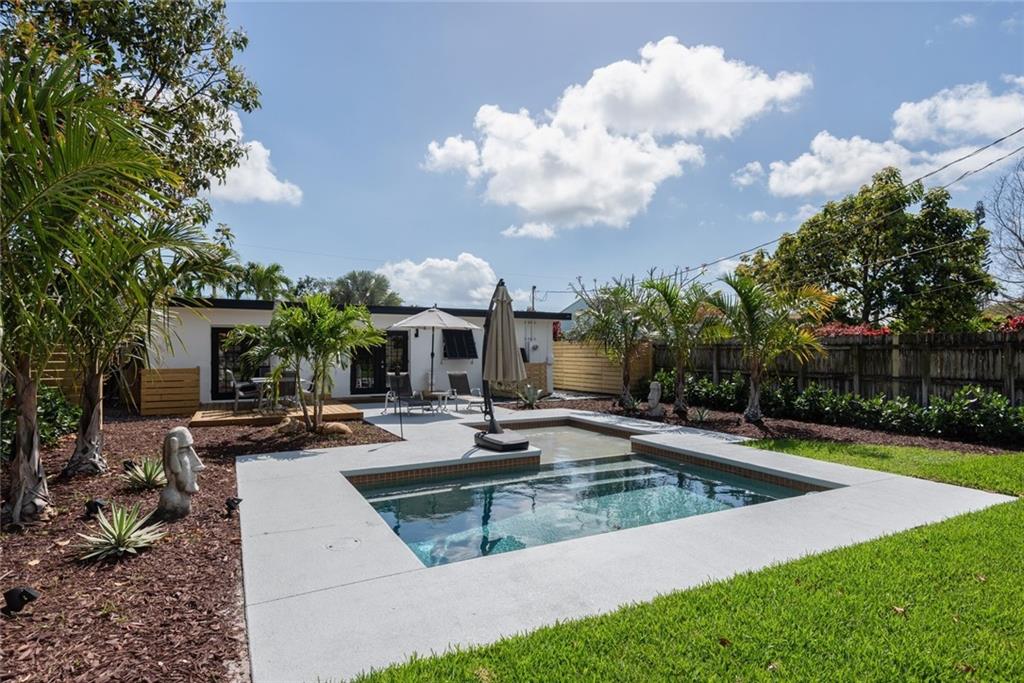 This adorable 2/1 pool home has a brand new roof, beautiful back yard and is very close to the artsy NE 13th Street district. Only minutes to Wilton Manors. Available furnished with stained concrete floors and French doors which lead out to a new patio and a lovely landscaped, private pool area. Good parking with a carport and driveway.