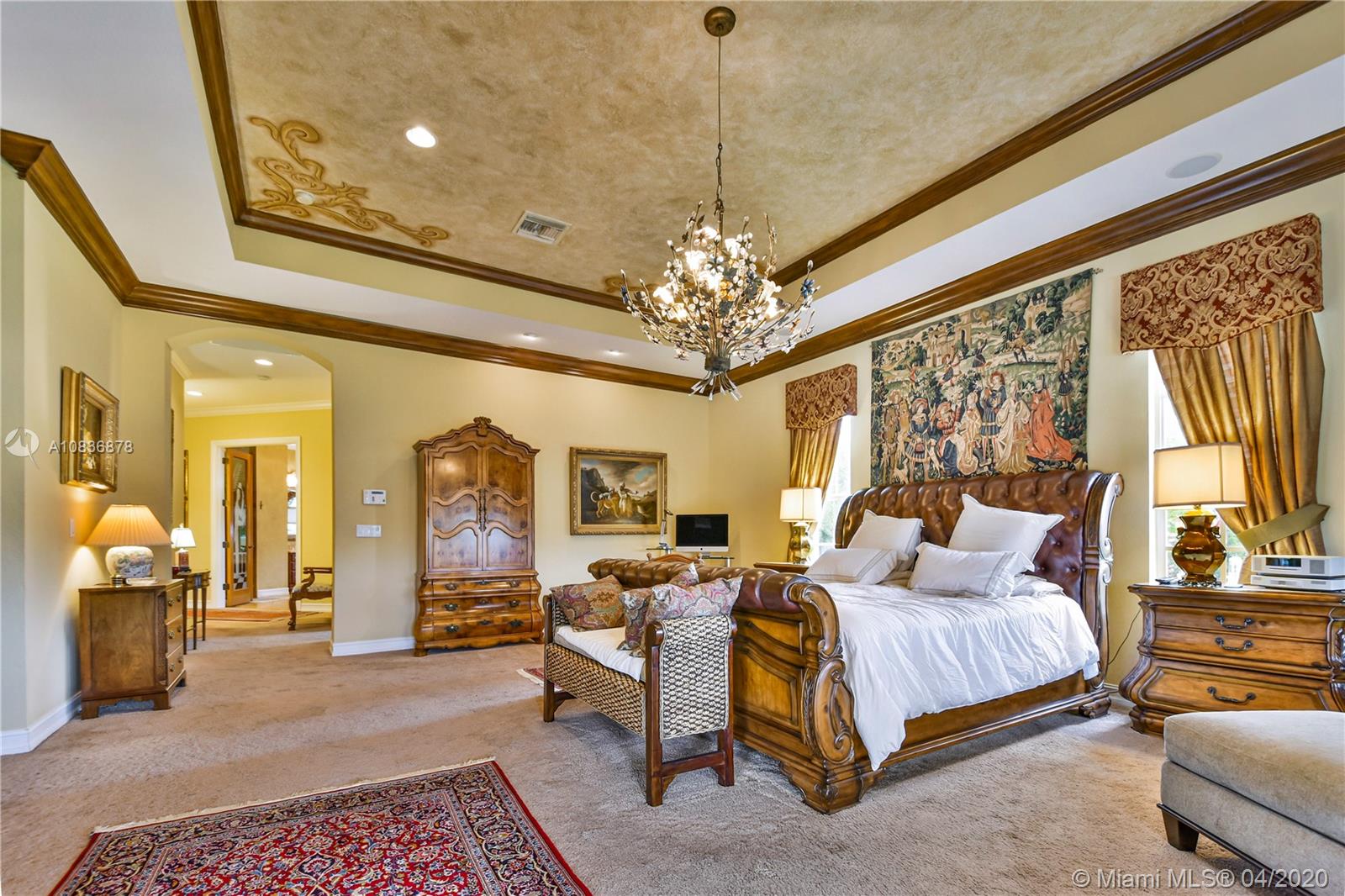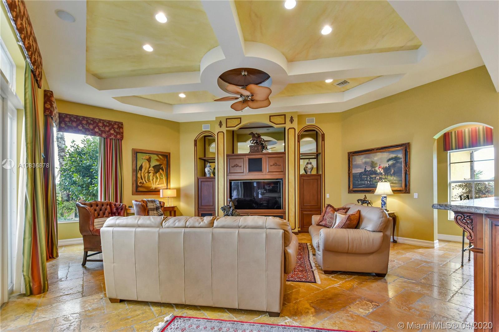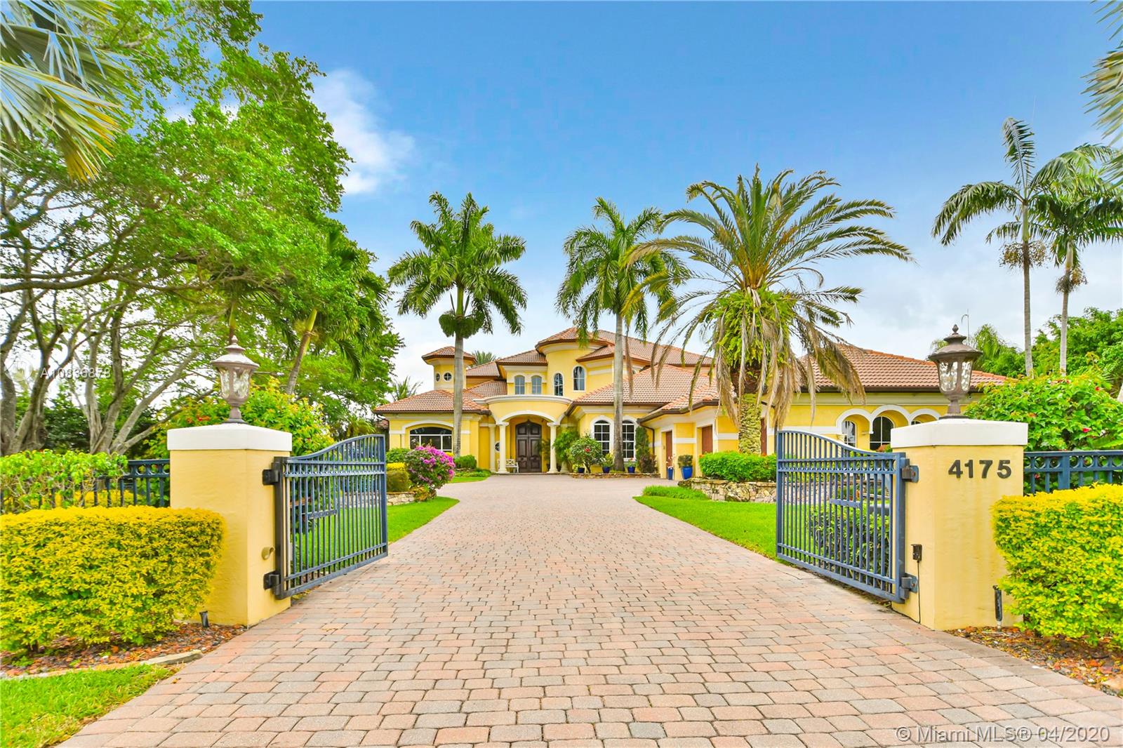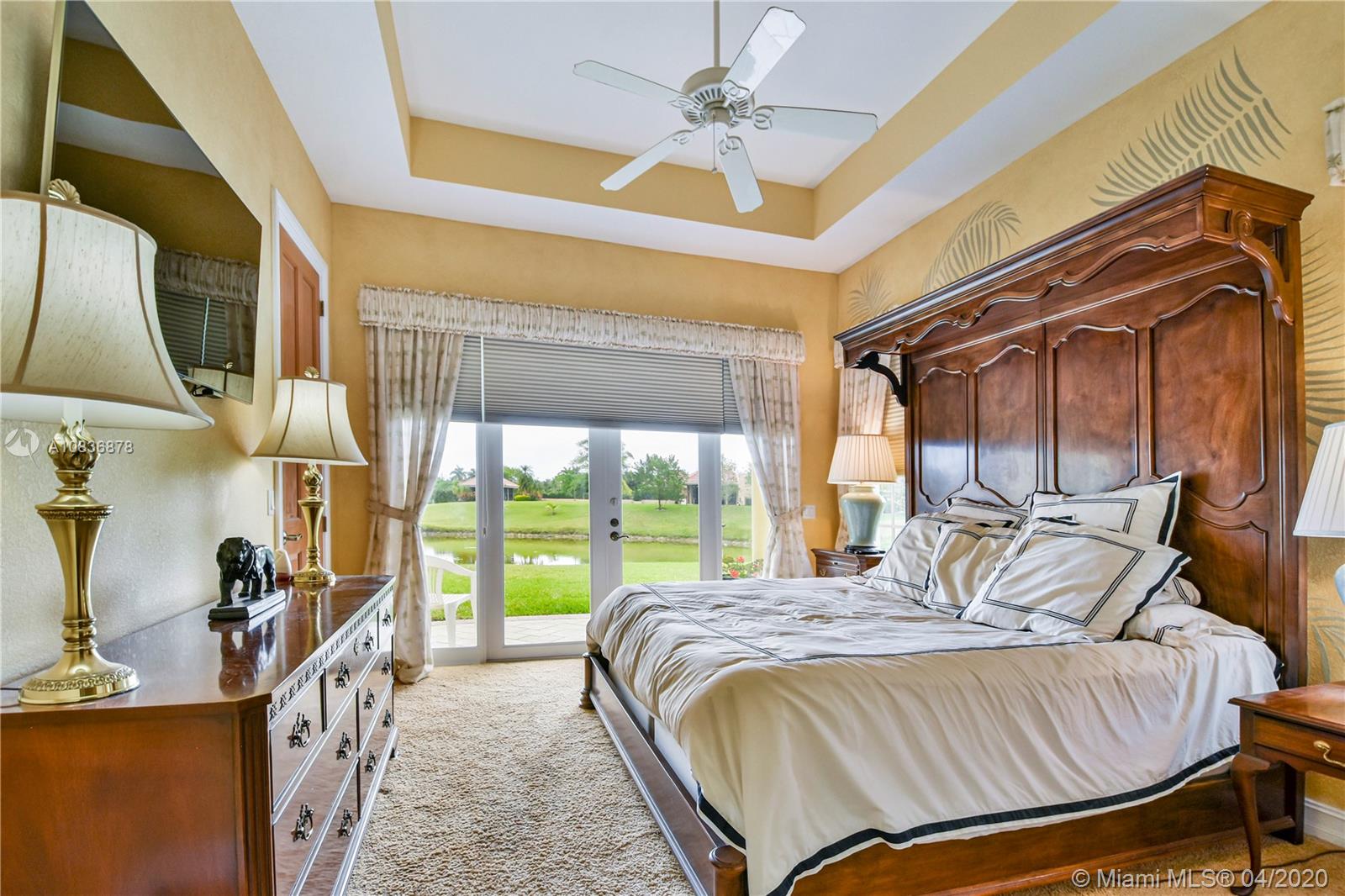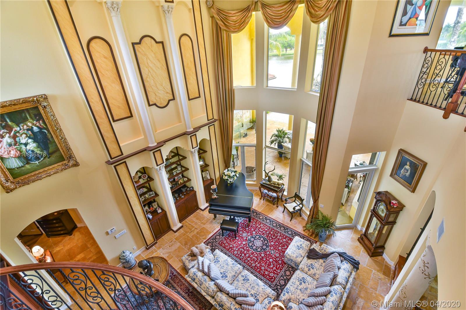 Stunning lakefront Estate on a lushly landscaped acre. Pristinely manicured lawn, the home boasts a private gated entrance with an expansive brick pavered driveway to accommodate many! Volume ceilings, bay butt glass windows, impact windows and doors throughout home. Jerusalem tile throughout all living areas. Impressive Master Suite with sitting area overlooking the water. Enormous master bath, spa style. The elevator and beautiful spiral shaped staircase will lead you to the 2nd floor game room and media room. Home loaded with extras and amenities. Massive and dramatic volume ceiling covered patio with a summer kitchen and infinity pool perfect for entertaining. Fully fenced yard, water purifying system, Gen X generator. Outdoor areas have a serene environment. See and fall in love!