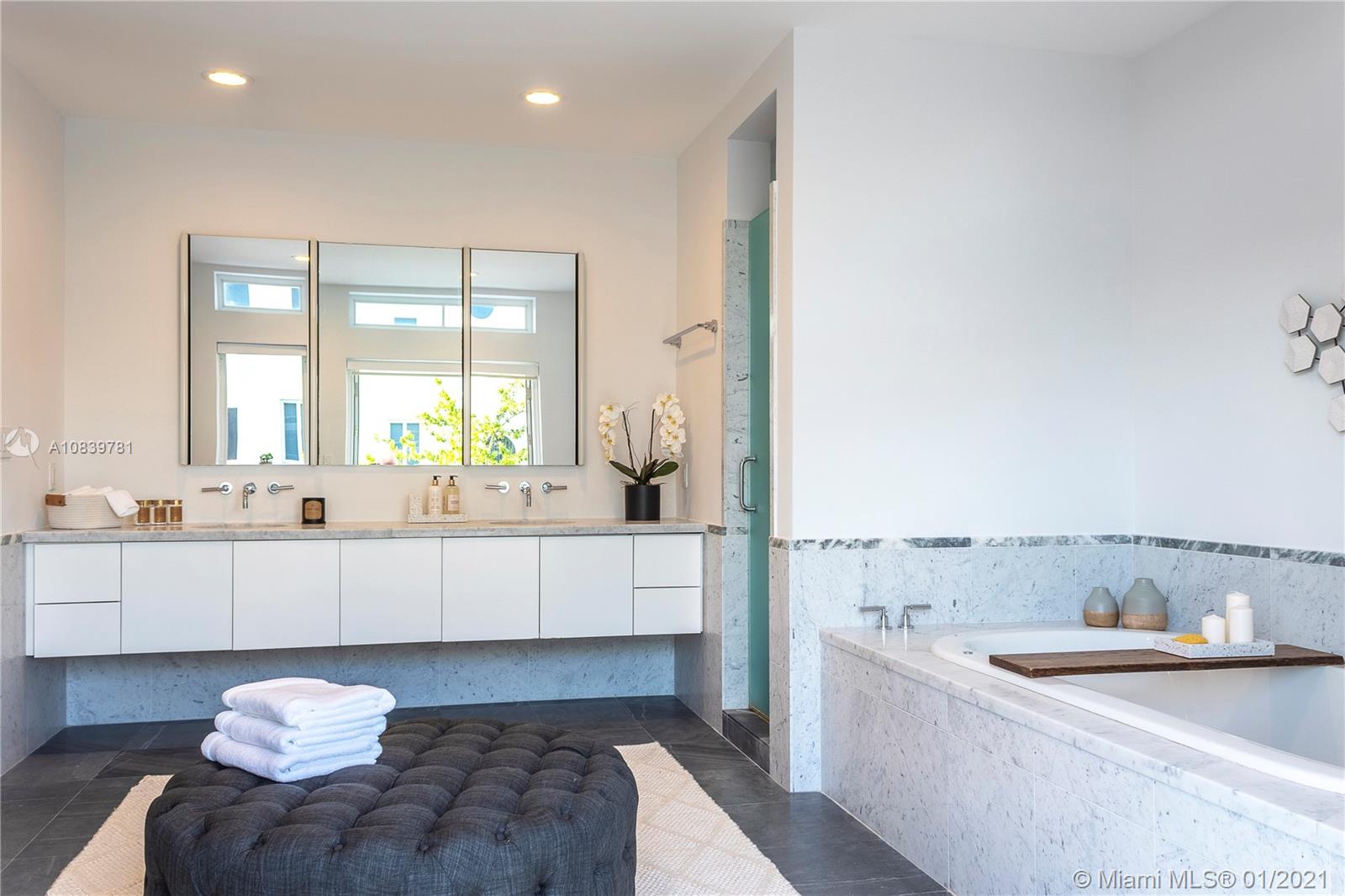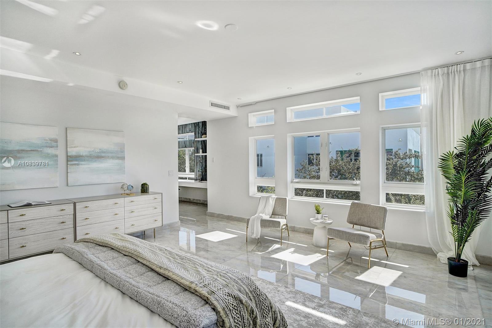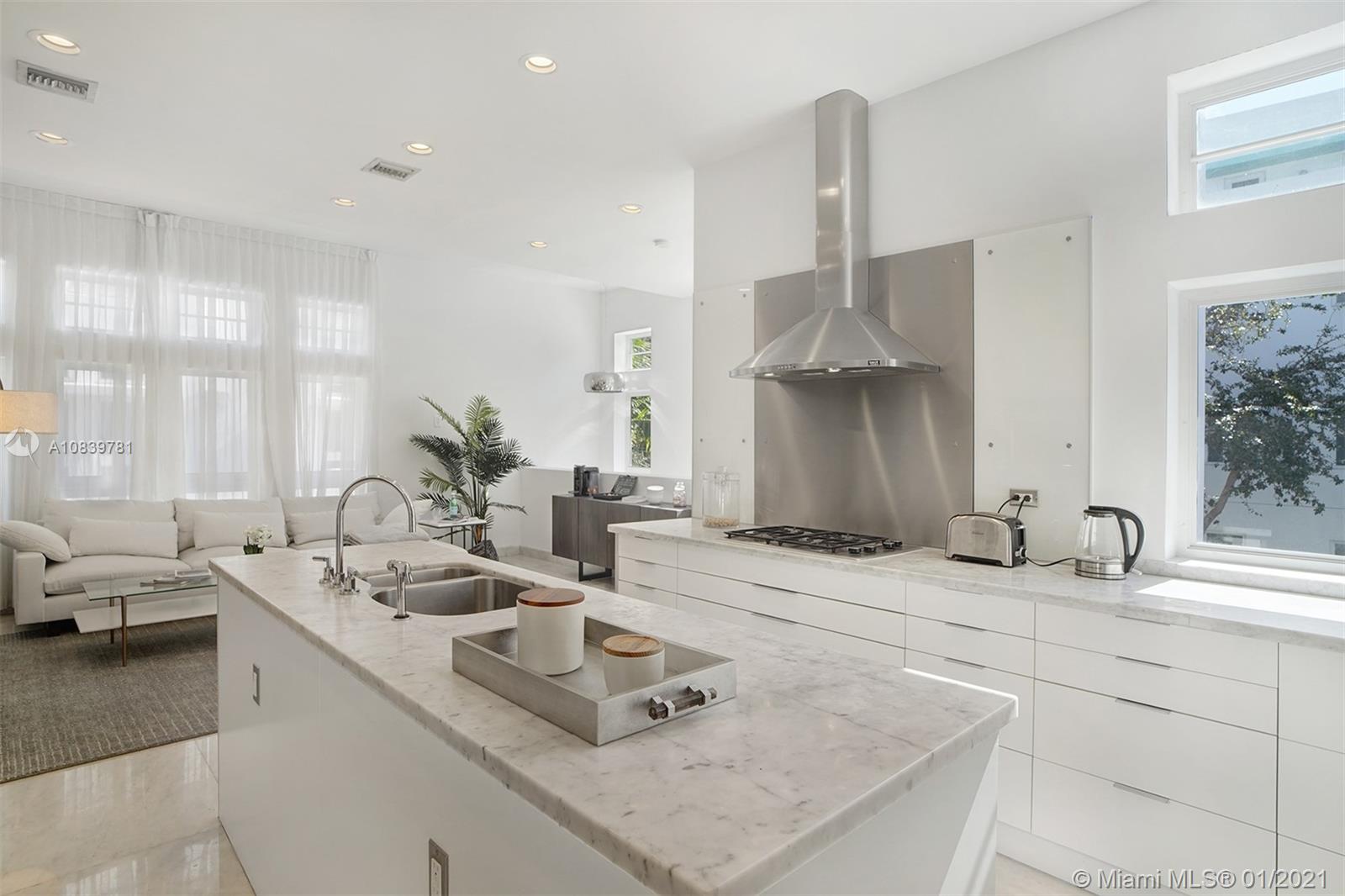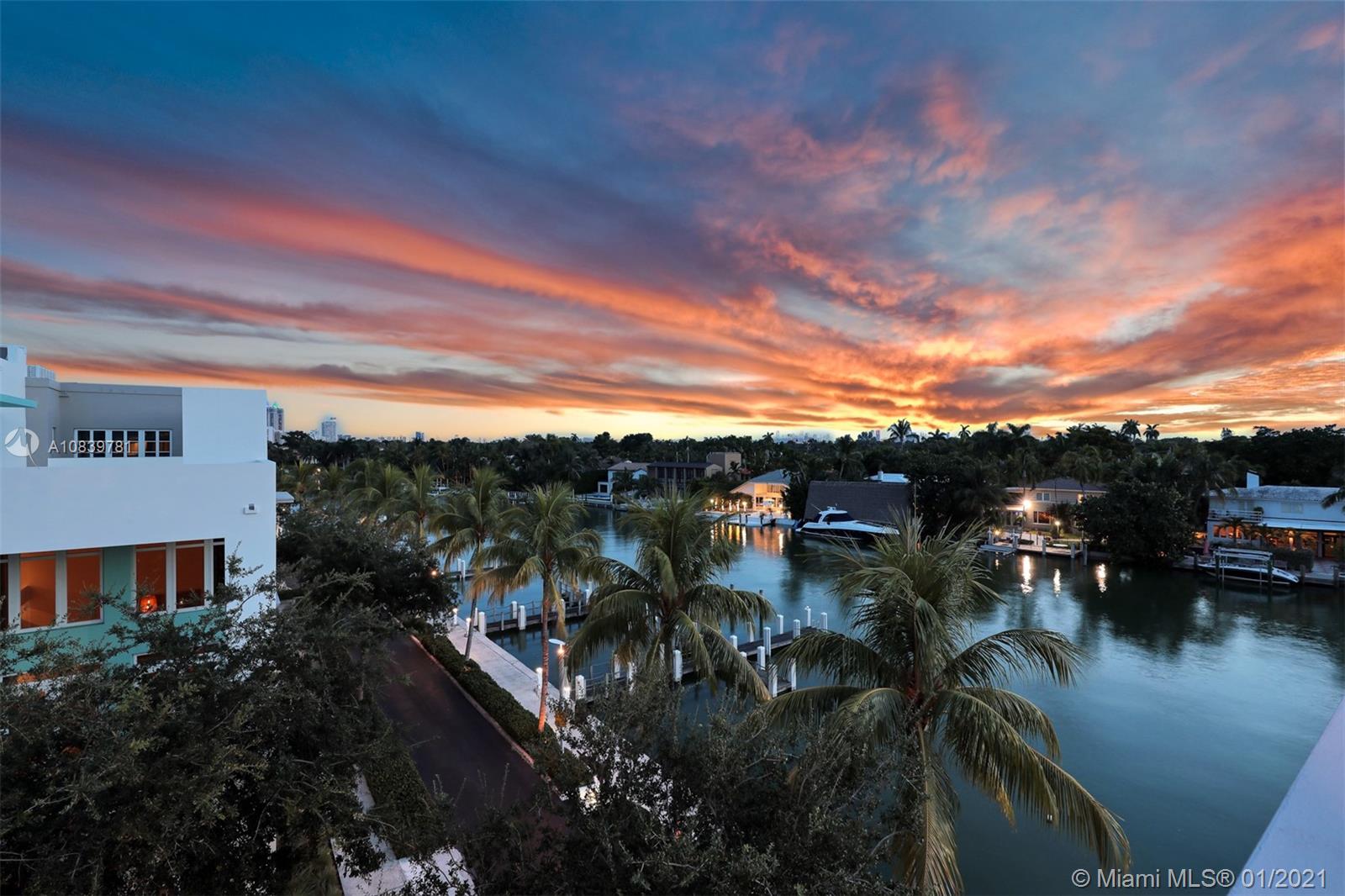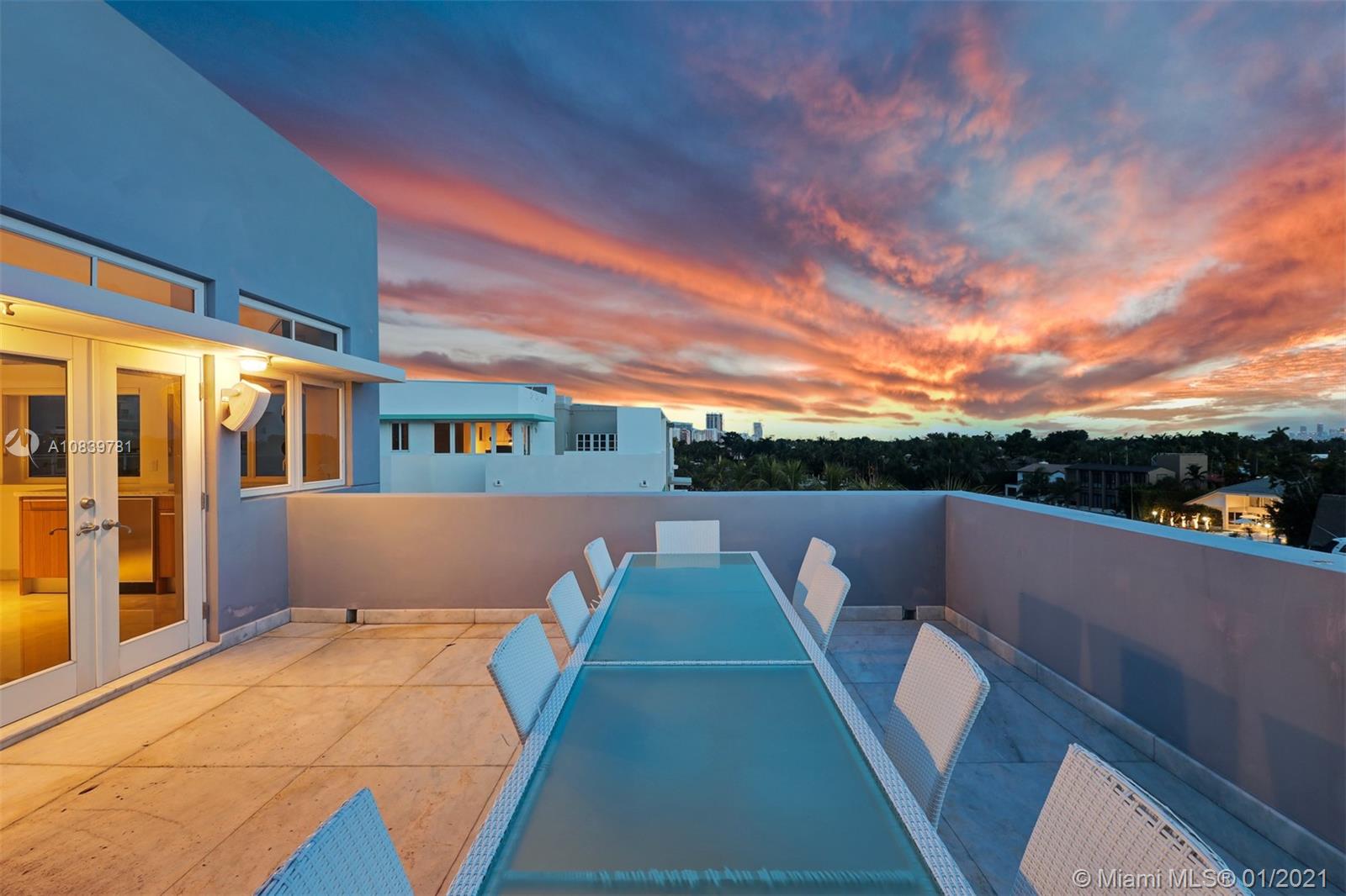 Welcome to this sun-drenched contemporary corner townhome that has unobstructed water views, 4bed + den, 4.5 baths, and a private elevator. A deeded boat dock is included. Direct western exposure allows light to stream in during the day. At night, breathtaking sunsets and the downtown city skyline are yours to enjoy. Outdoor terraces total 1,281 sqft. Modern finishes throughout including 36x36 fantasy white marble flooring. Bulthaup kitchen with Subzero, Bosch, and Thermador appliances. Stunning full-floor master suite with two built-in closets. Two car garage with power for an electric car. 22 minutes to the airport. A couple of minutes to the beach. A+ rated schools. Experience the Miami lifestyle!
