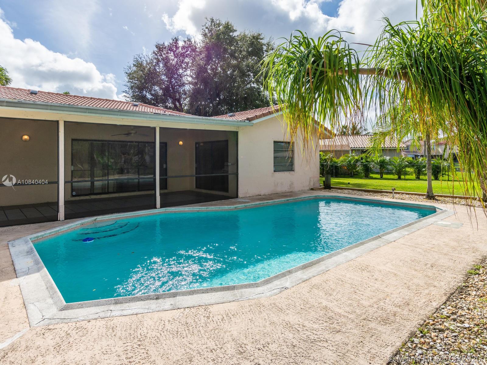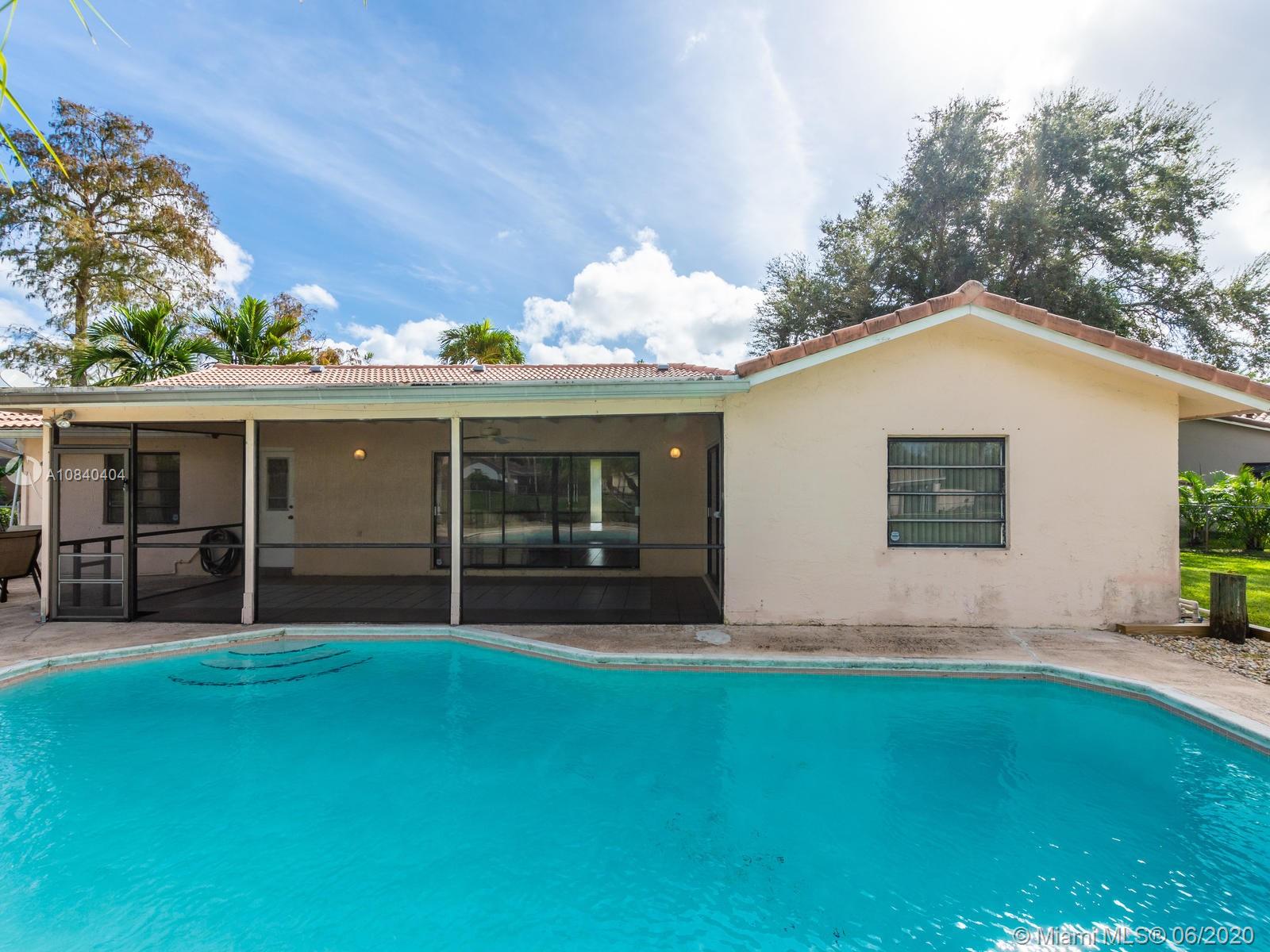 BEAUTIFUL LOCATION - WATERFRONT HOME IN CUL DE SAC, 3/2 WITH POOL IN RAMBLEWOOD, PERFECT TO ENTERTAIN!"NO HOA FEE". Enjoy Florida in your own oasis in the backyard, ! Amazing Spacious 3 bedrooms and 2bath home in the heart of family-friendly Coral Springs.Large separate laundry, Enjoy the wide waterfront views from either of enclosed private patio or pool area. screened in porch. Great well-maintained lot, away from busy roads. Huge pool patio area! Large private back yard!,Home is located in a great family neighborhood in great schools district! Best Location !