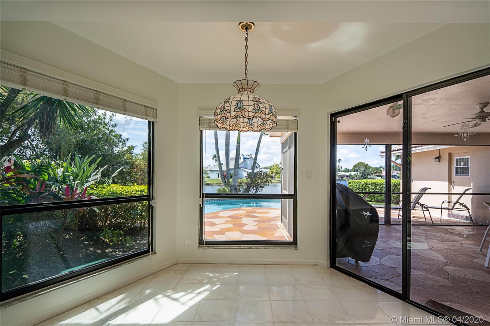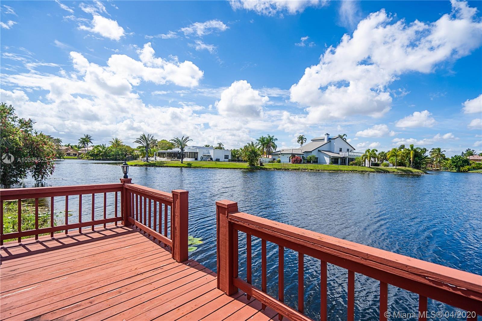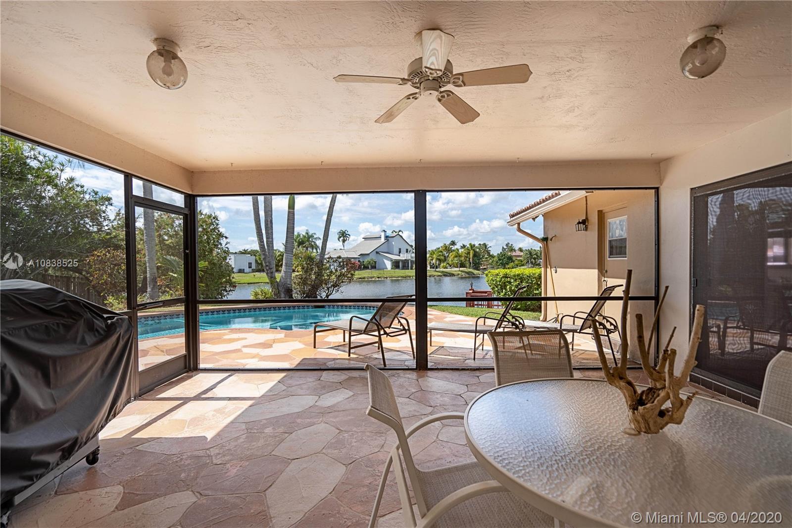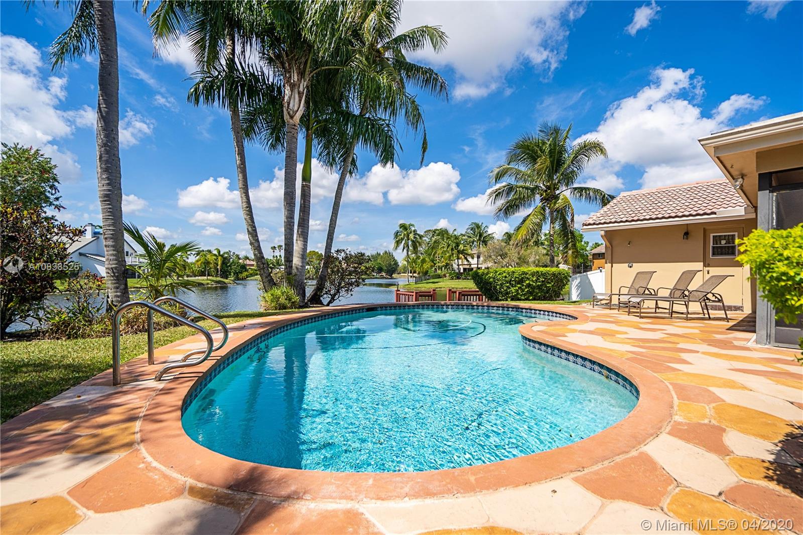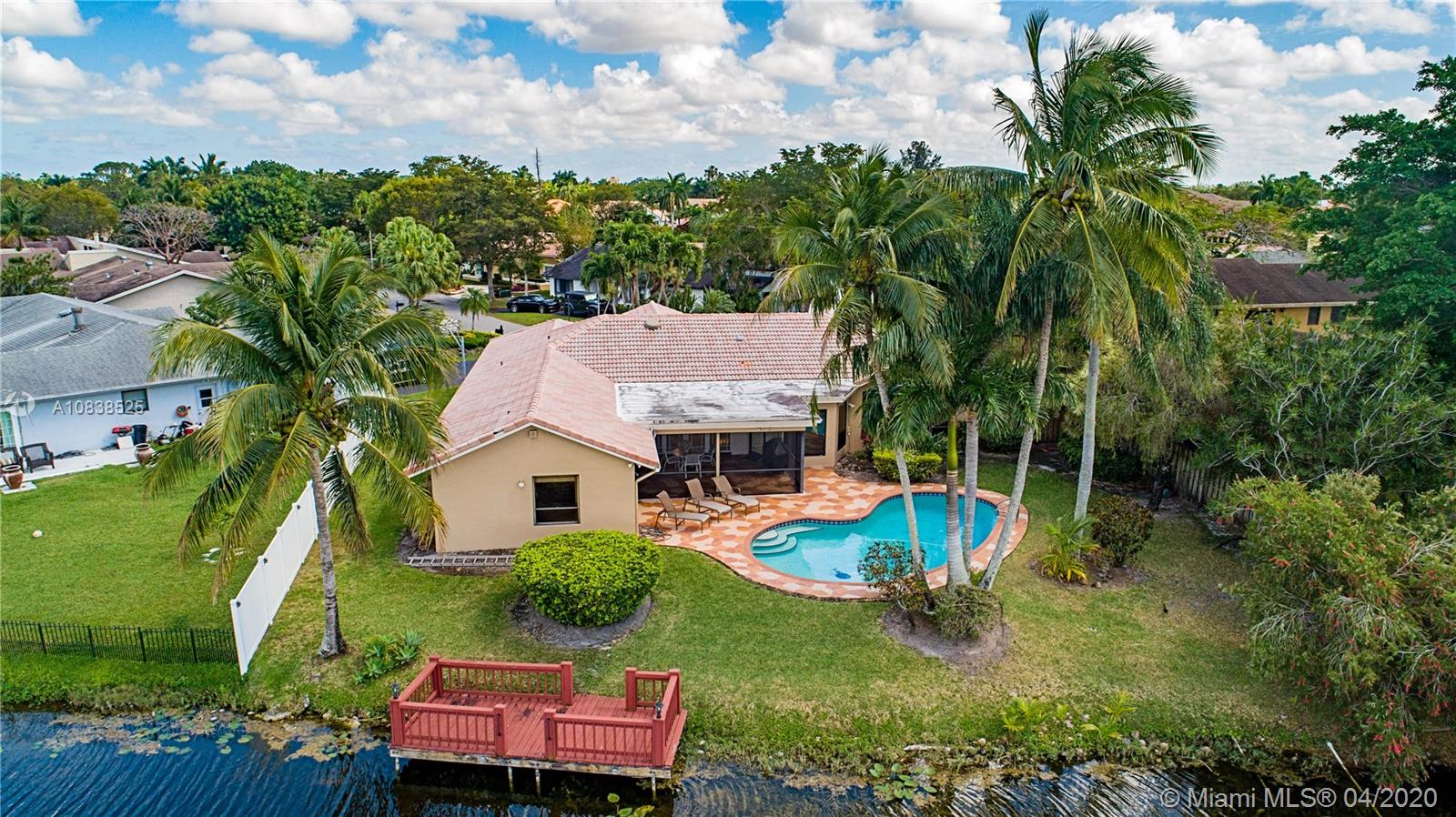 Beautiful 4 bedroom 2.5 bath lake front home in desirable Jacaranda Country Club. Located on a private street this home features large master bedroom with custom walk in closet. Master bathroom features double vanity with lake views. Home was recently painted and has 10 impact windows throughout. Expansive screened in porch leading to large pool that was resurfaced 8 years ago and private boat dock. Family room has stone fireplace and wood ceiling. Huge kitchen with a lot of storage and brand new refrigerator. Conveniently located by 595 and close to many shopping centers. Home has large circular paved driveway and 2 car garage.